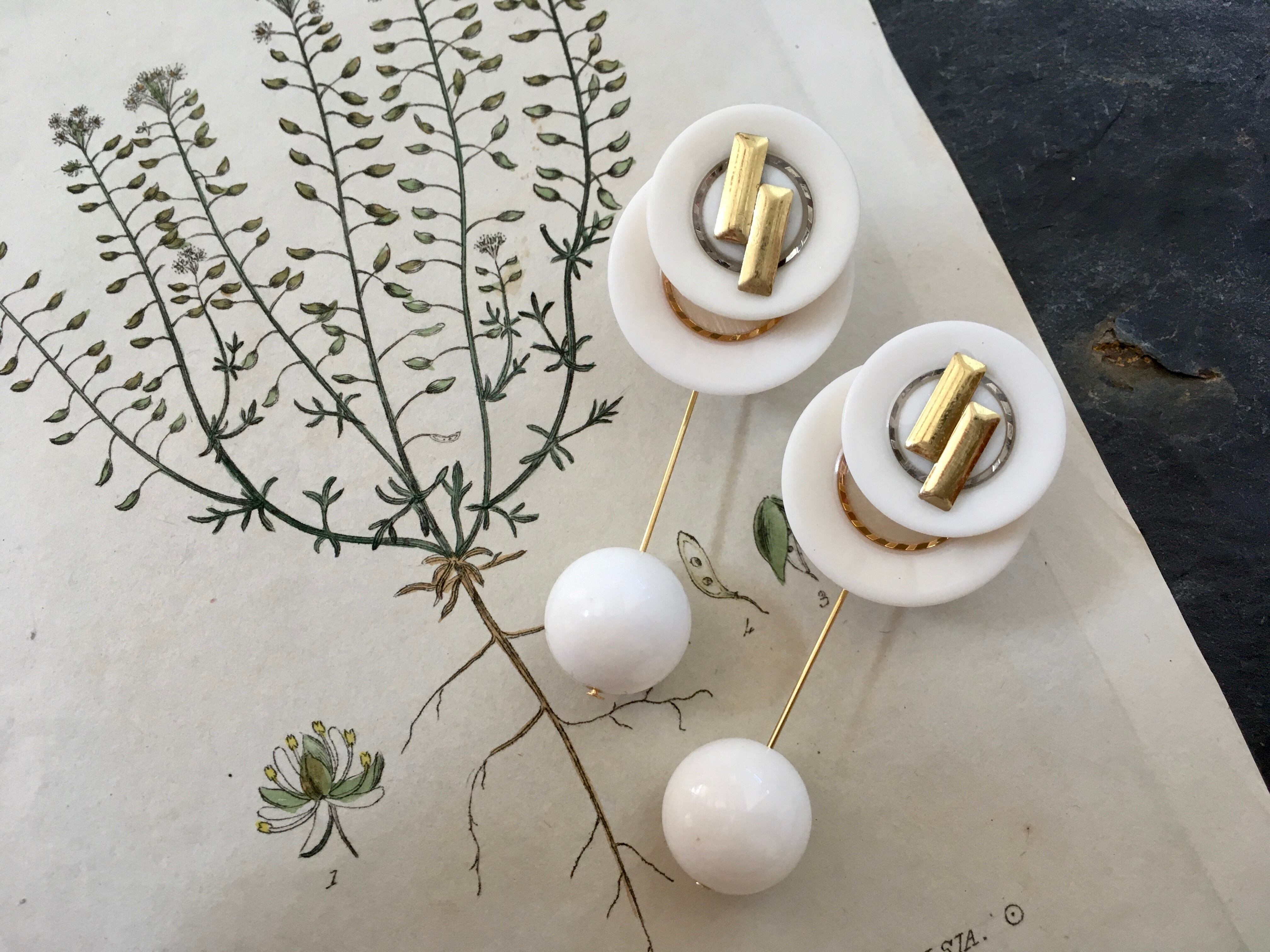 ヴィンテージボタンとヴィンテージガラスビーズを使ってピアスに仕上げました。