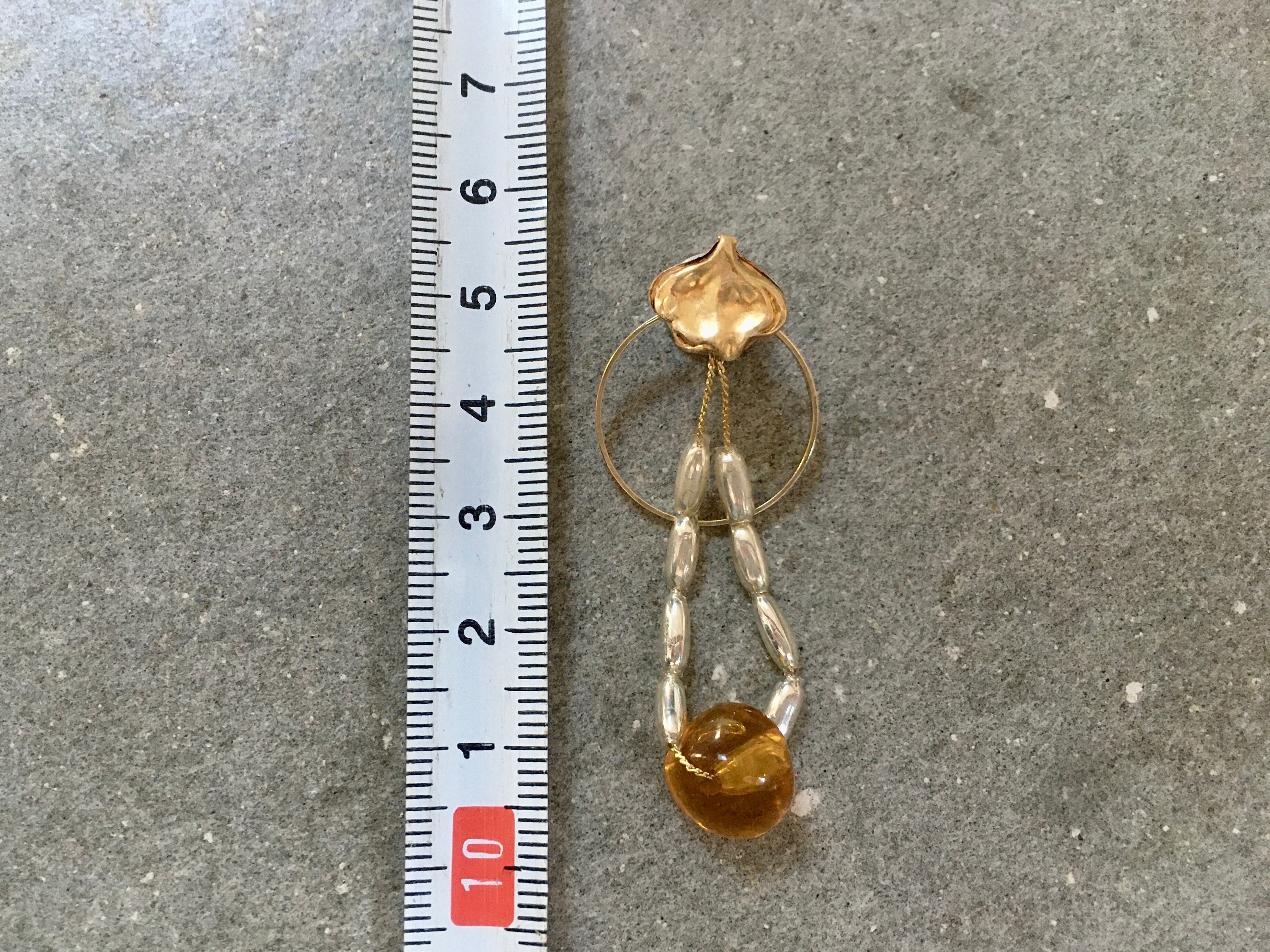 ガラスのライスパールビーズとアンバーカラーのビーズが上品な雰囲気です。