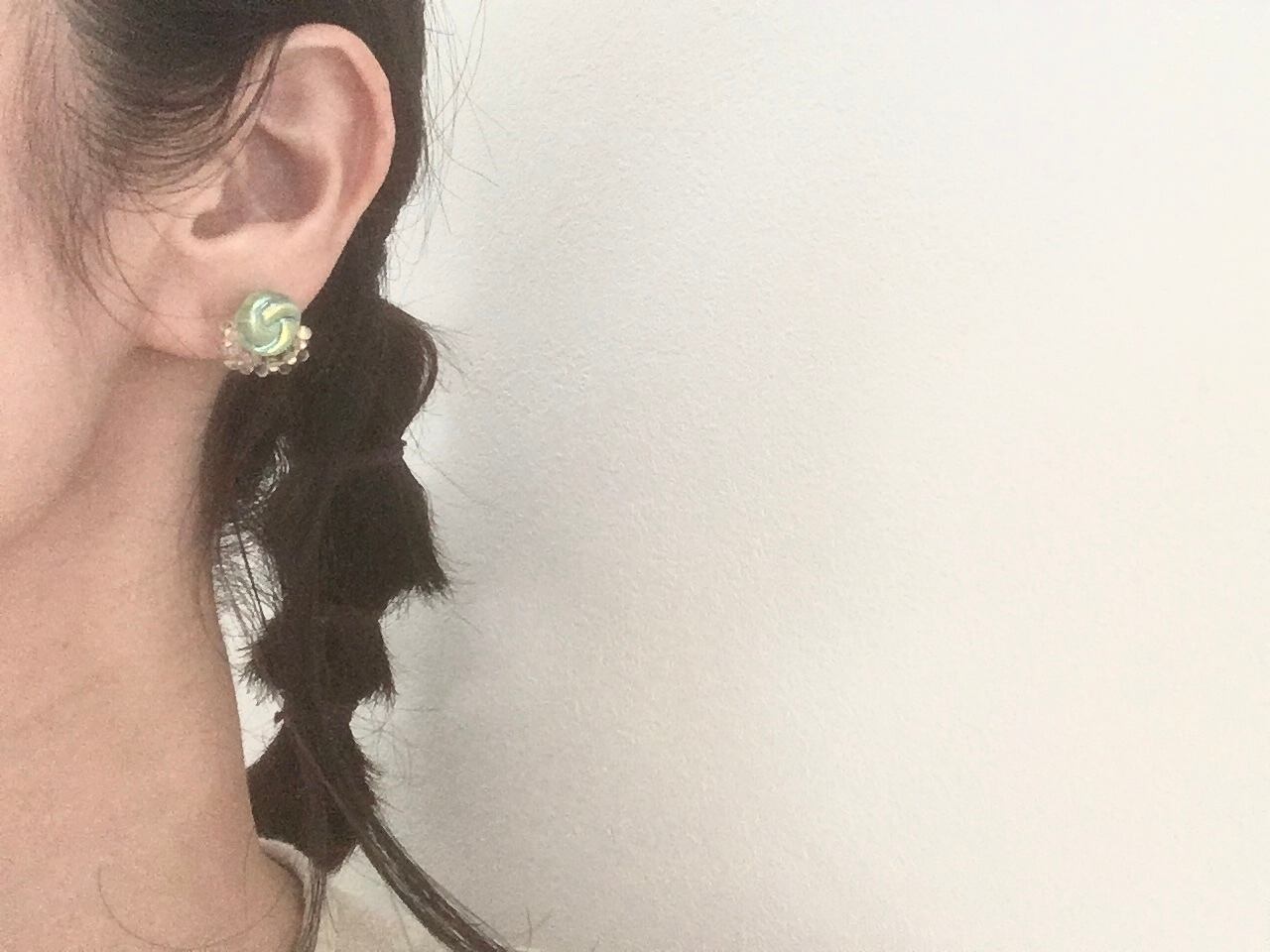ヴィンテージビーズやガラスチューブビーズを使って、アシンメトリーピアスを作りました。