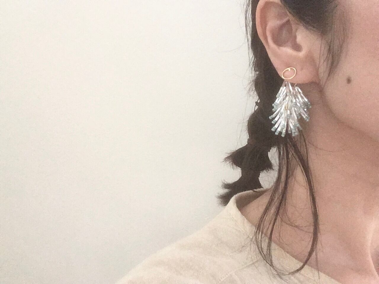 透明感と上品な華やかさがあり、左右でボリュームの違う遊び心ある一品です。