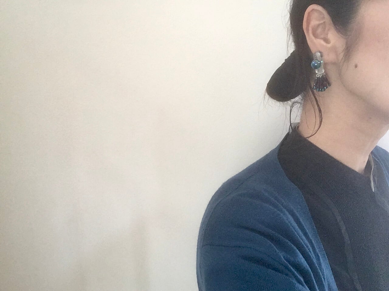 玉虫色に光るビーズをクリアカラーで軽く仕上げたので、これからの季節にピッタリです。