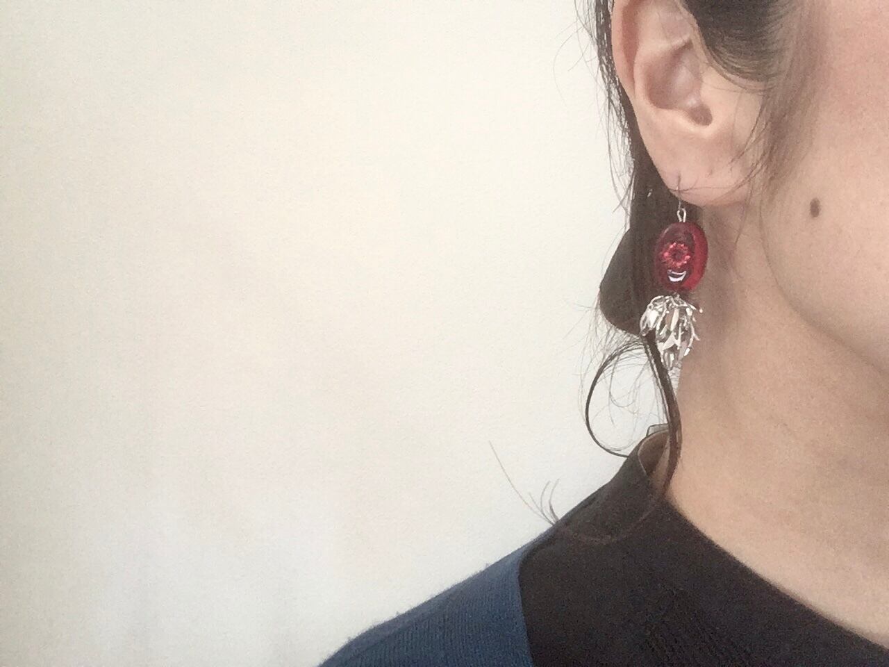 ヴィンテージビーズ、ヴィンテージパーツ、メタルパーツを組み合わせてピアスを作りました。