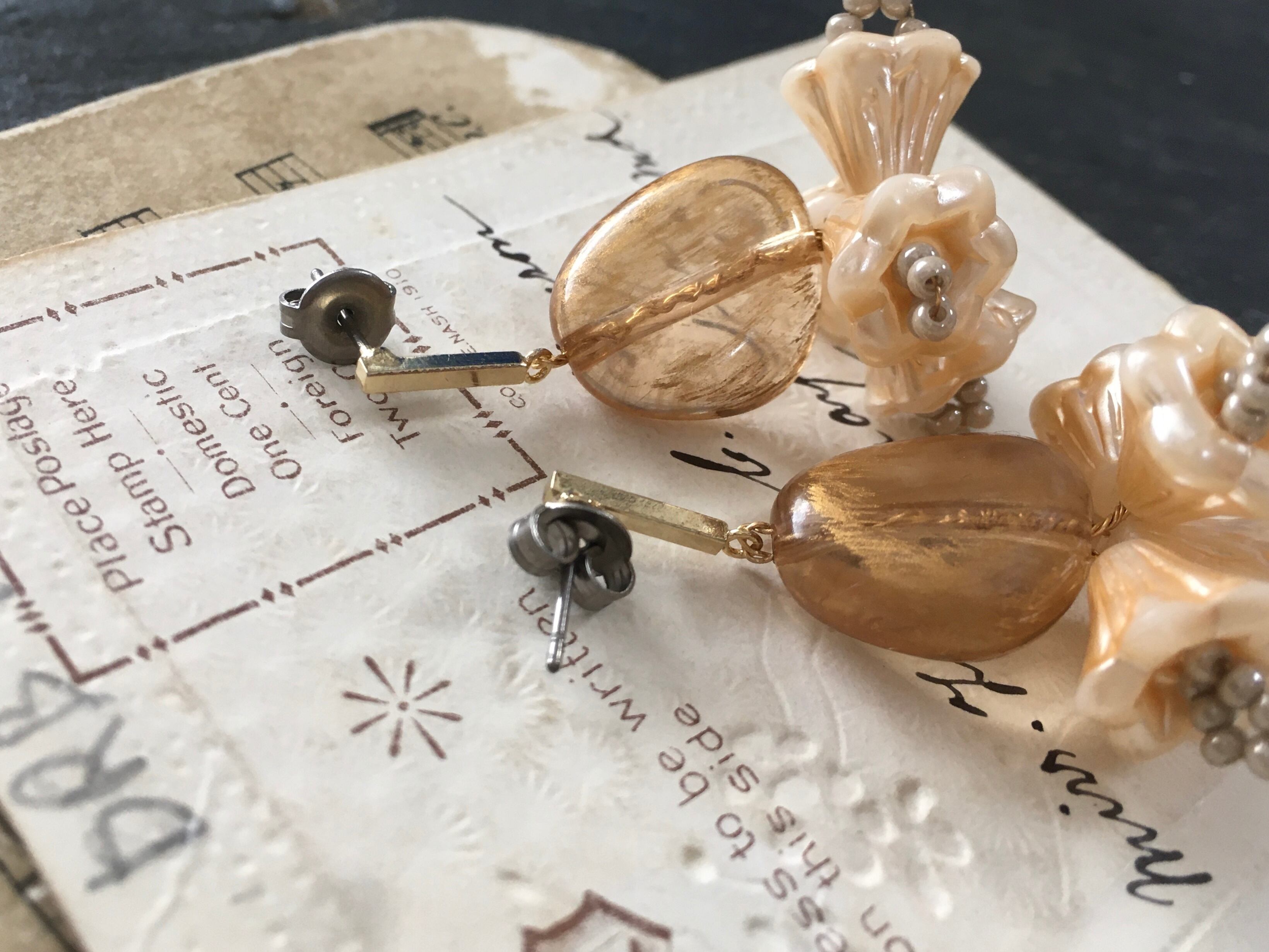 ヴィンテージビーズを組み合わせて、ピアスに仕上げました。