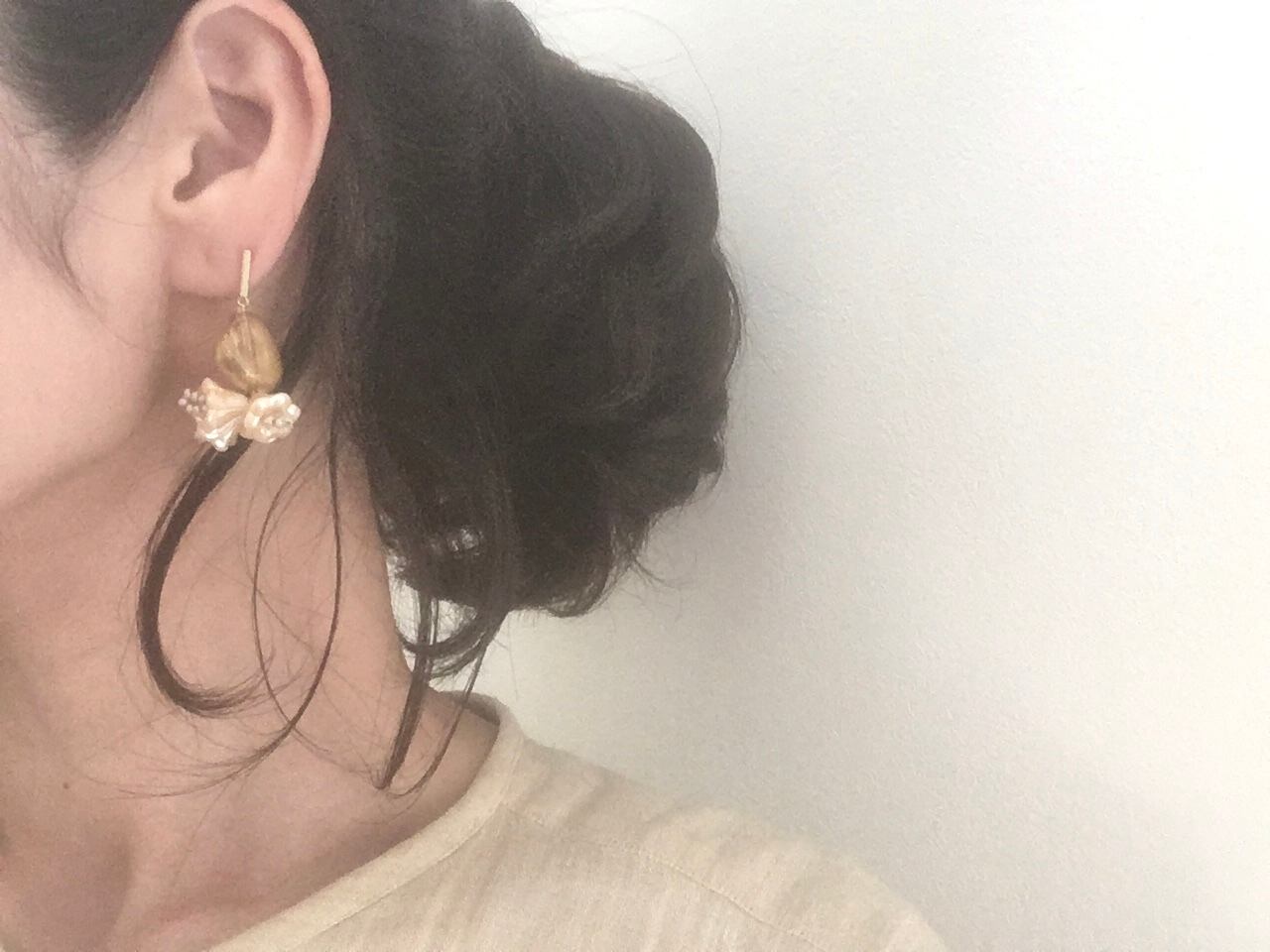 柔らかなアイボリーカラーのお花ビーズが優しい印象で、上品な中にふんわりとした甘さが香る一品です。