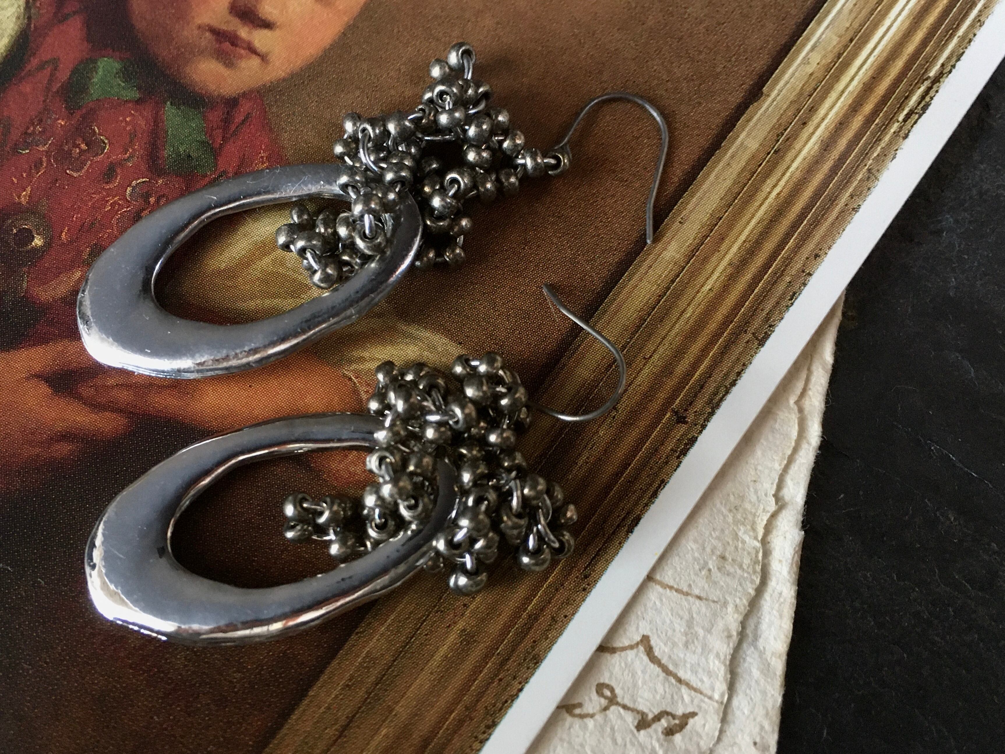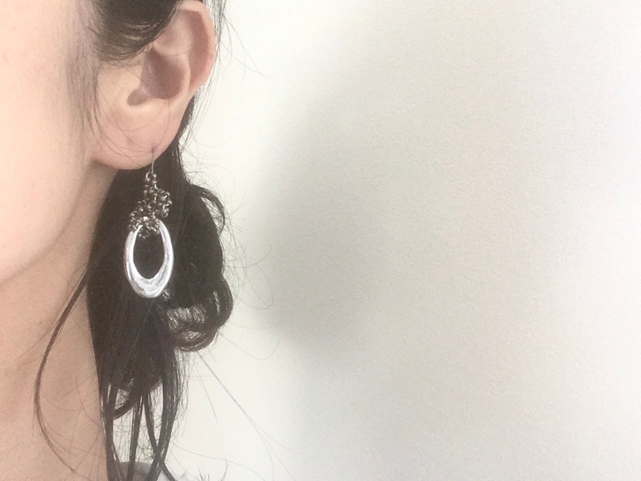 メタルパーツとシードビーズを使ってピアスに仕上げました。
