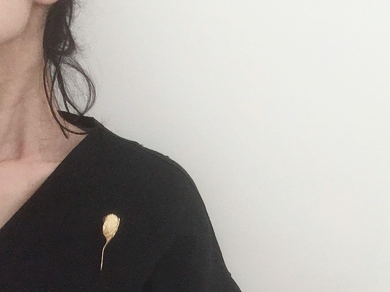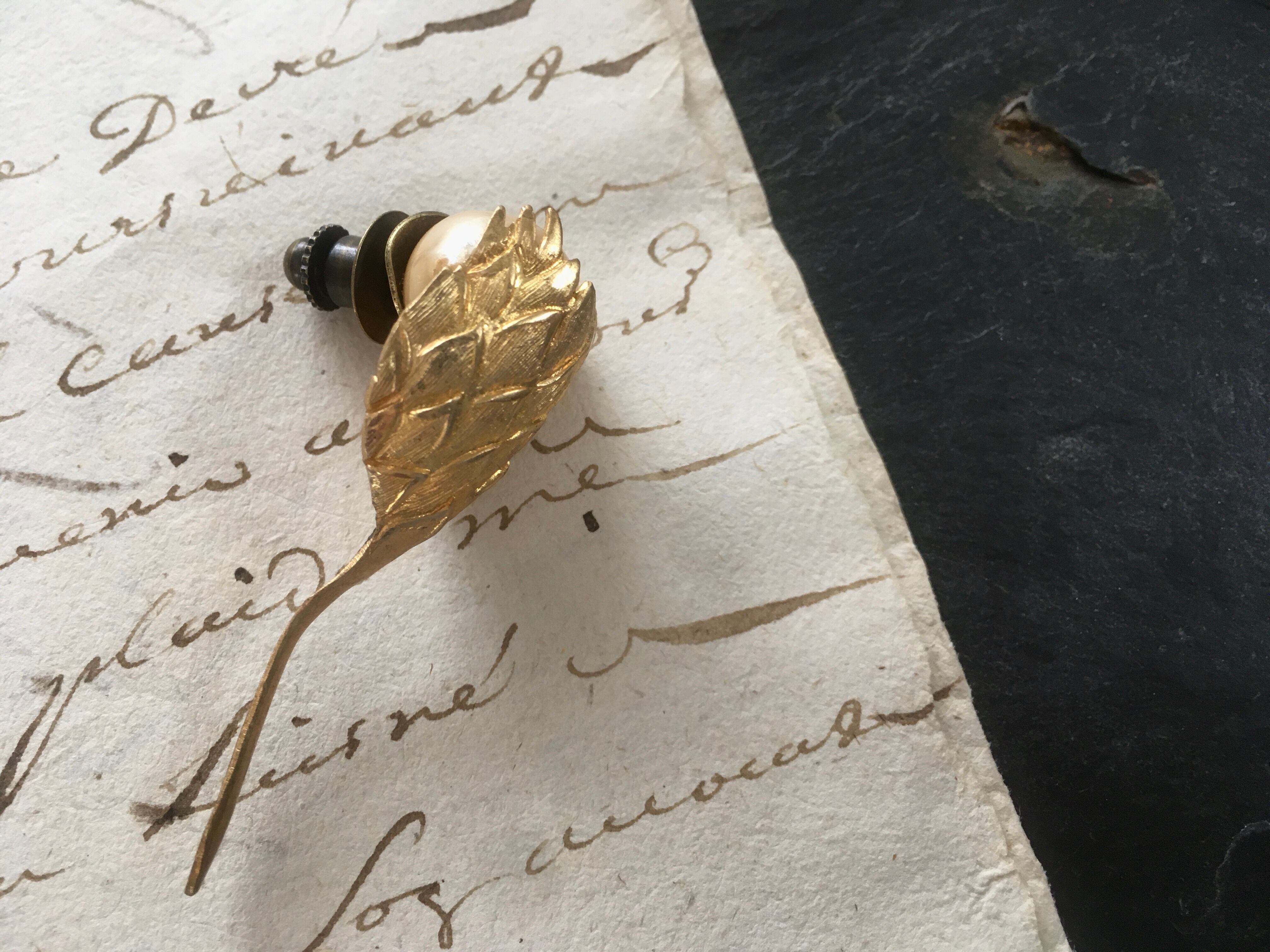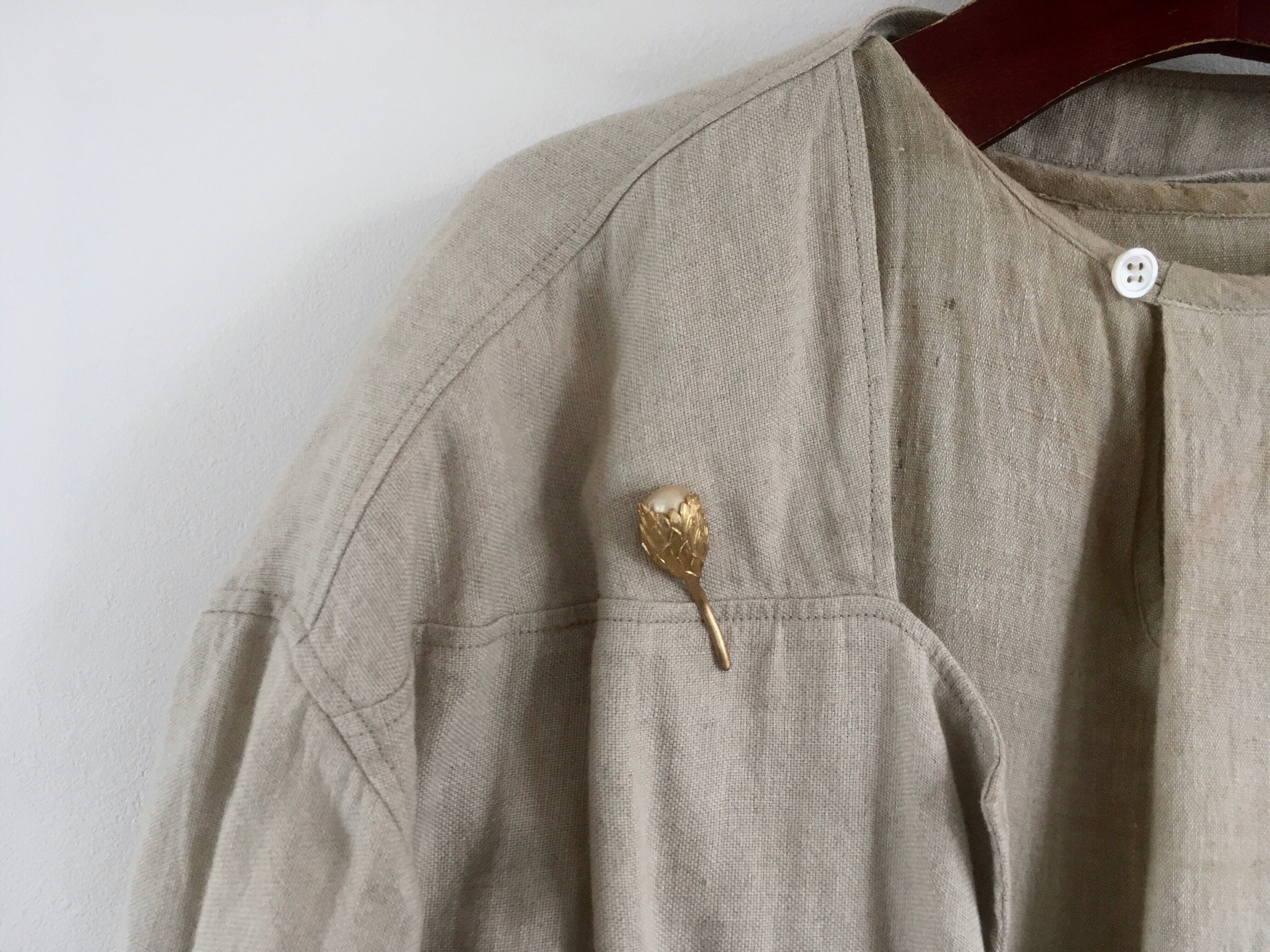 真鍮とガラスパールを組み合わせてピンブローチを作りました。