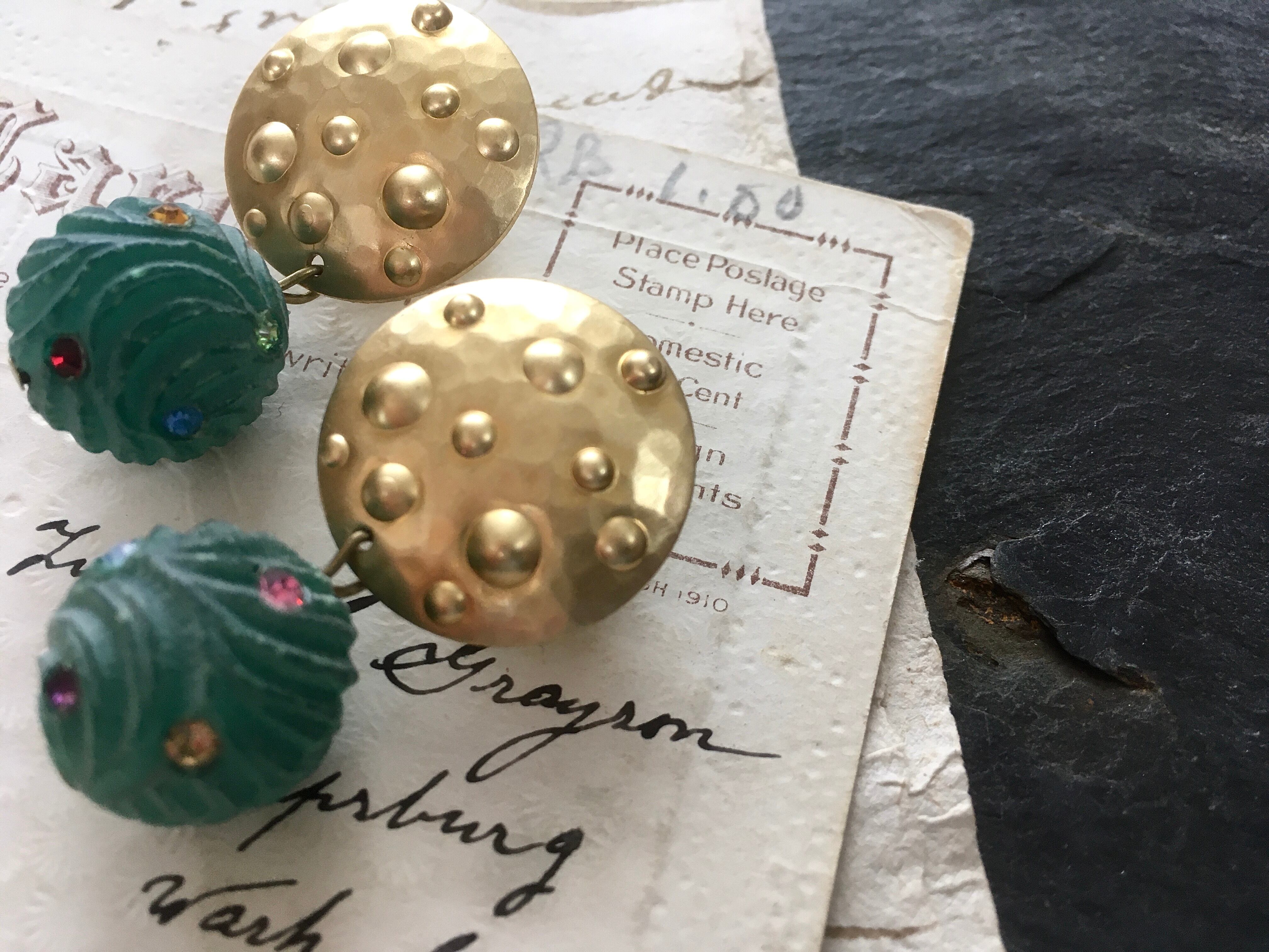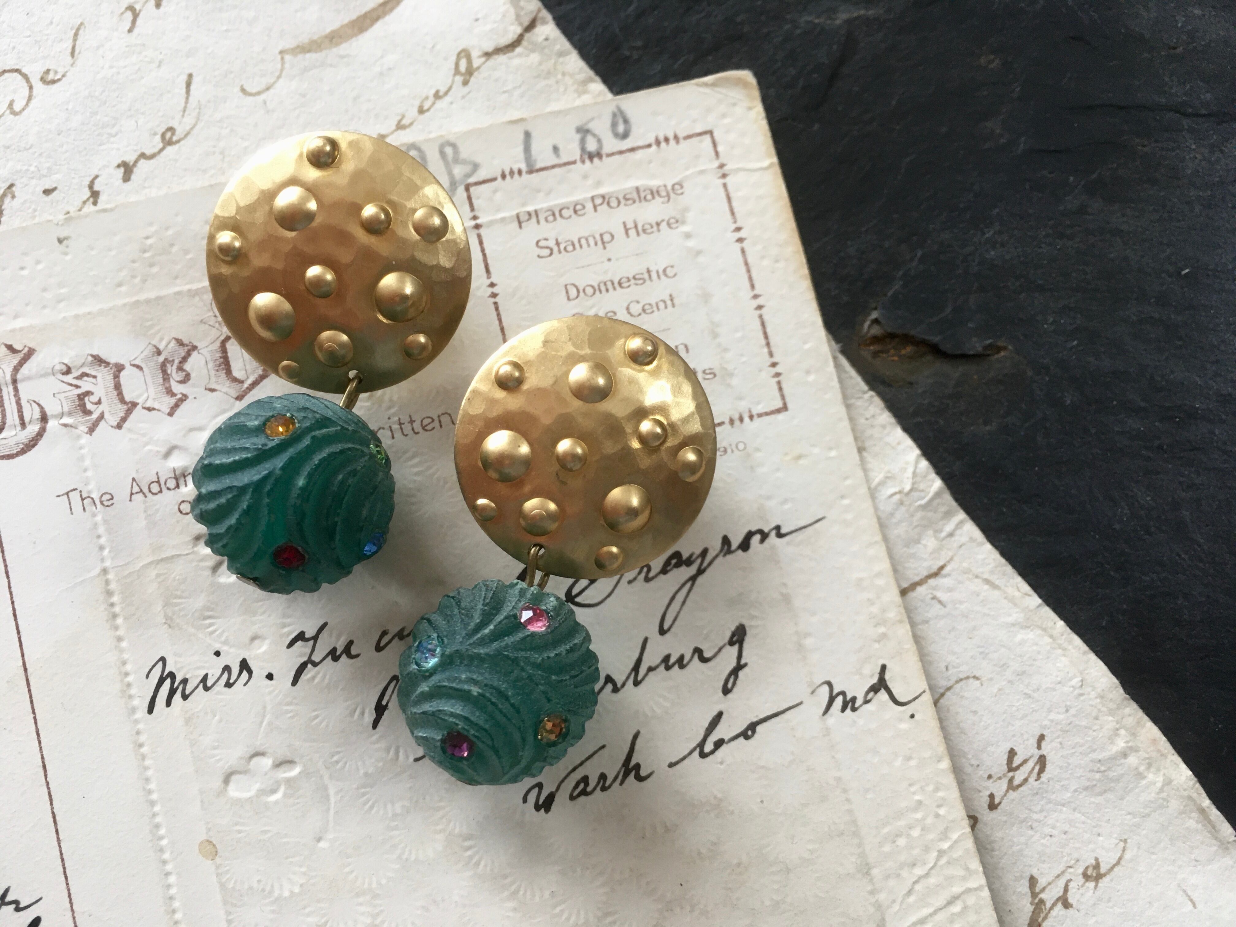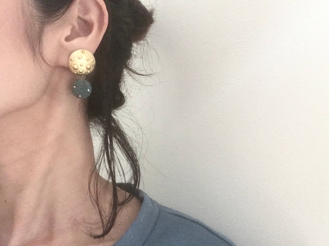 ヴィンテージビーズと真鍮パーツを組み合わせて、ピアスを作りました。