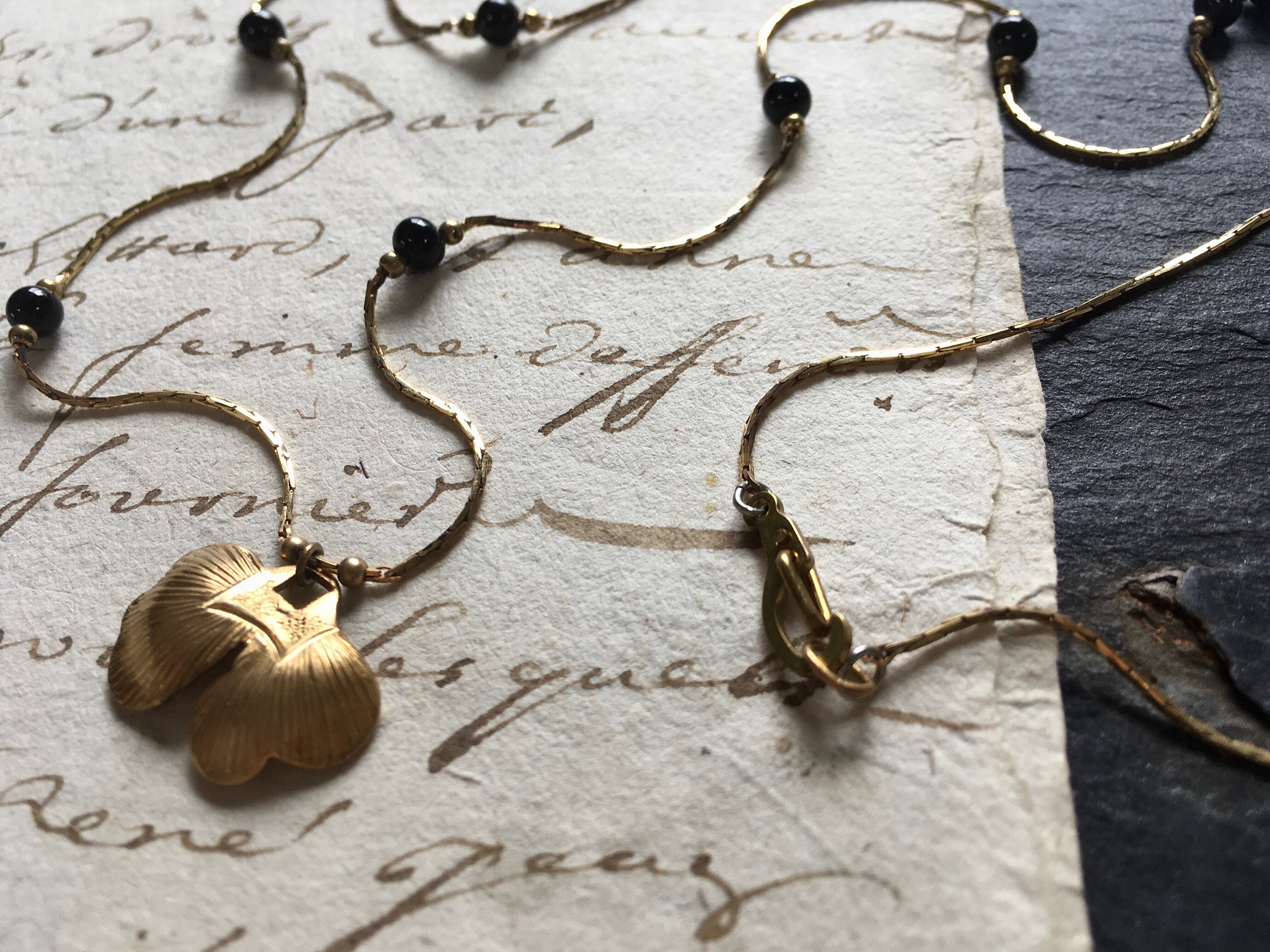 ヴィンテージパーツや真鍮を繋げて、ネックレスを作りました。