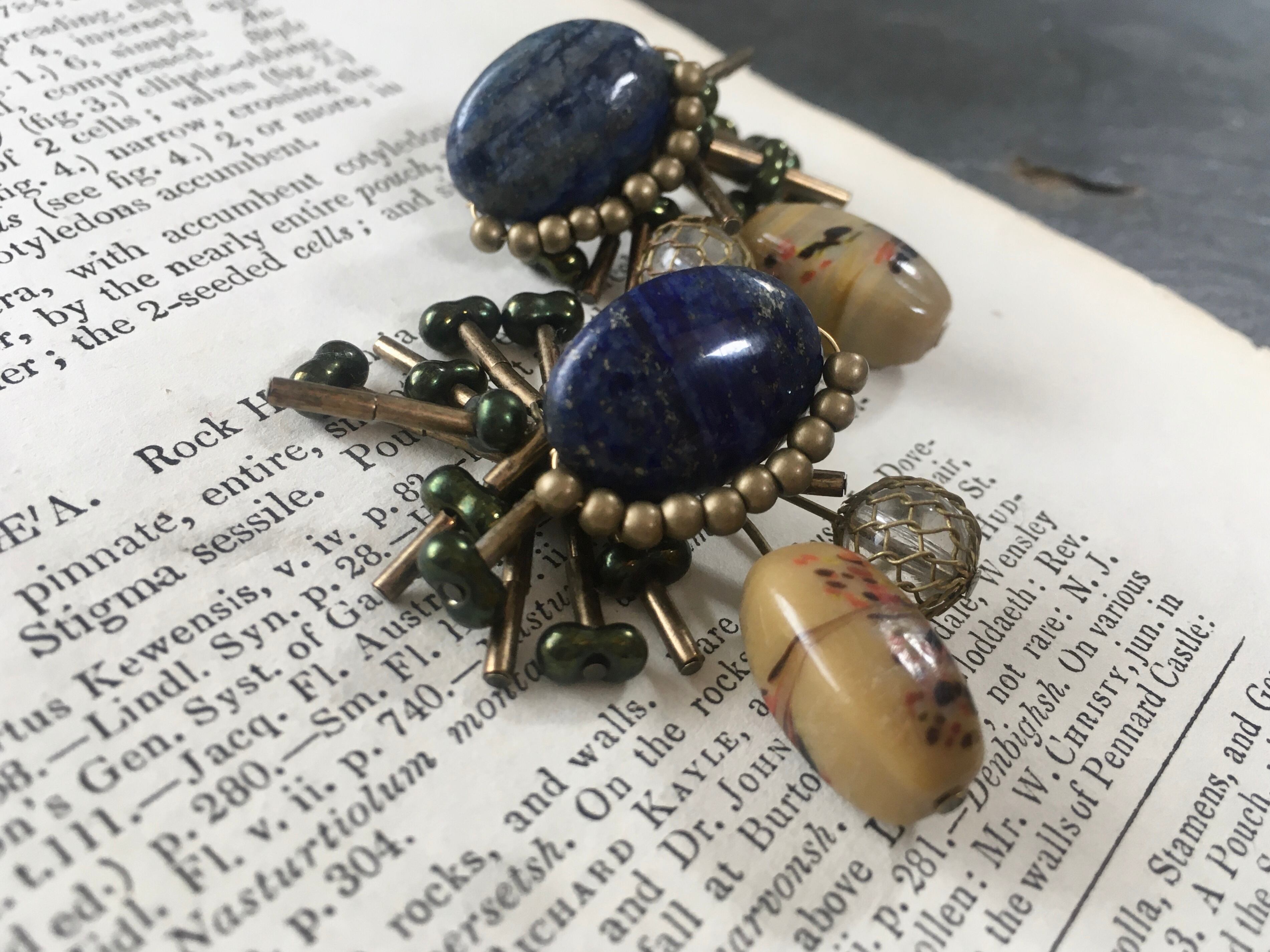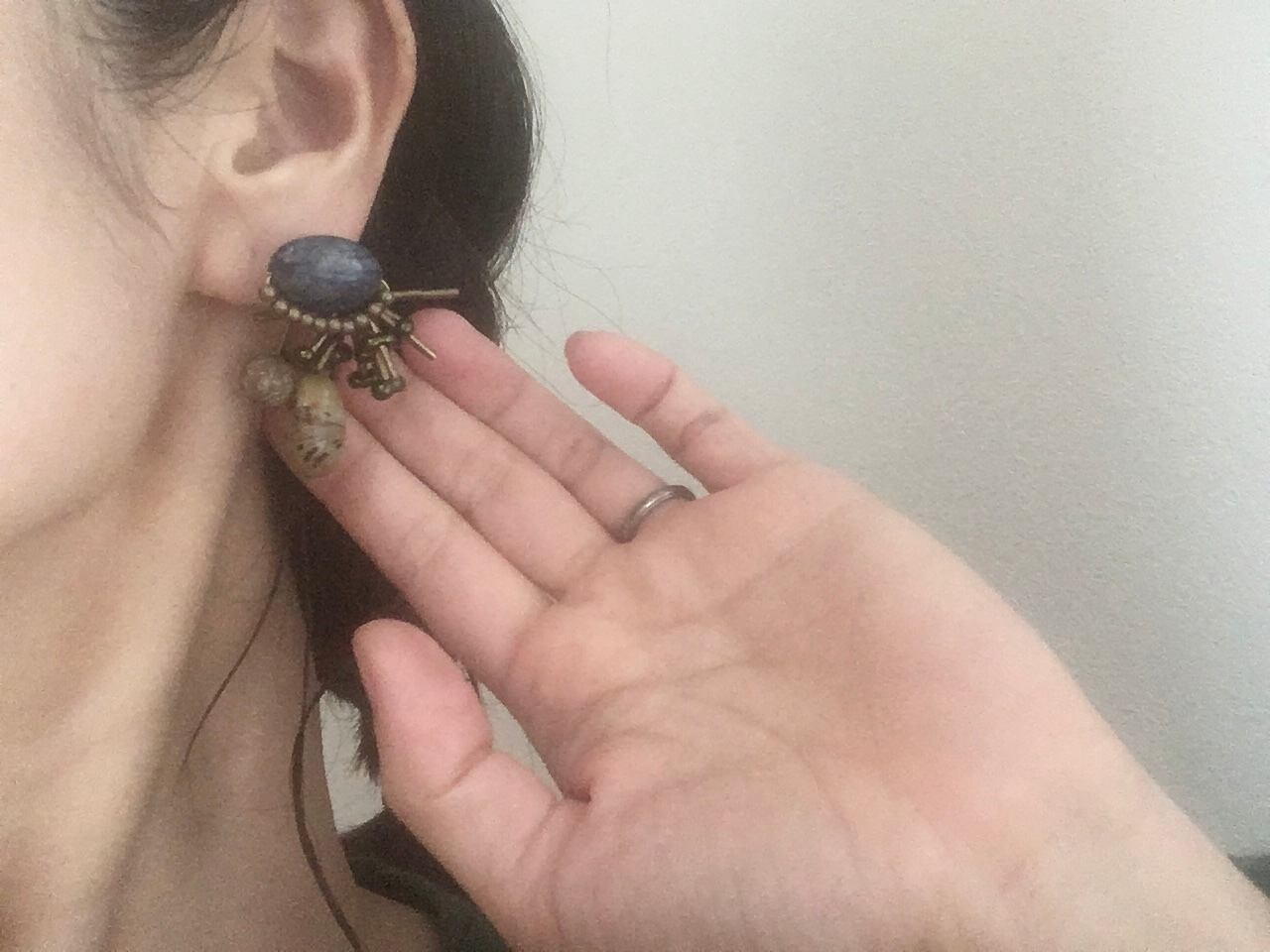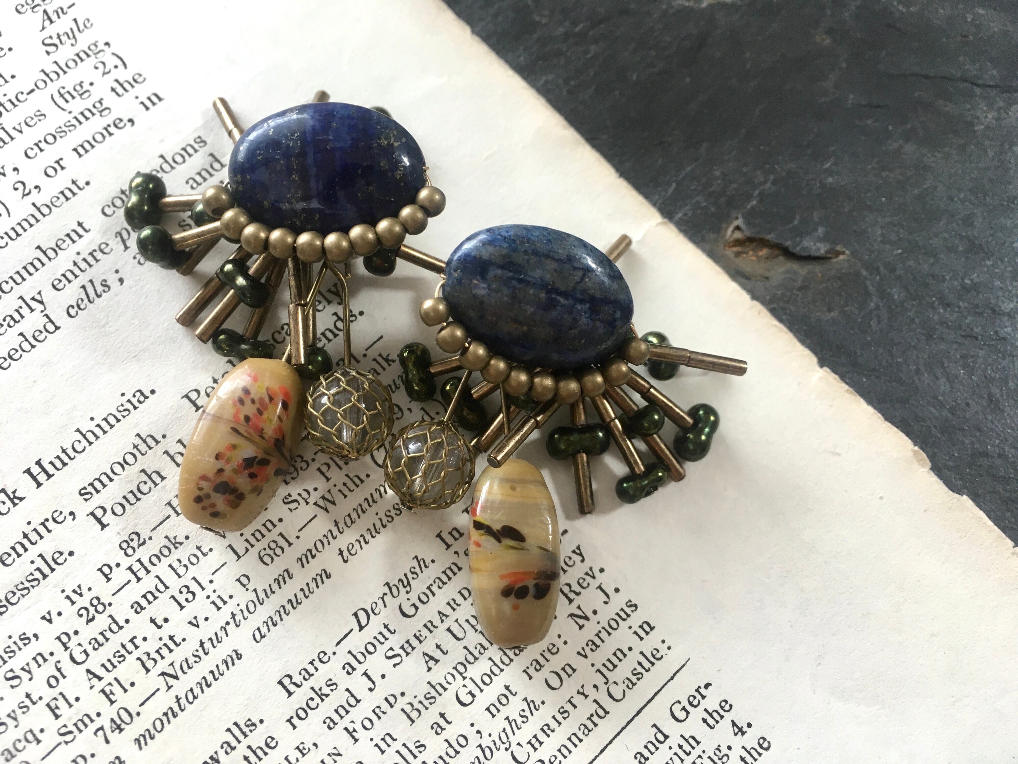 ラピスラズリにヴィンテージビーズ等を組み合わせて、ピアスを作りました。