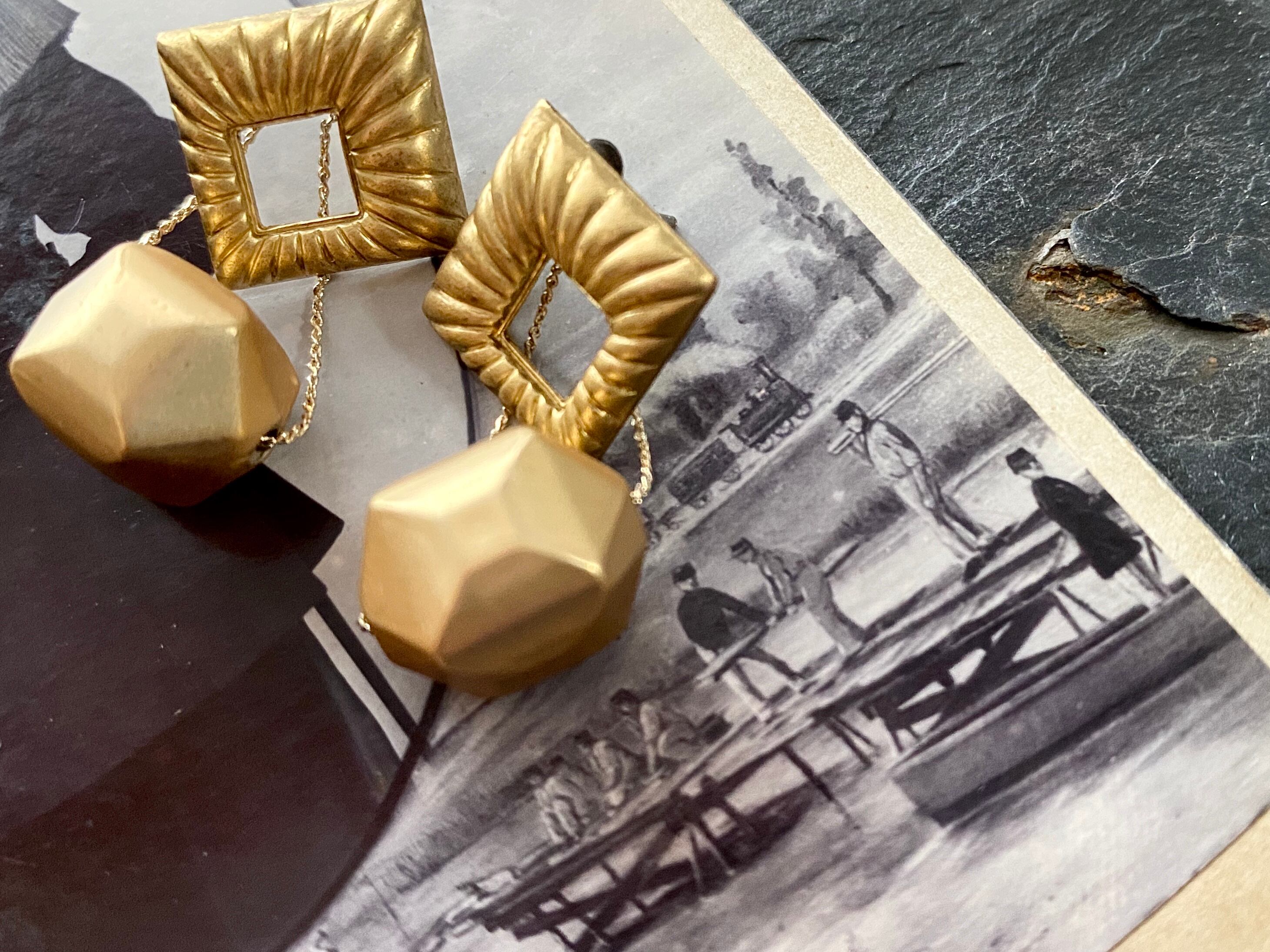 真鍮とヴィンテージビーズを組み合わせて、ピアスに仕上げました。