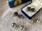 シードビーズやヴィンテージガラスビーズ、メタルパーツを組み合わせて、ピアスに仕上げました。