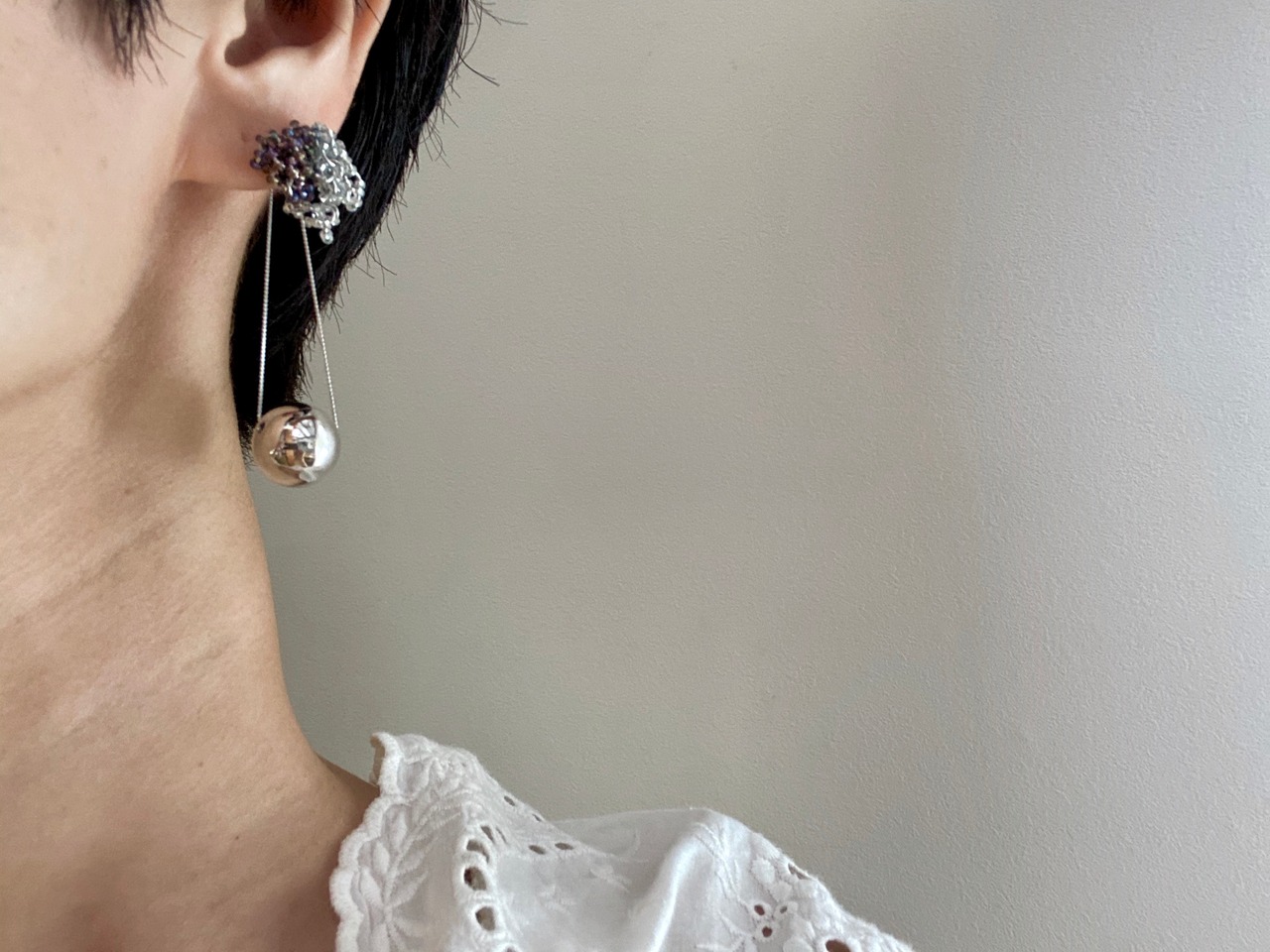 濃淡のビーズを使って、また、ほんの少しだけビーズを垂らすようにして、ニュアンスと動きを加えました。