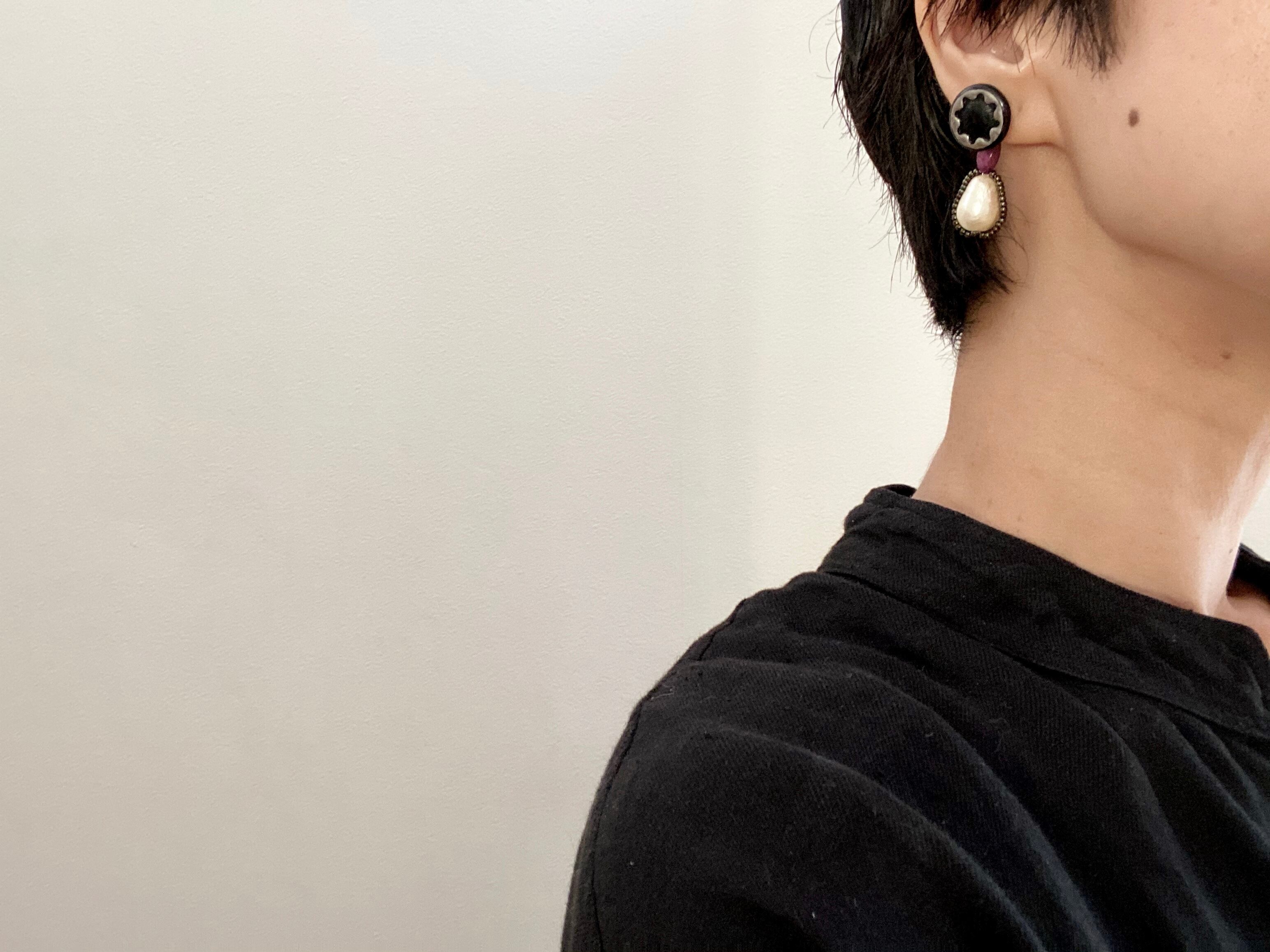 ヴィンテージボタンをカボションに、ヴィンテージビーズやコットンパールを組み合わせて、ピアスに仕上げました。