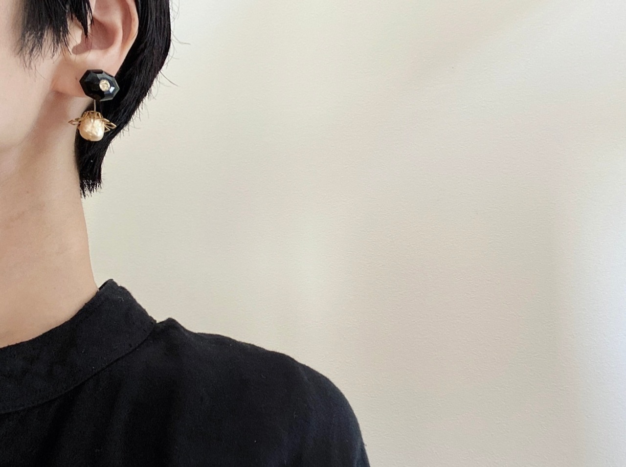 シックなボタンとクラシカルな雰囲気のパールの組み合わせが、上品で大人っぽい印象です。