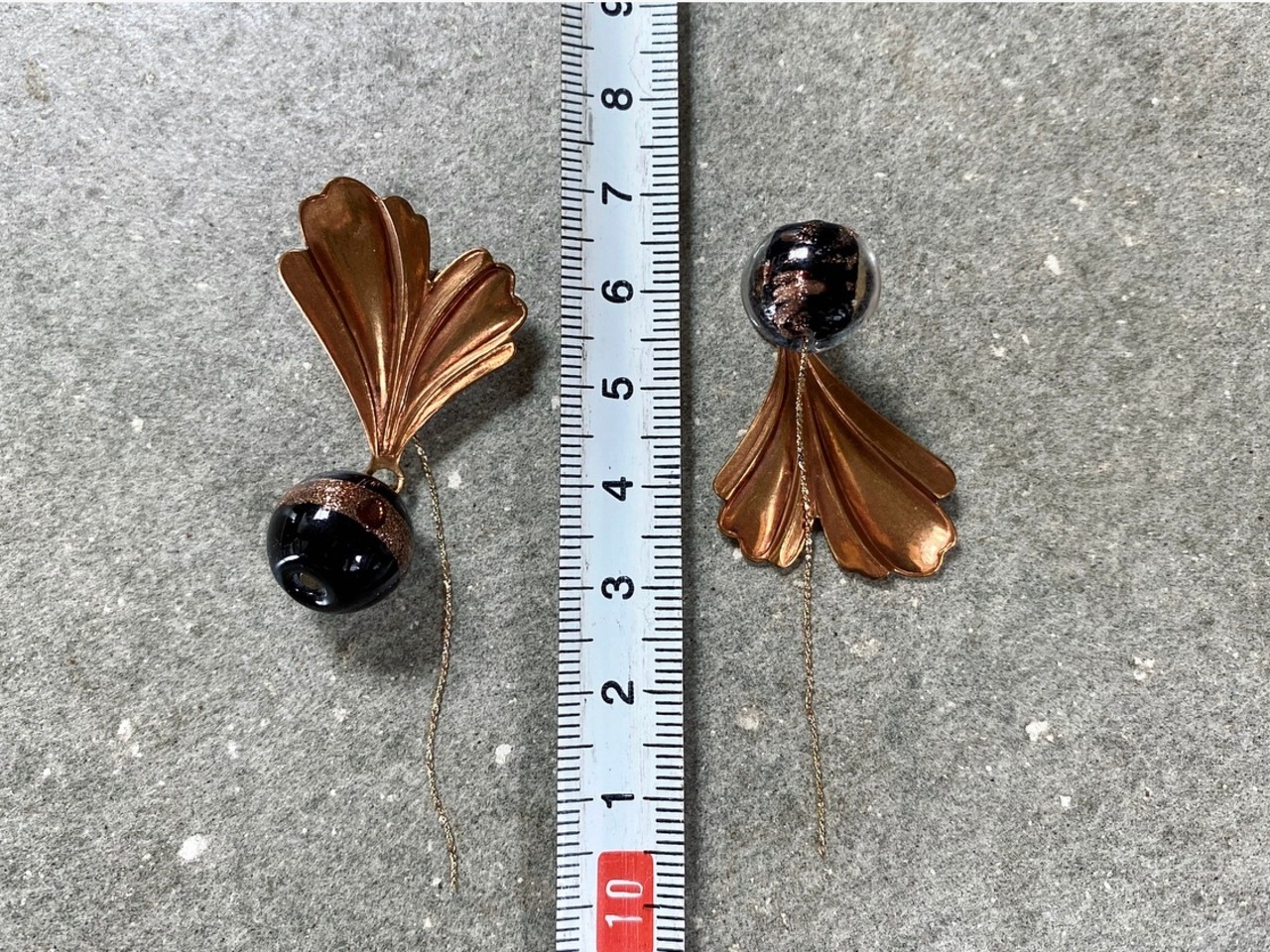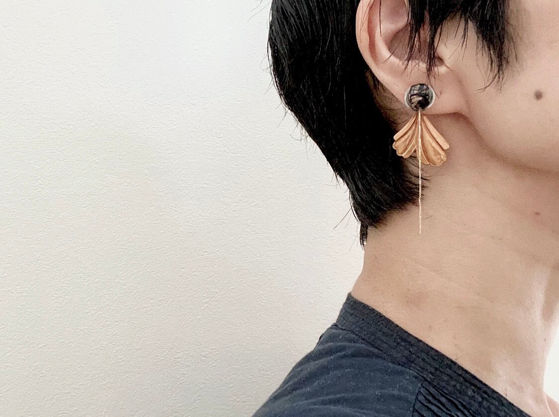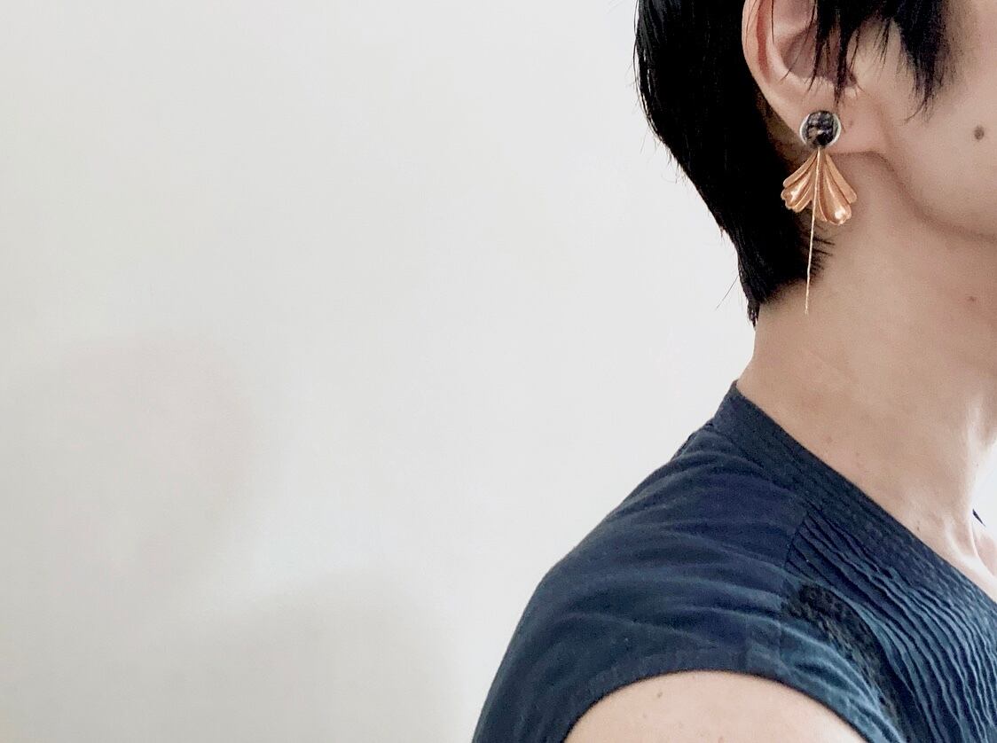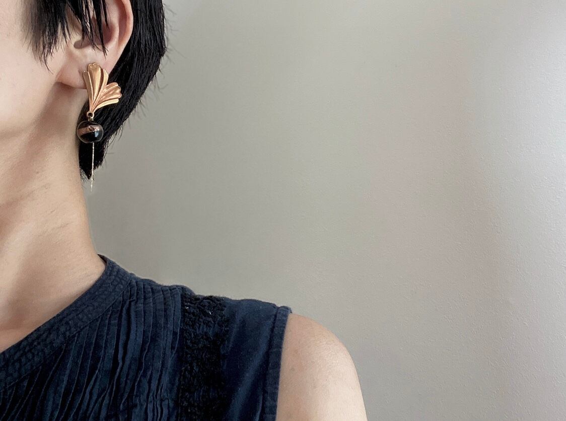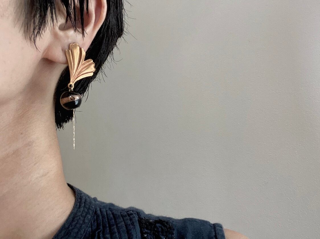 ヴィンテージガラスビーズとヴィンテージブロンズパーツを組み合わせて、ピアスを作りました。