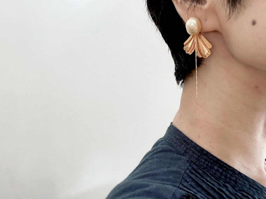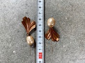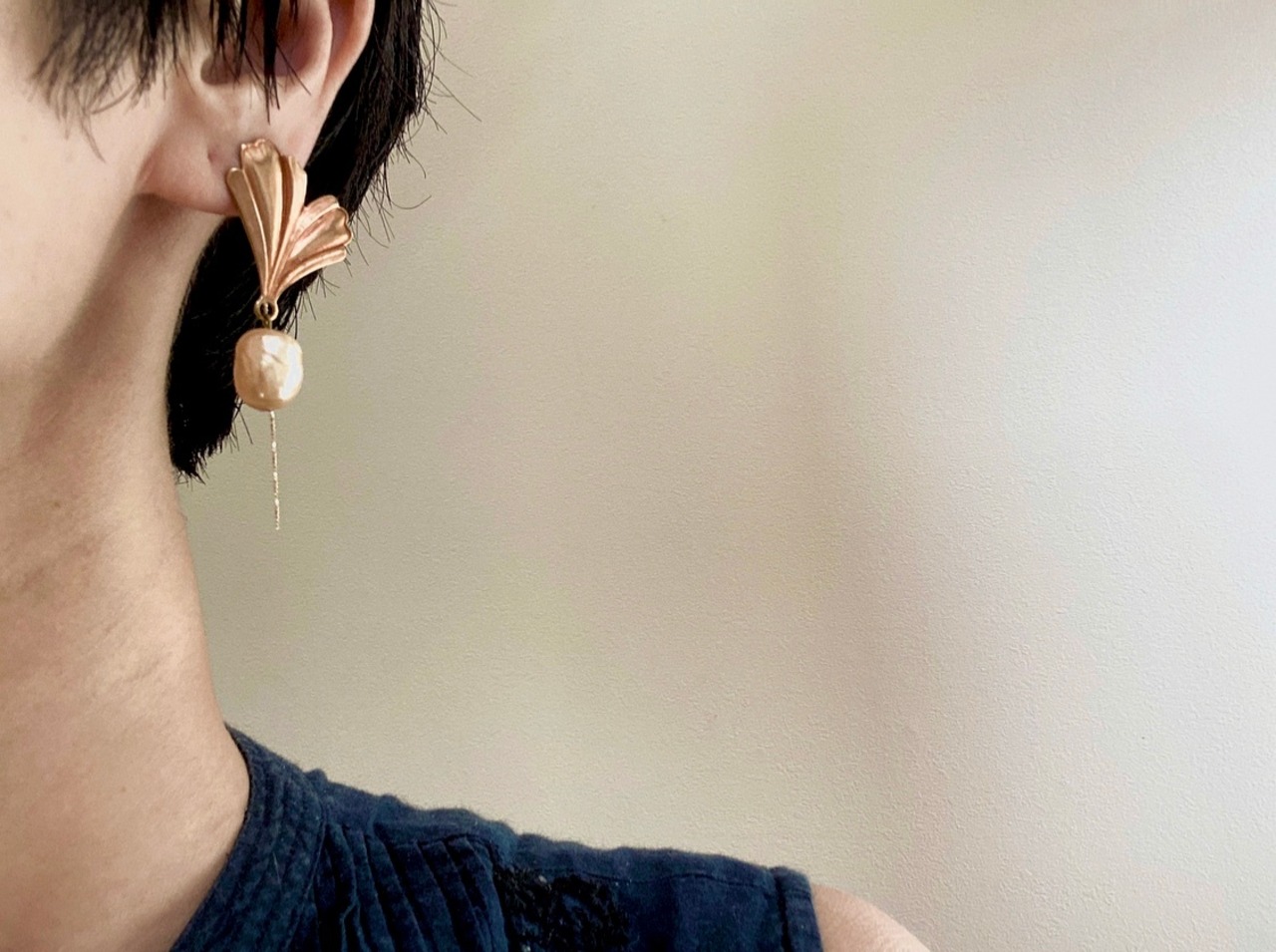 ヴィンテージガラスパールとヴィンテージブロンズパーツを組み合わせてピアスを作りました。