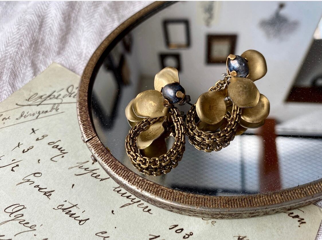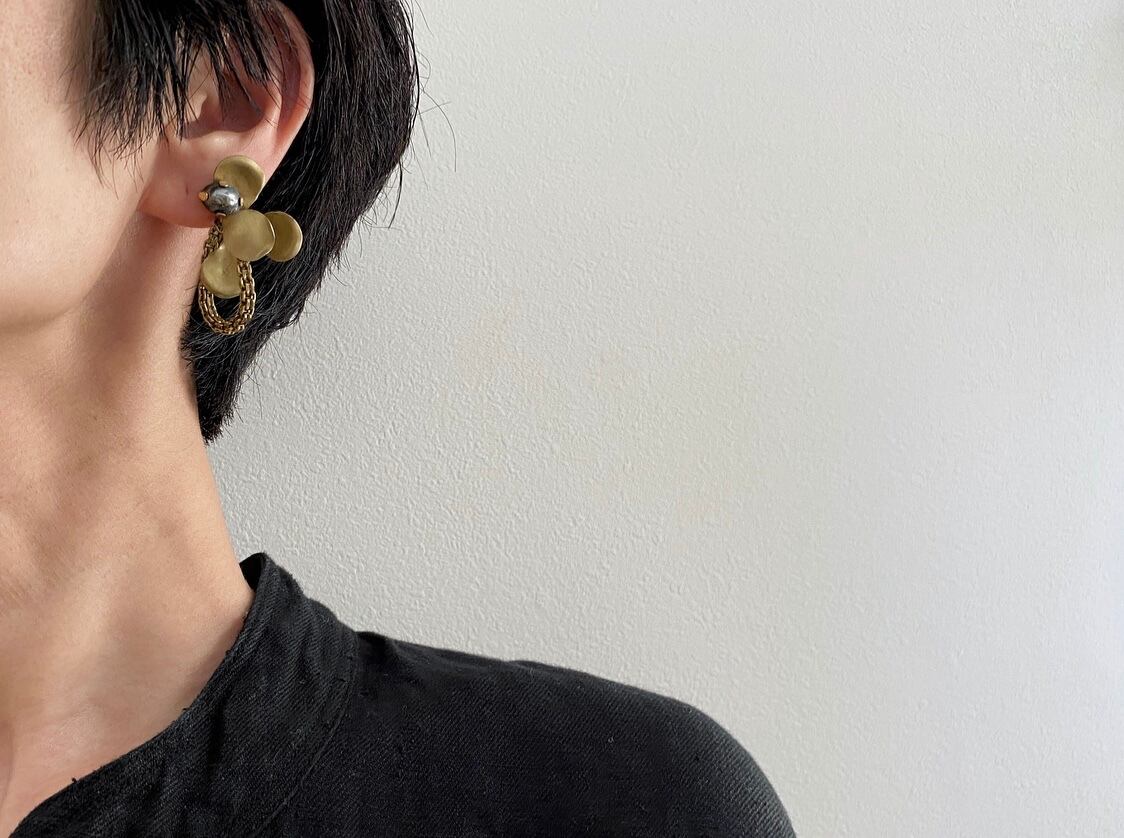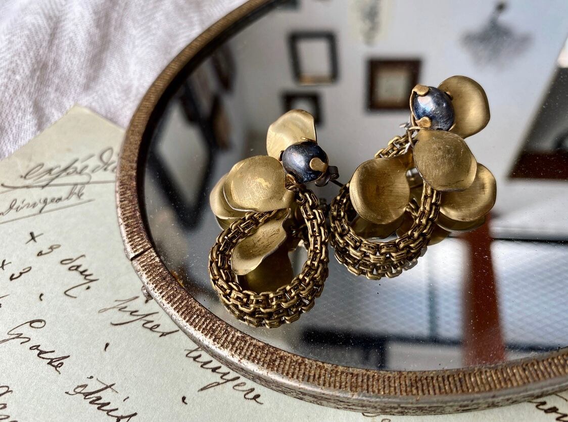 ヴィンテージ真鍮パーツを使ってピアスを作りました。