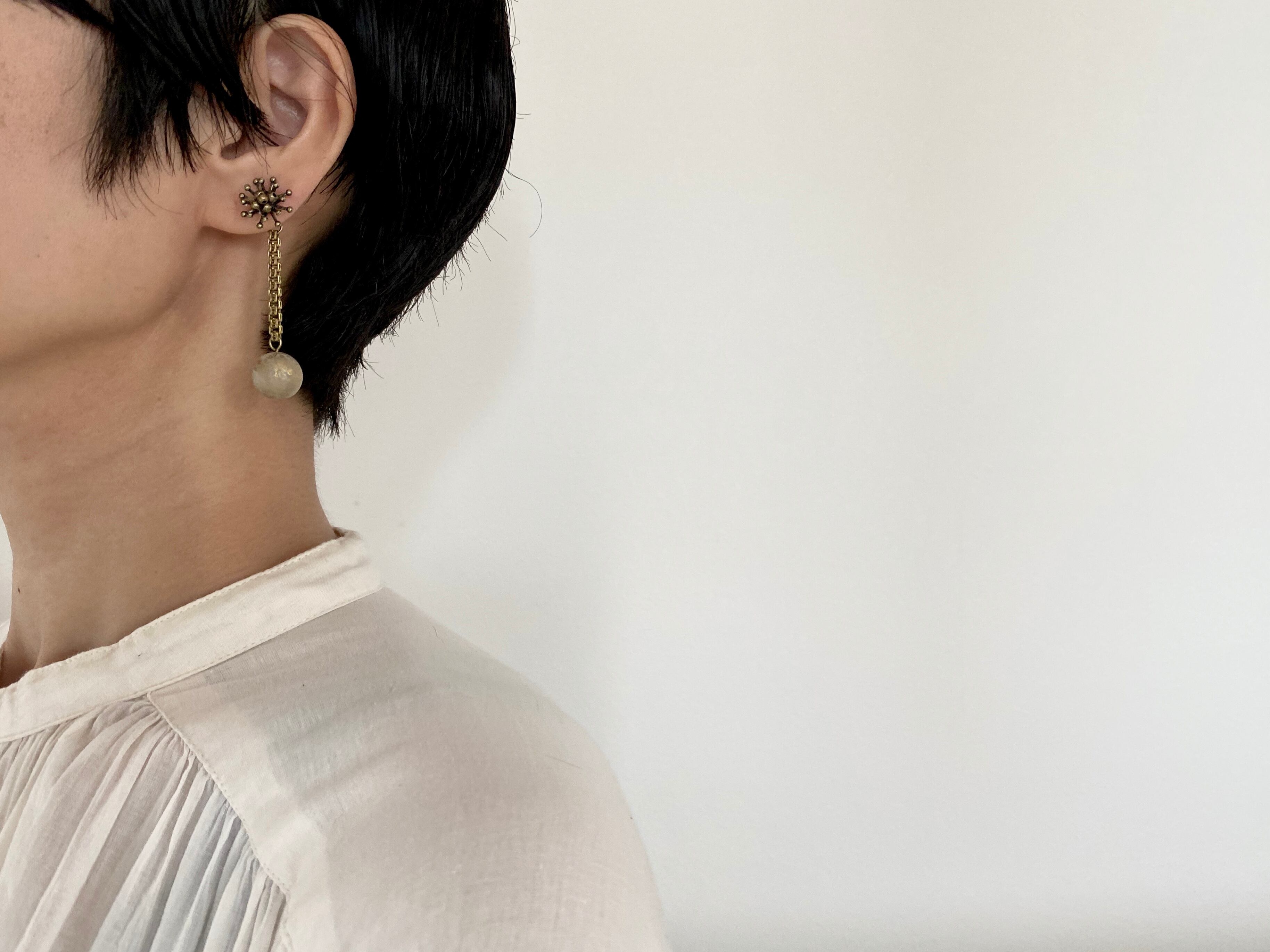 ヴィンテージ真鍮パーツやヴィンテージビーズを使って、ピアスを作りました。