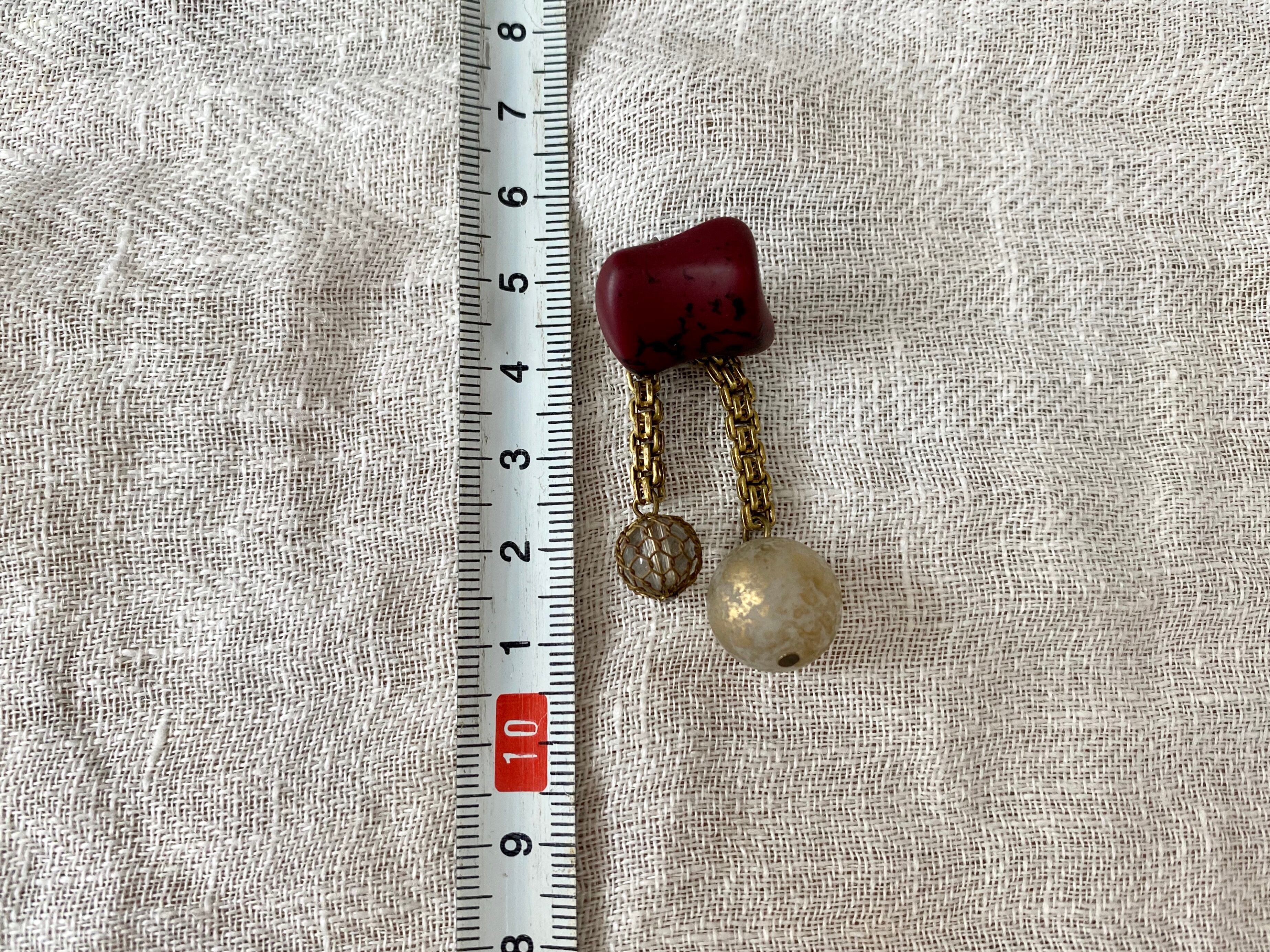 ヴィンテージボタンをカボションに真鍮チェーンとヴィンテージビーズを添えてピアスに仕上げました。