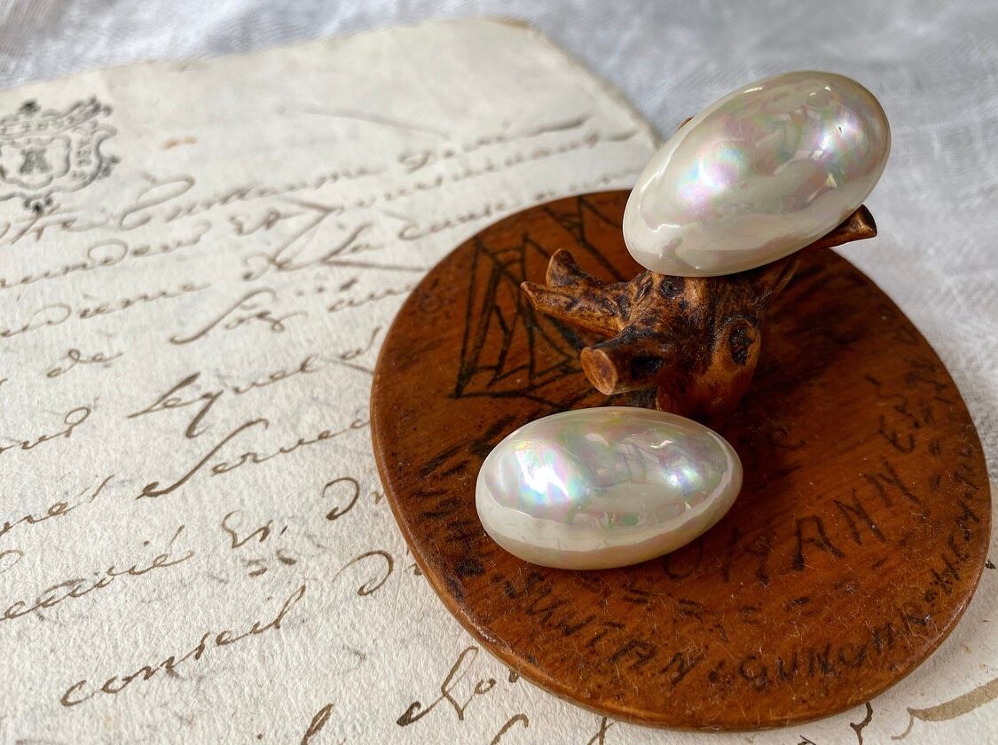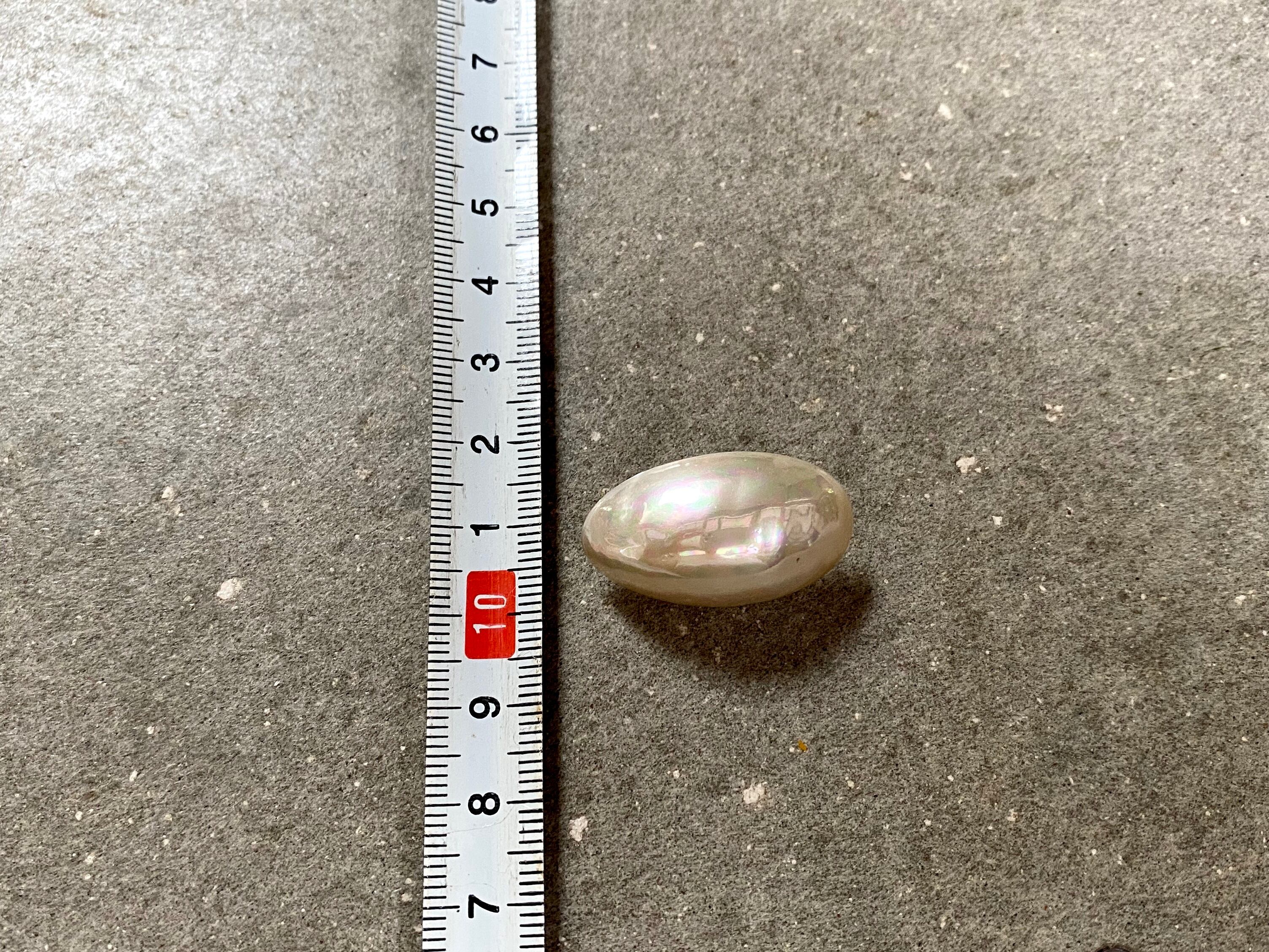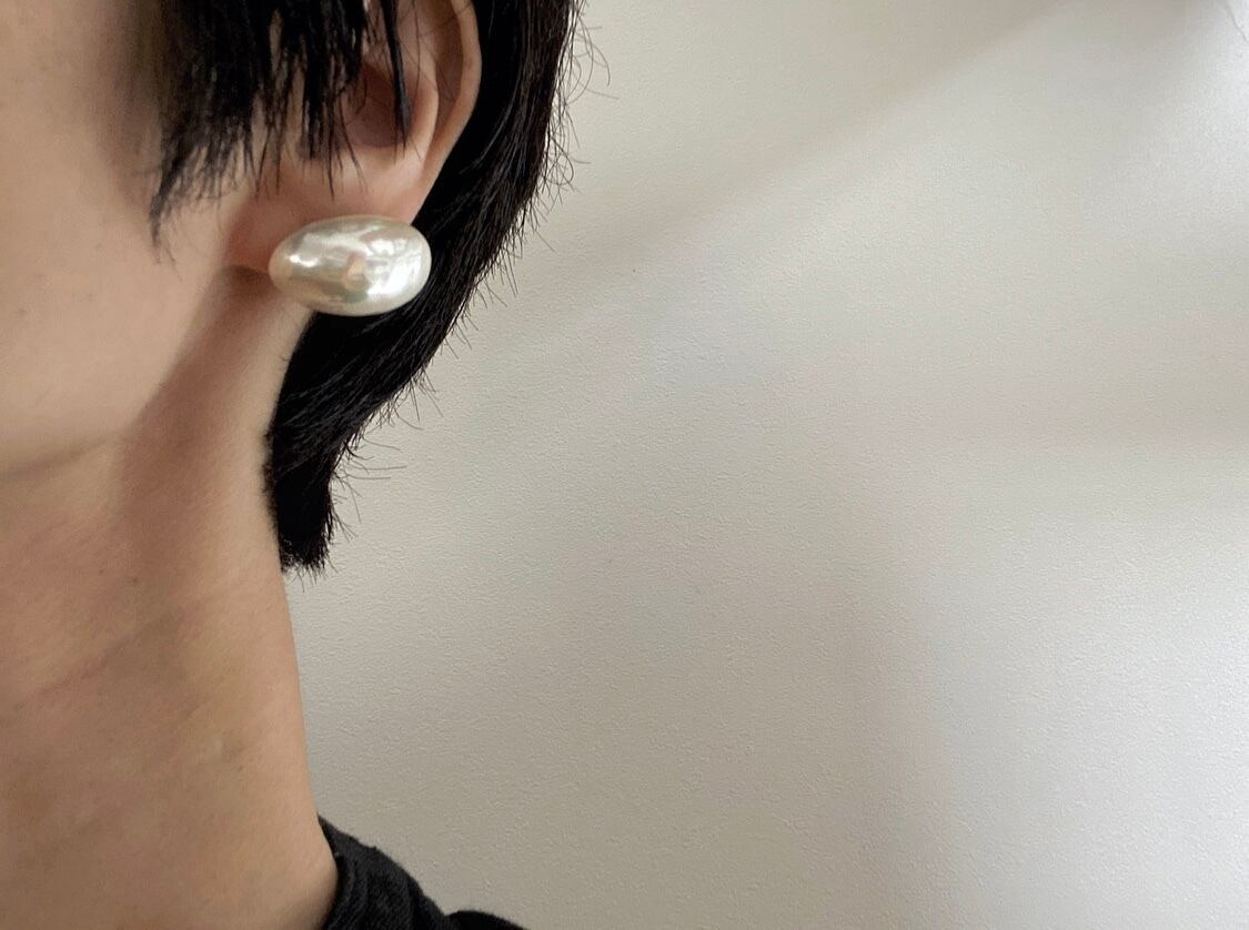 存在感いっぱいの大きさとは対極に、静かに艶っぽく光るパール色が、大人っぽく上品な一品です。