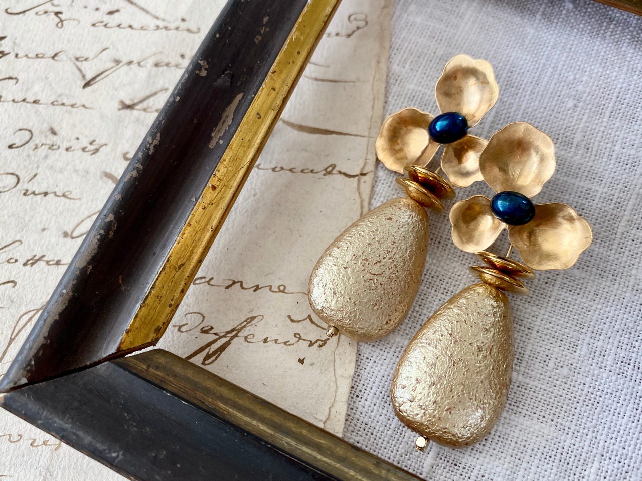 ヴィンテージ真鍮パーツやヴィンテージビーズを組み合わせてピアスを作りました。