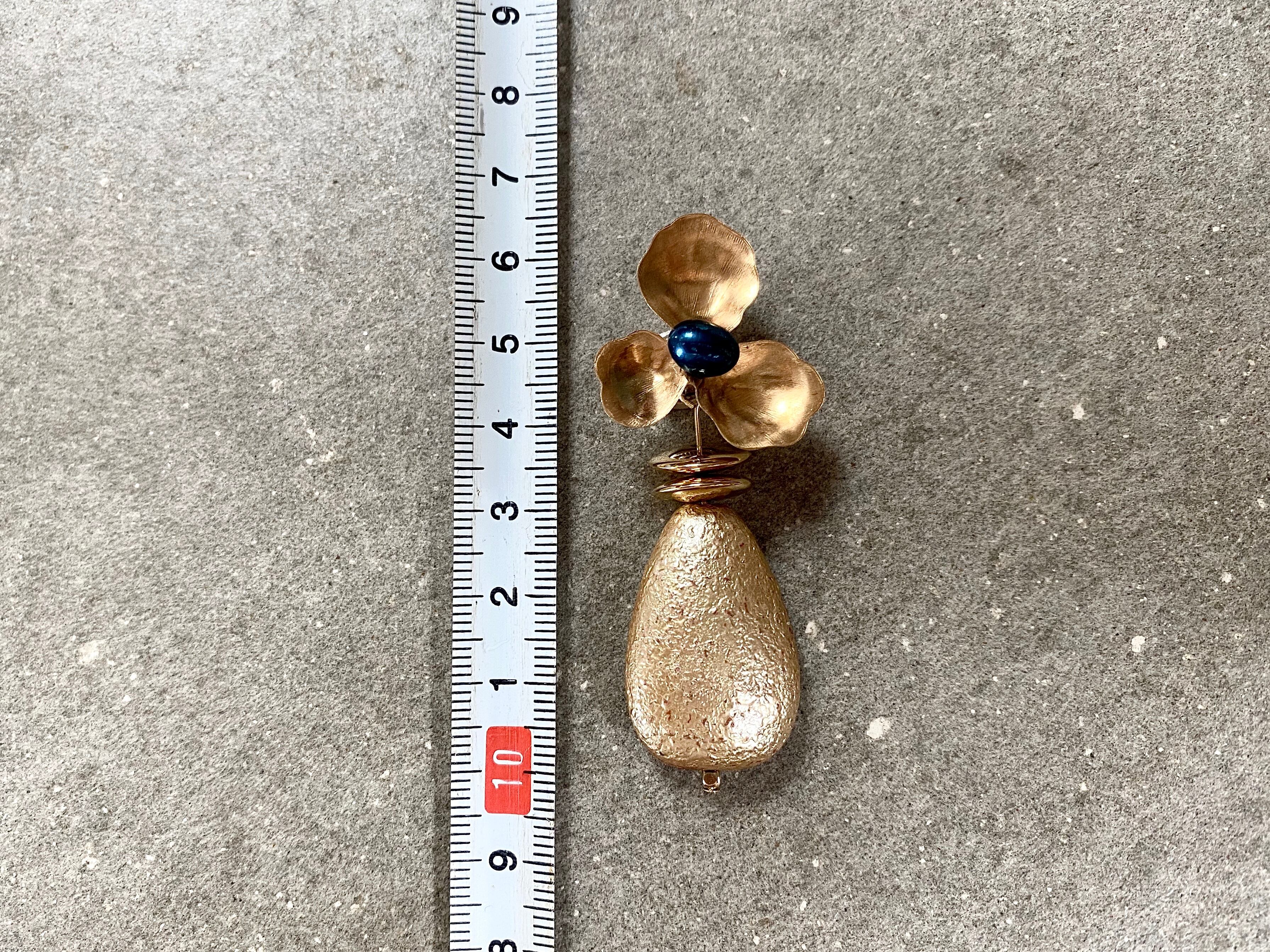お花中央のヴィンテージパーツは、偏光メタルブルーです。