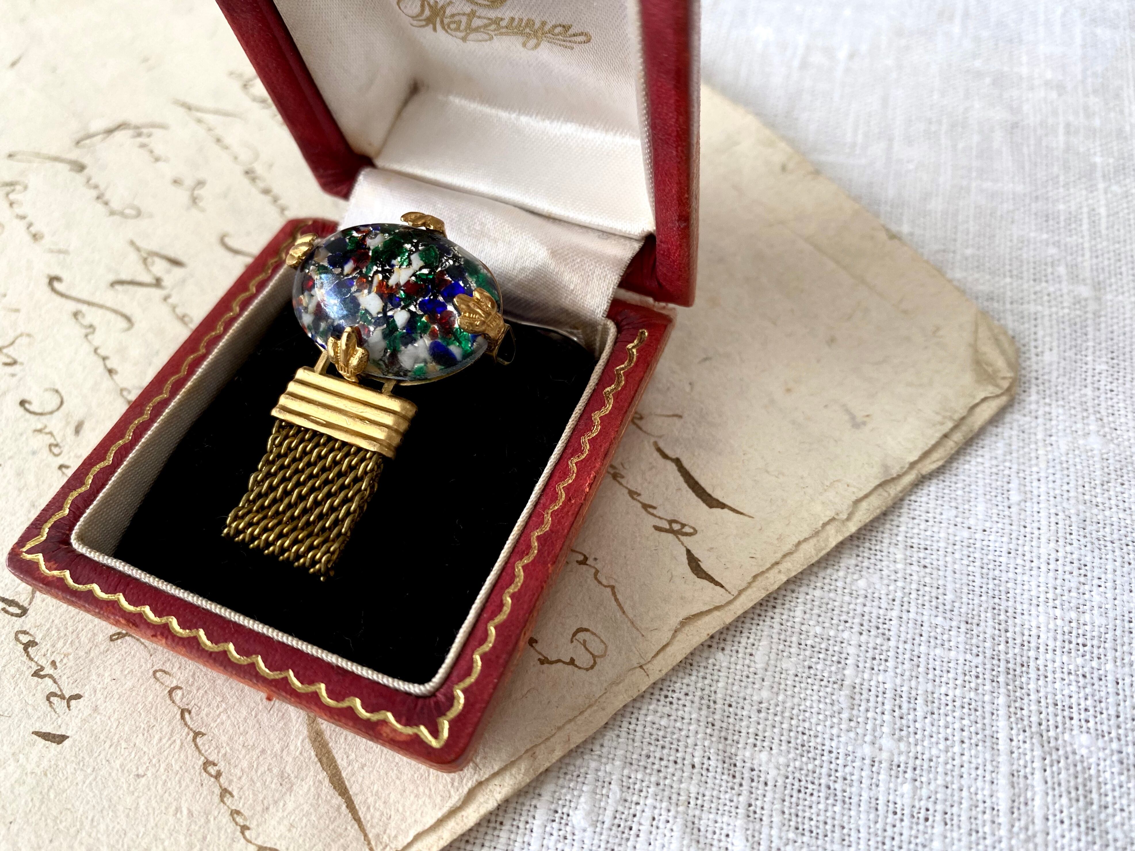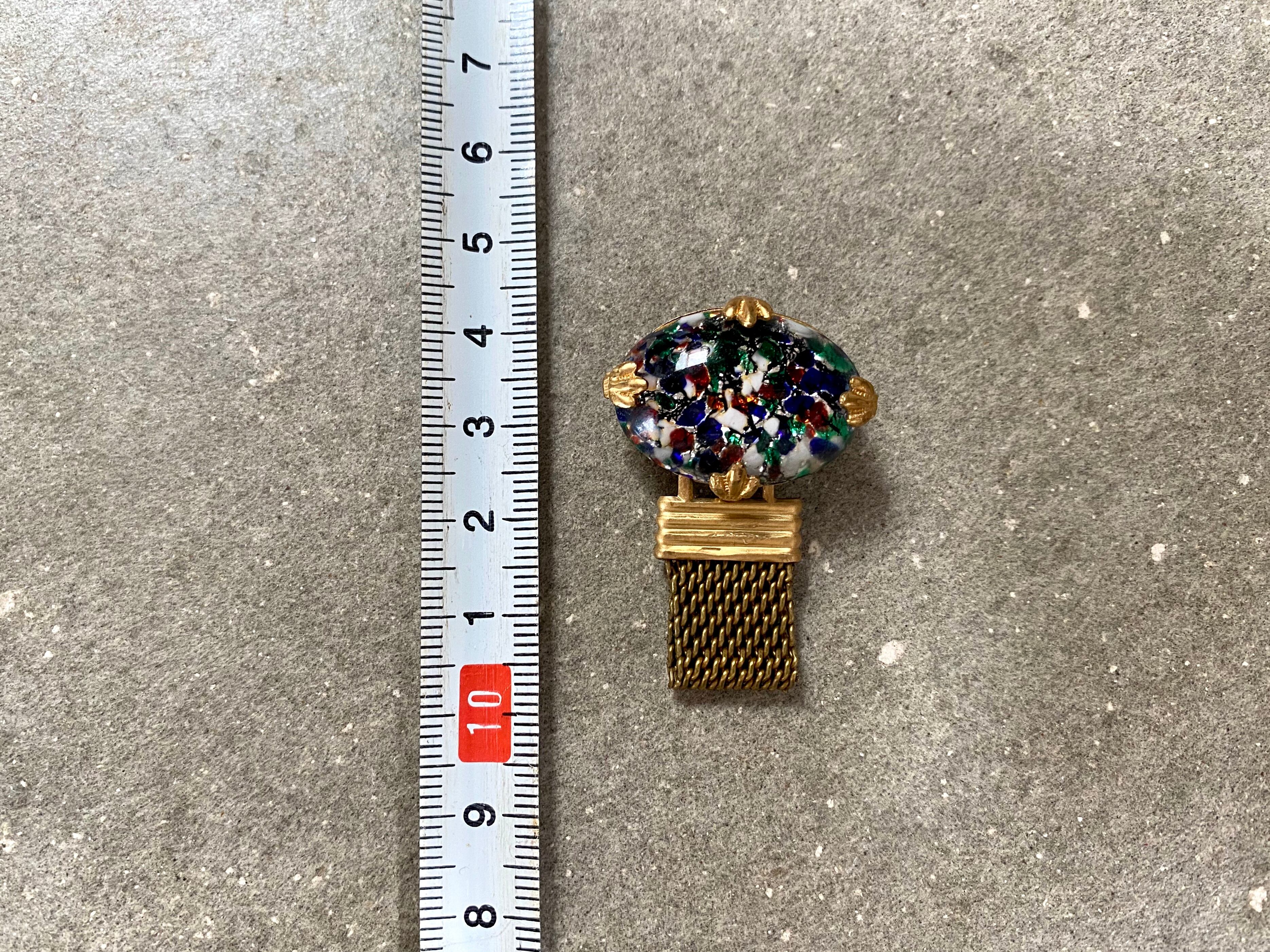 ヴィンテージガラスカボションやヴィンテージ真鍮パーツを使って、ブローチを作りました。