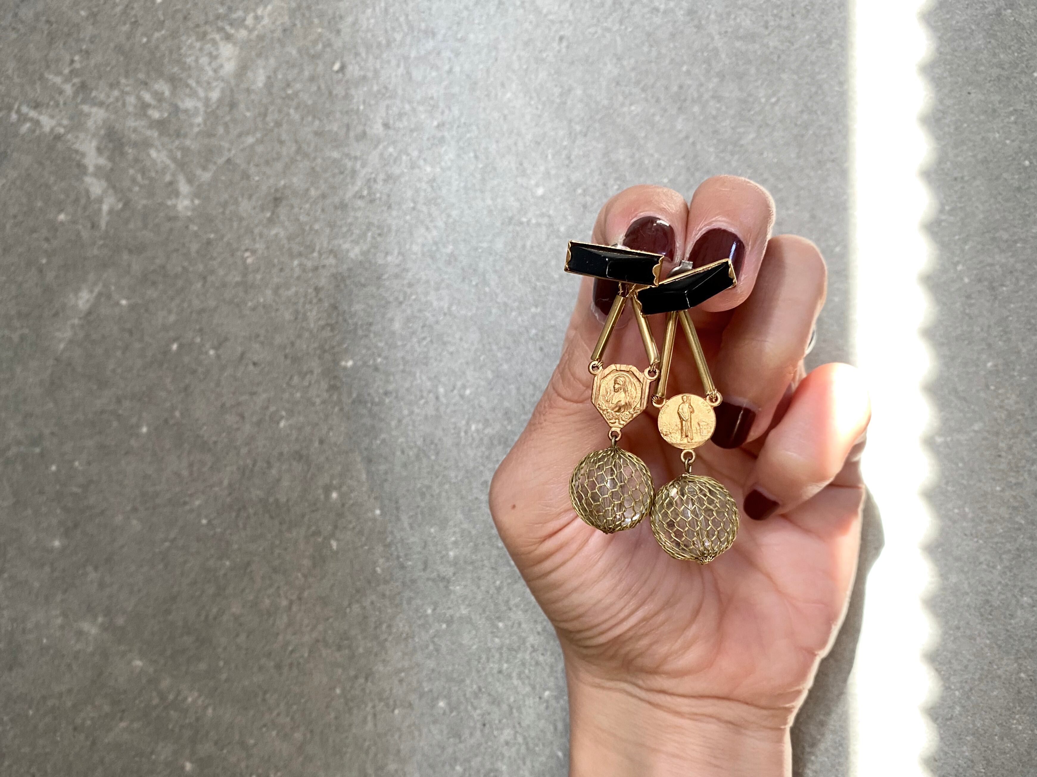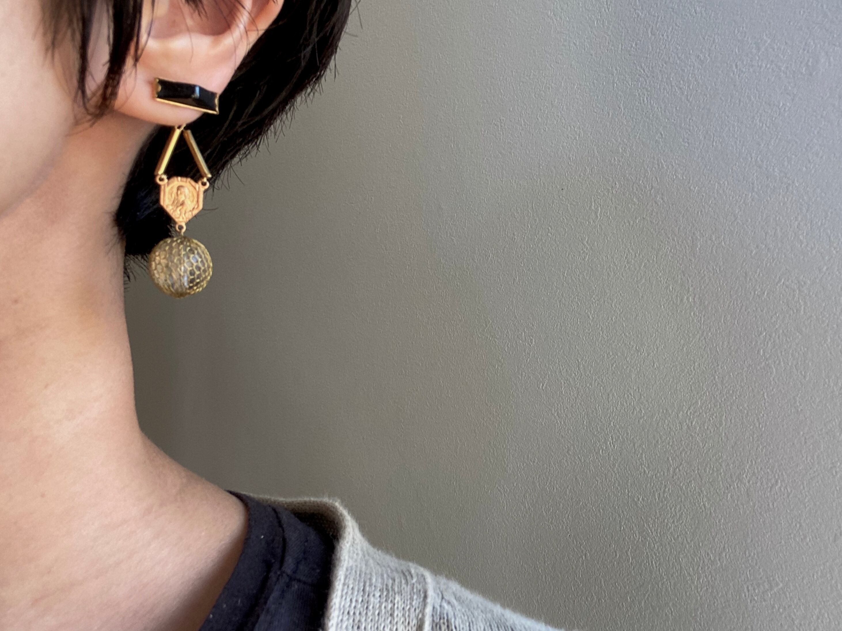 ヴィンテージパーツを組み合わせて、ピアスを作りました。