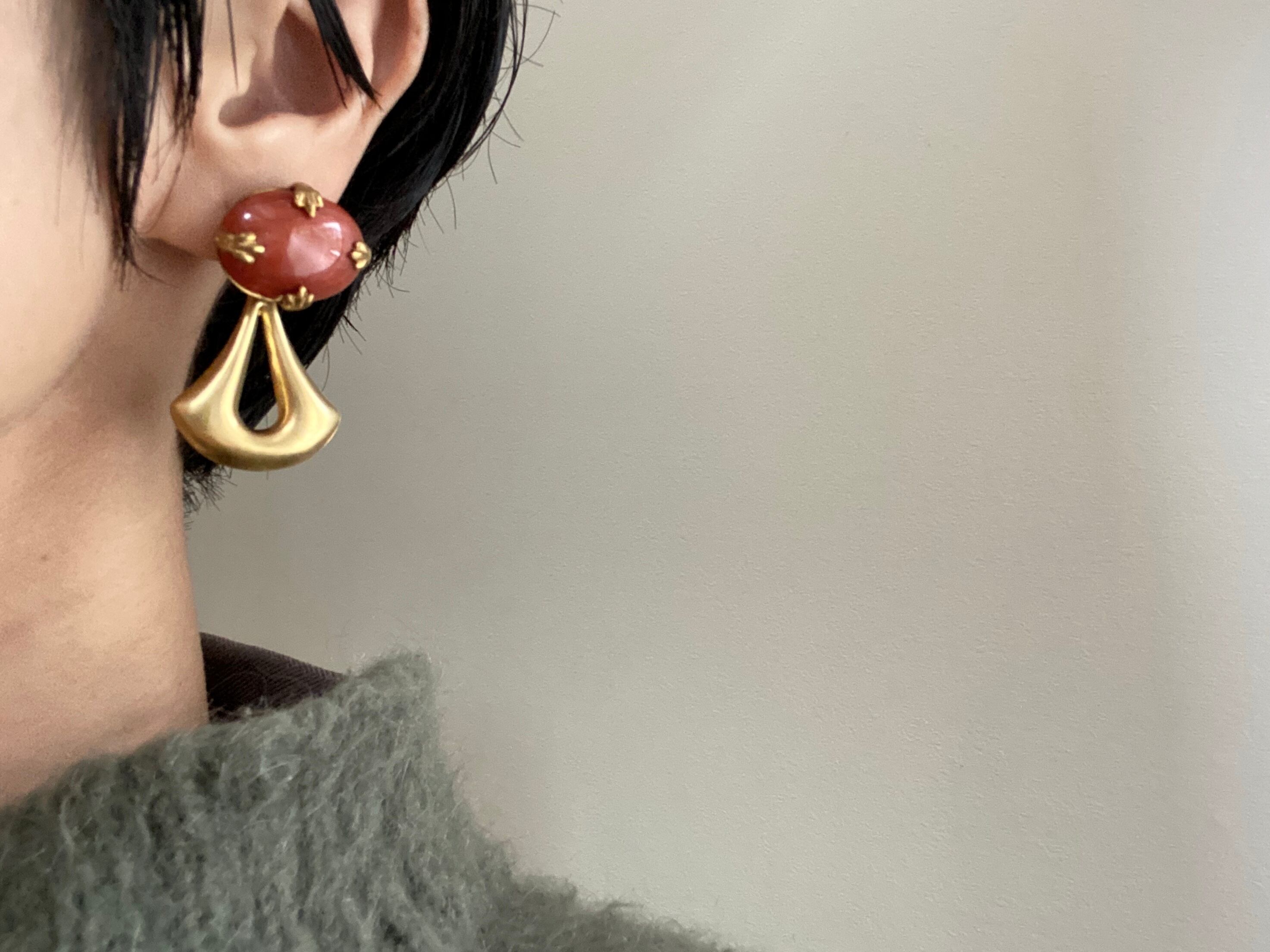 微量のゴールドマーブルがかかったコーラルオレンジのカボションが、顔色良く感じさせます。