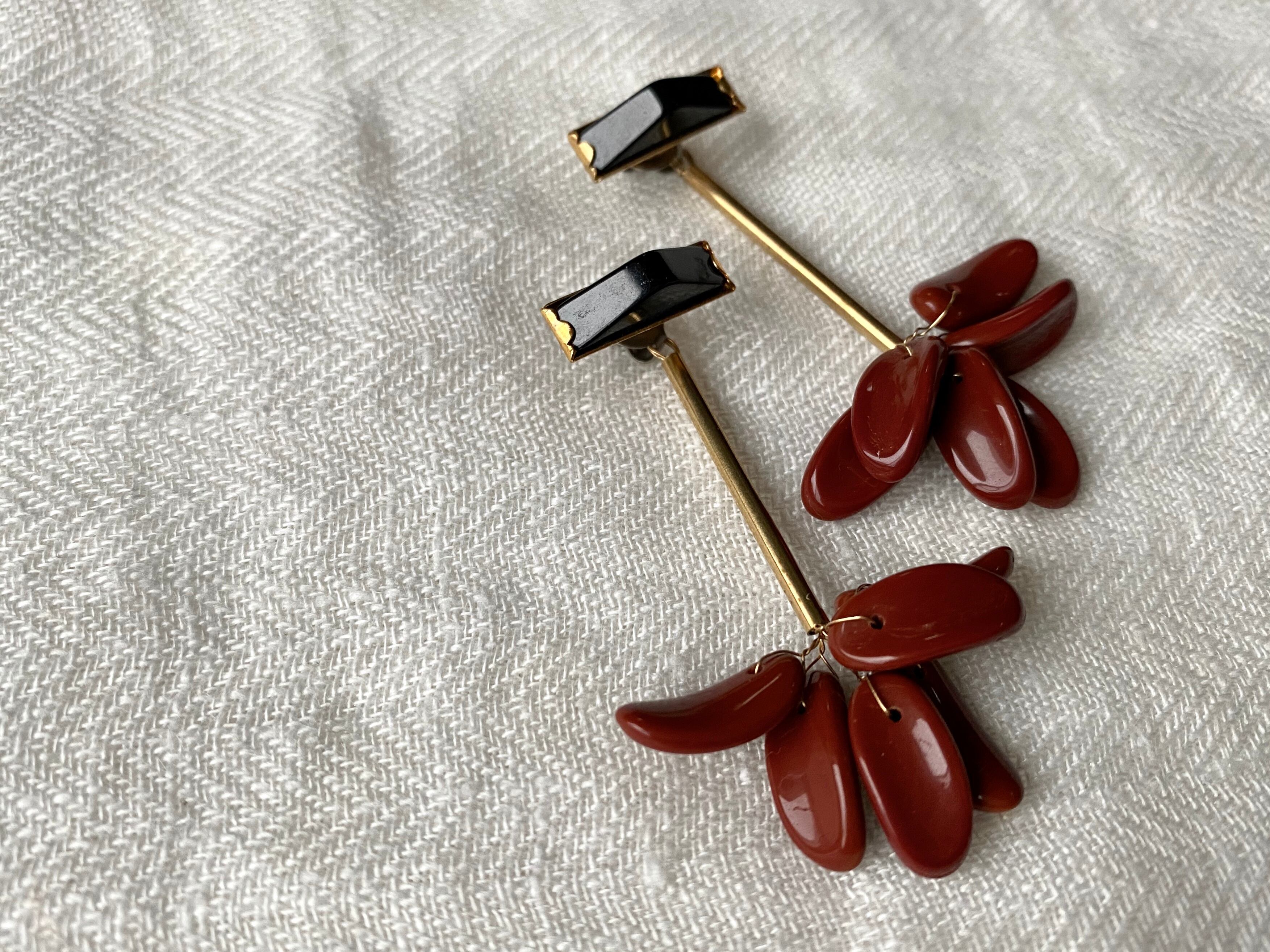 ヴィンテージパーツを組み合わせて、ピアスを作りました。