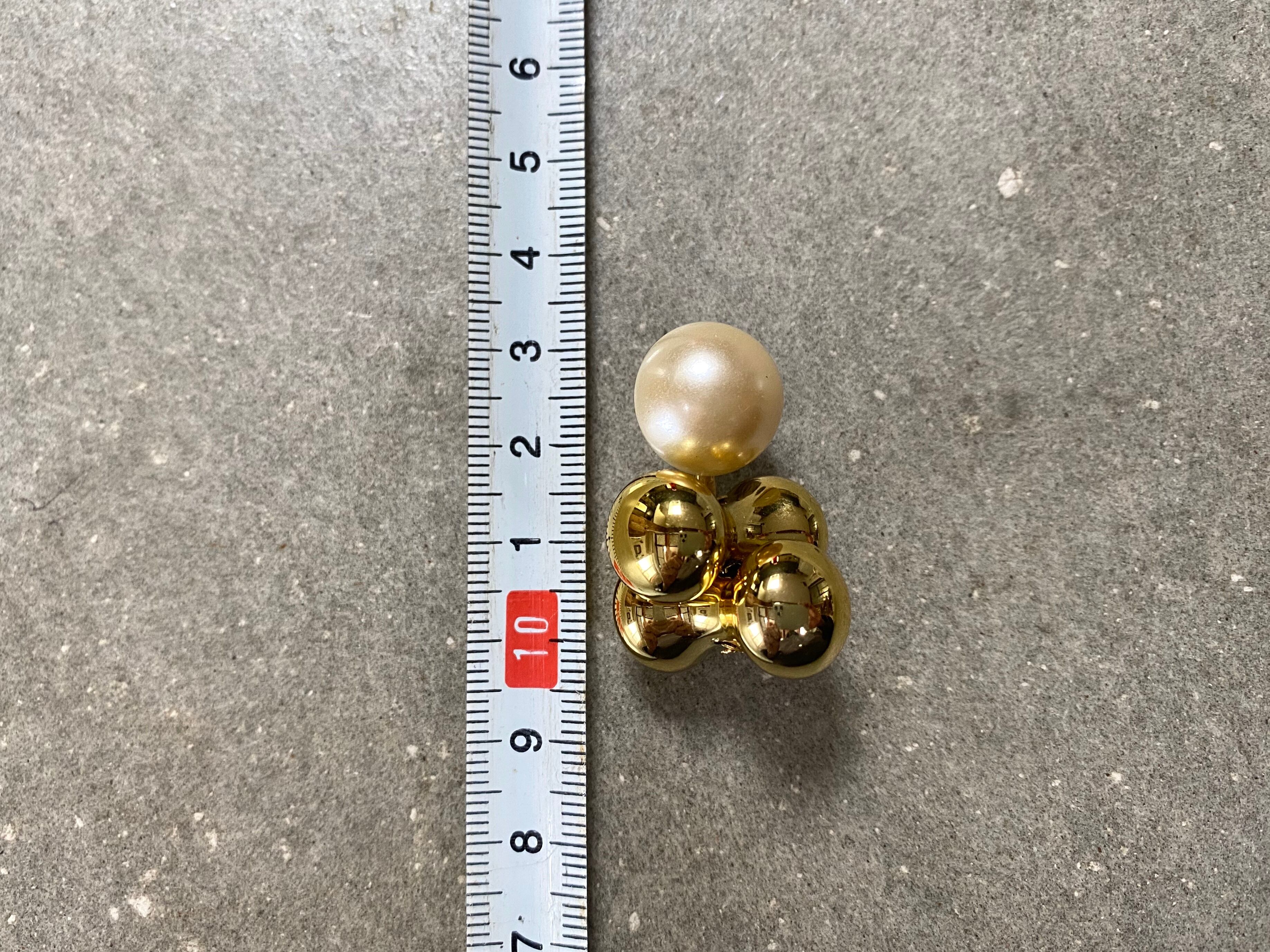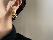 個性的な形のヴィンテージビーズをパール型のカボションで上品に仕上げました。