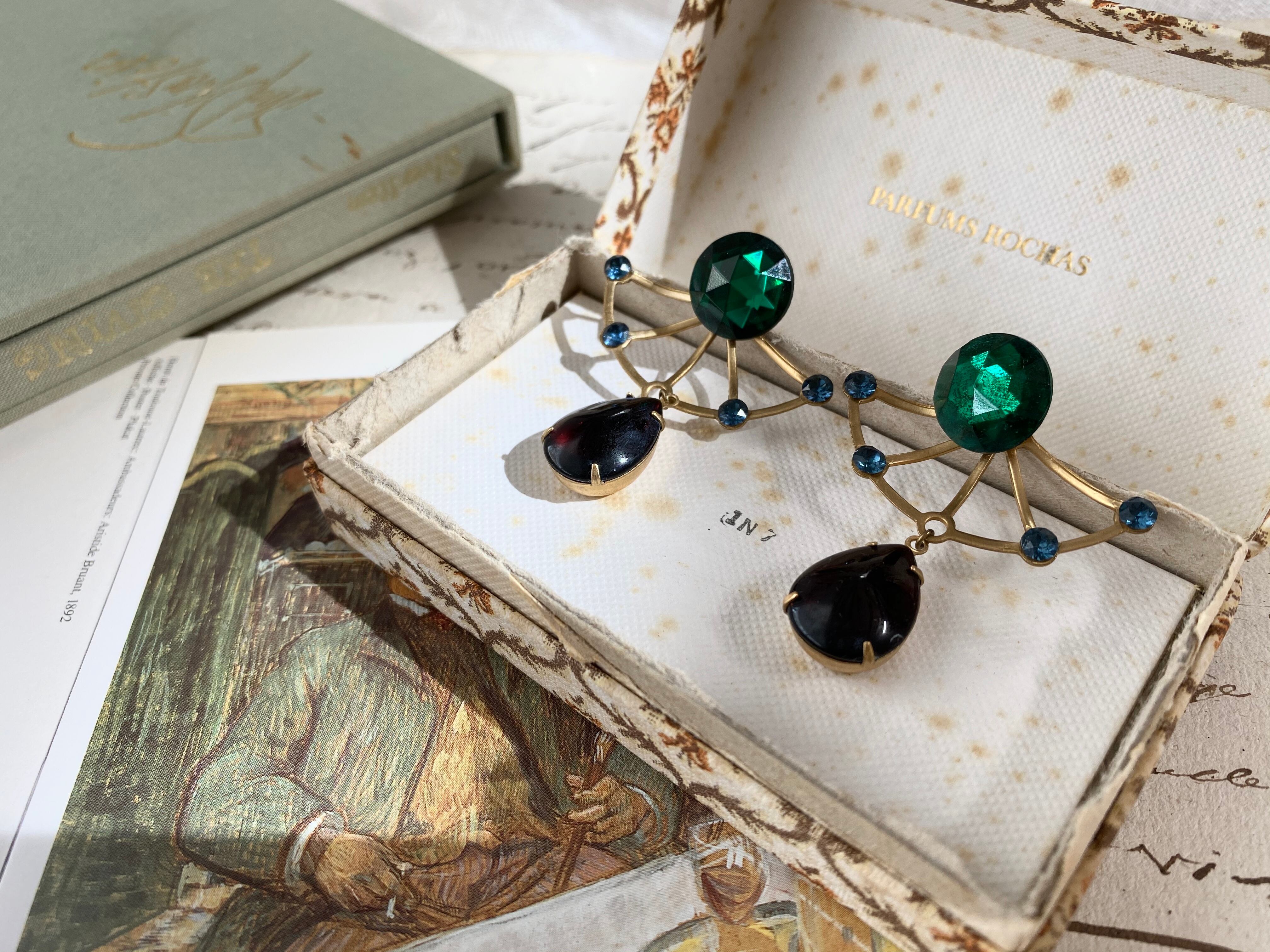 ヴィンテージパーツを組み合わせて、ピアスを作りました。