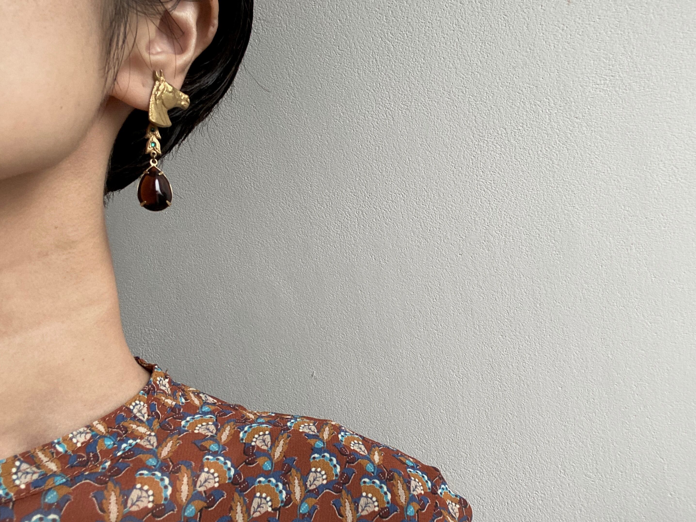 華やかなヴィンテージスワロフスキーにダークブラウンのヴィンテージガラスを組み合わせて、深みを持たせました。