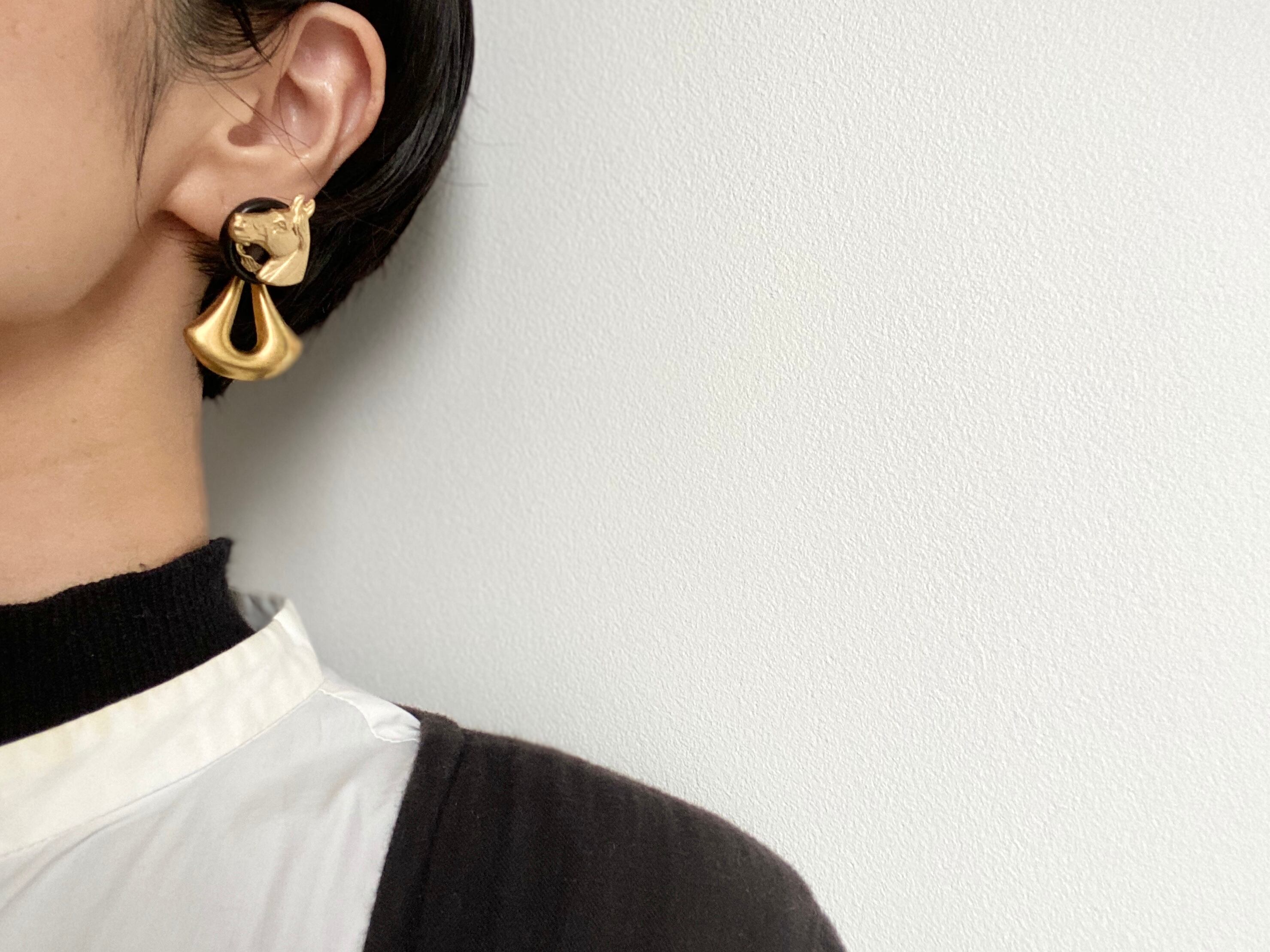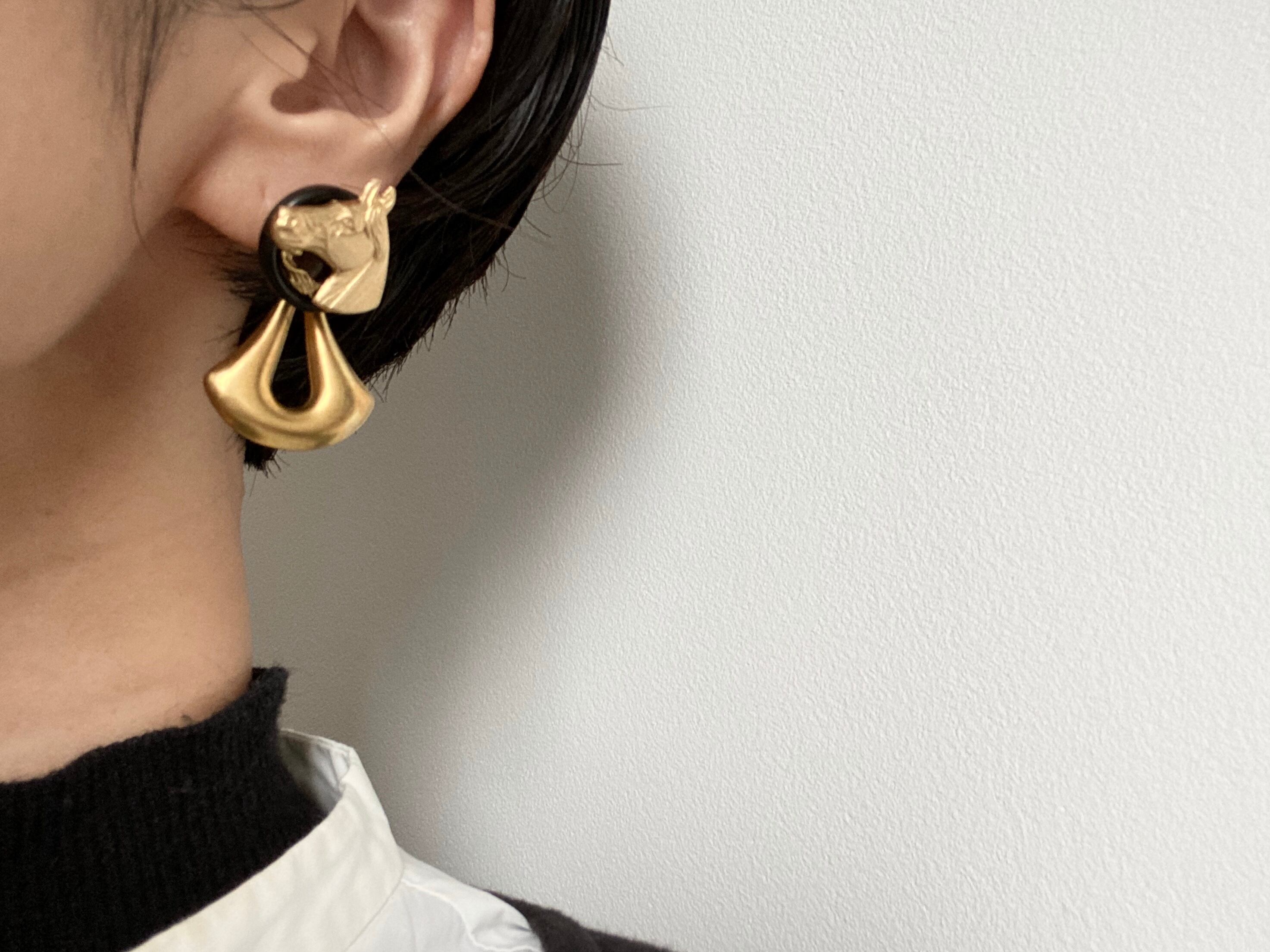 ヴィンテージ真鍮パーツとヴィンテージボタンを組み合わせて、ピアスを作りました。