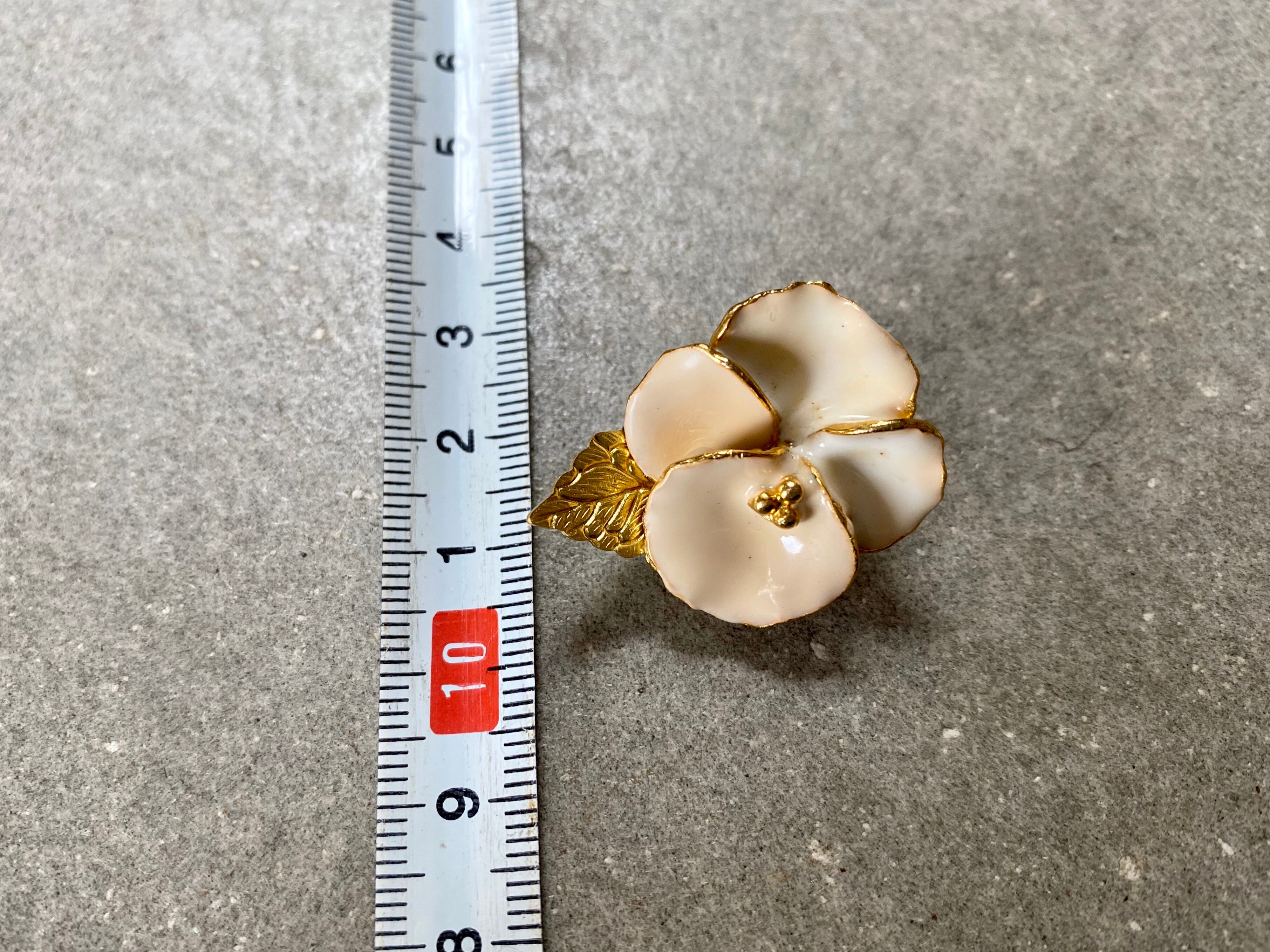 小さくて上品な印象で、ニットなどの他にも帽子やバッグなどの小物にも使いやすい一品です。