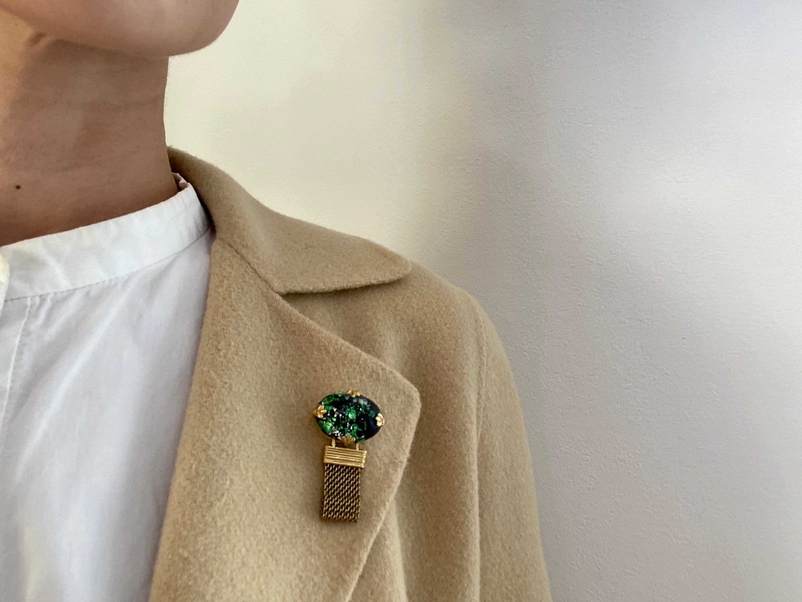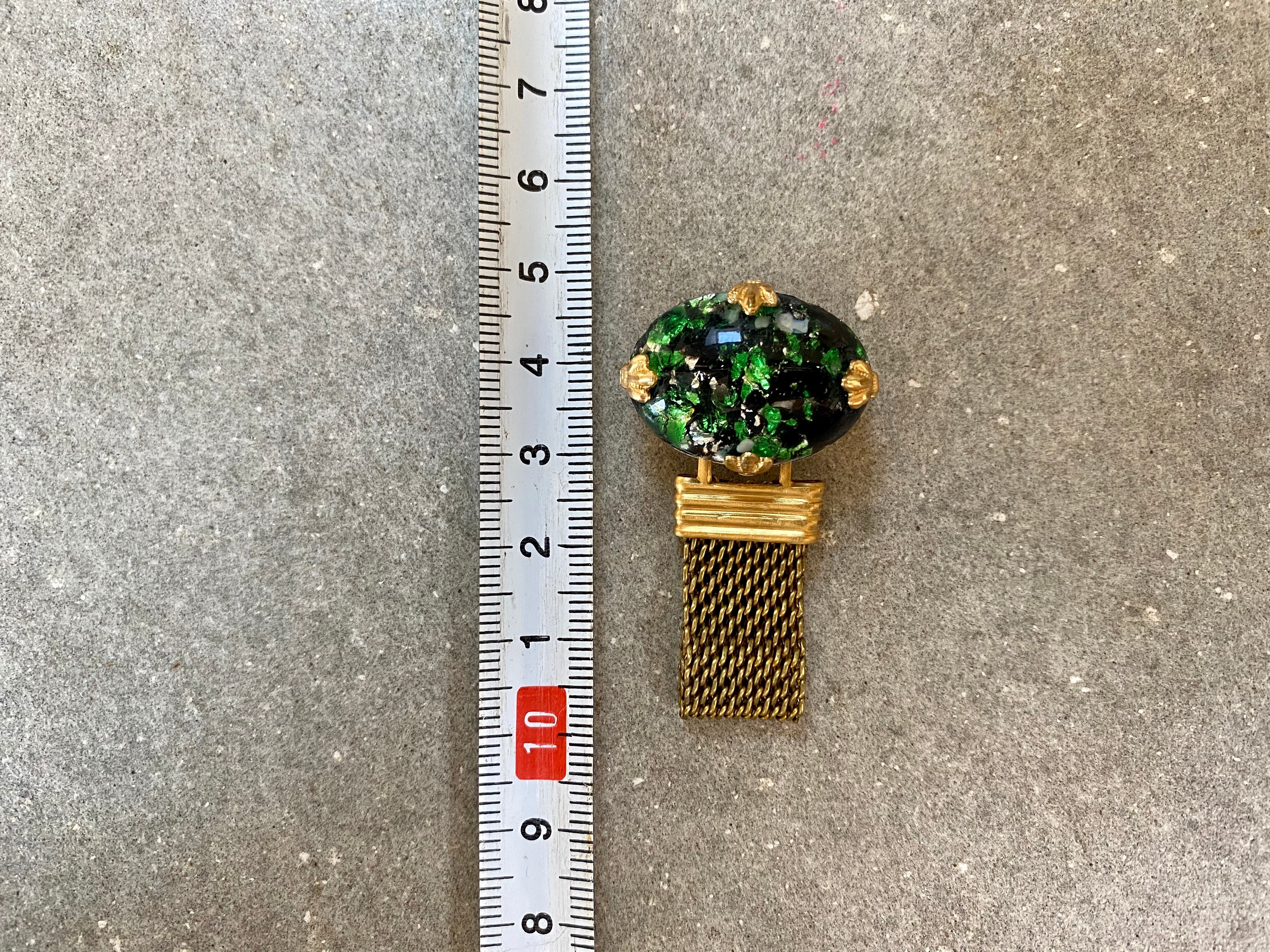 深い森を彷彿とさせるヴィンテージガラスカボションが、印象的です。