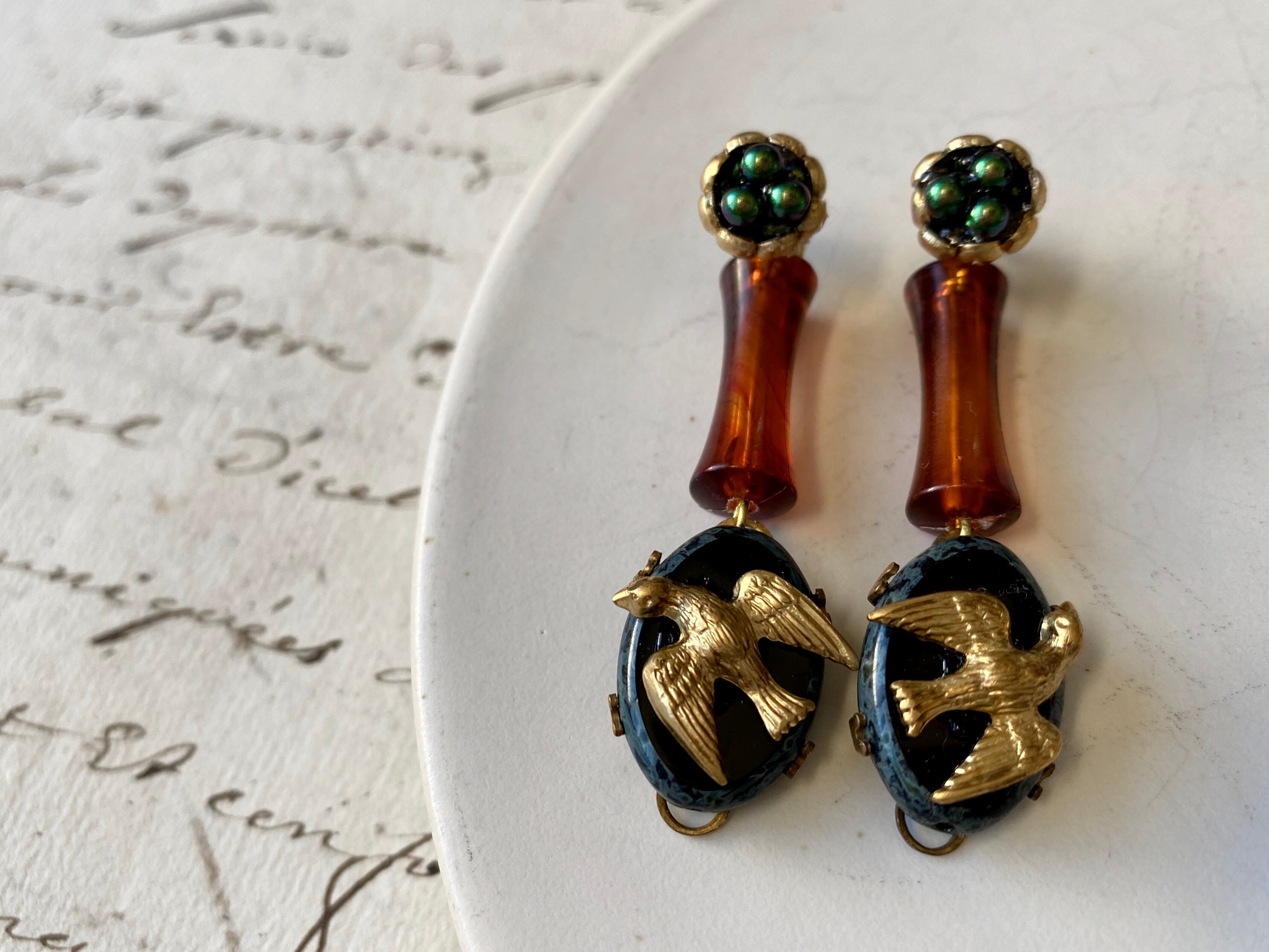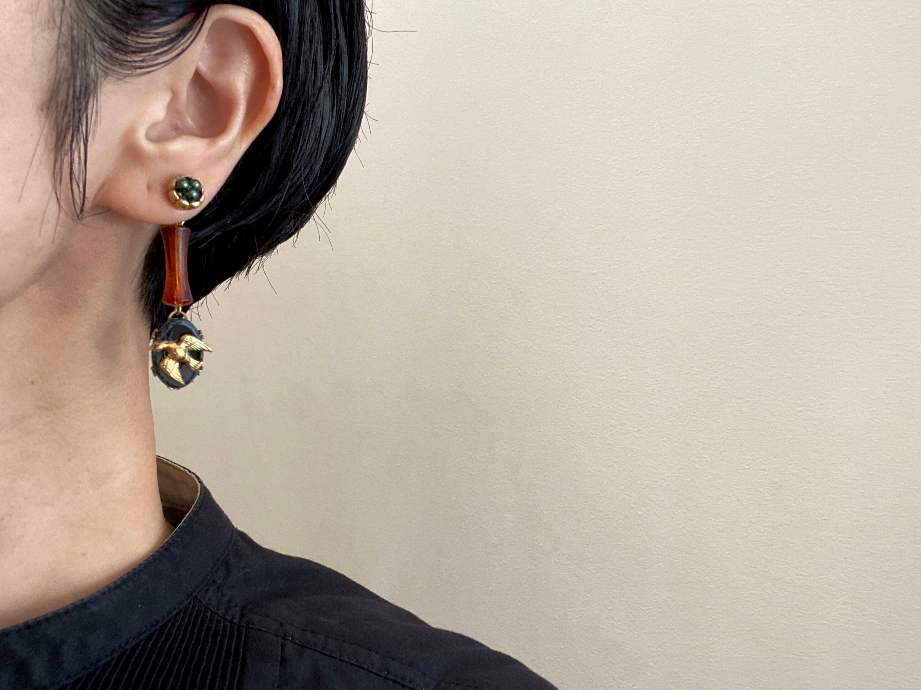 ヴィンテージパーツを組み合わせてピアスを作りました。