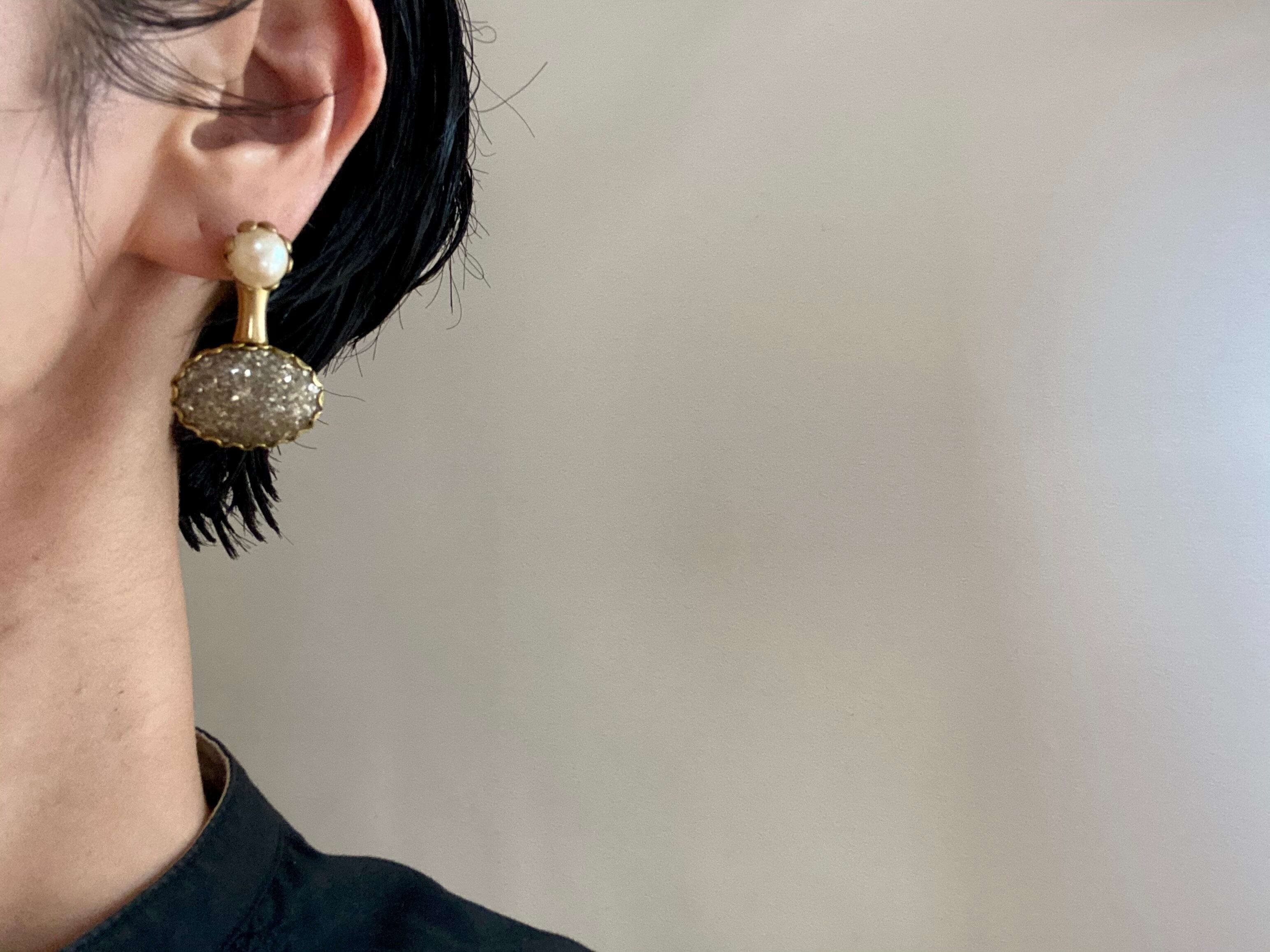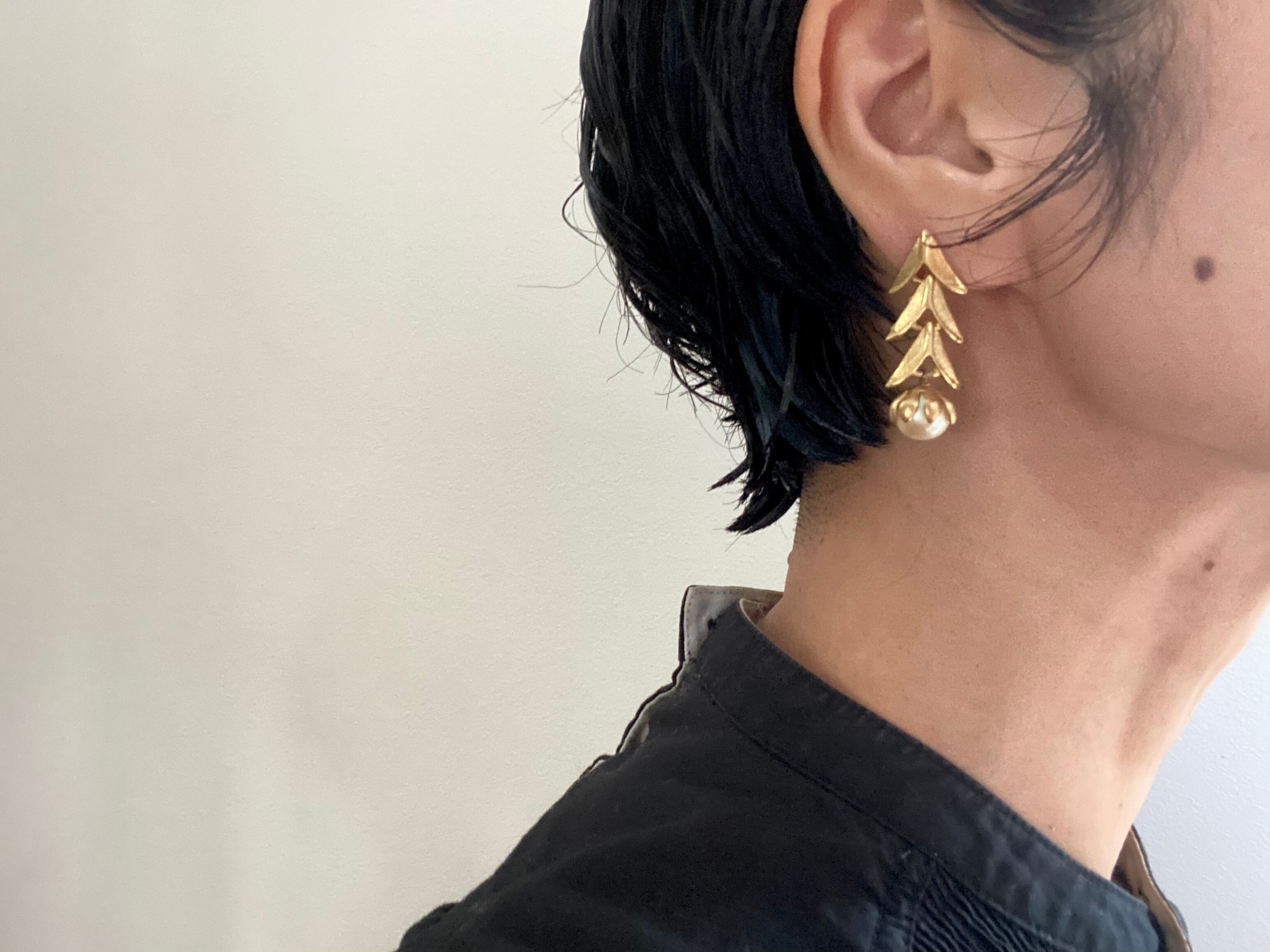ヴィンテージパーツを組み合わせてアシンメトリーなピアスを作りました。