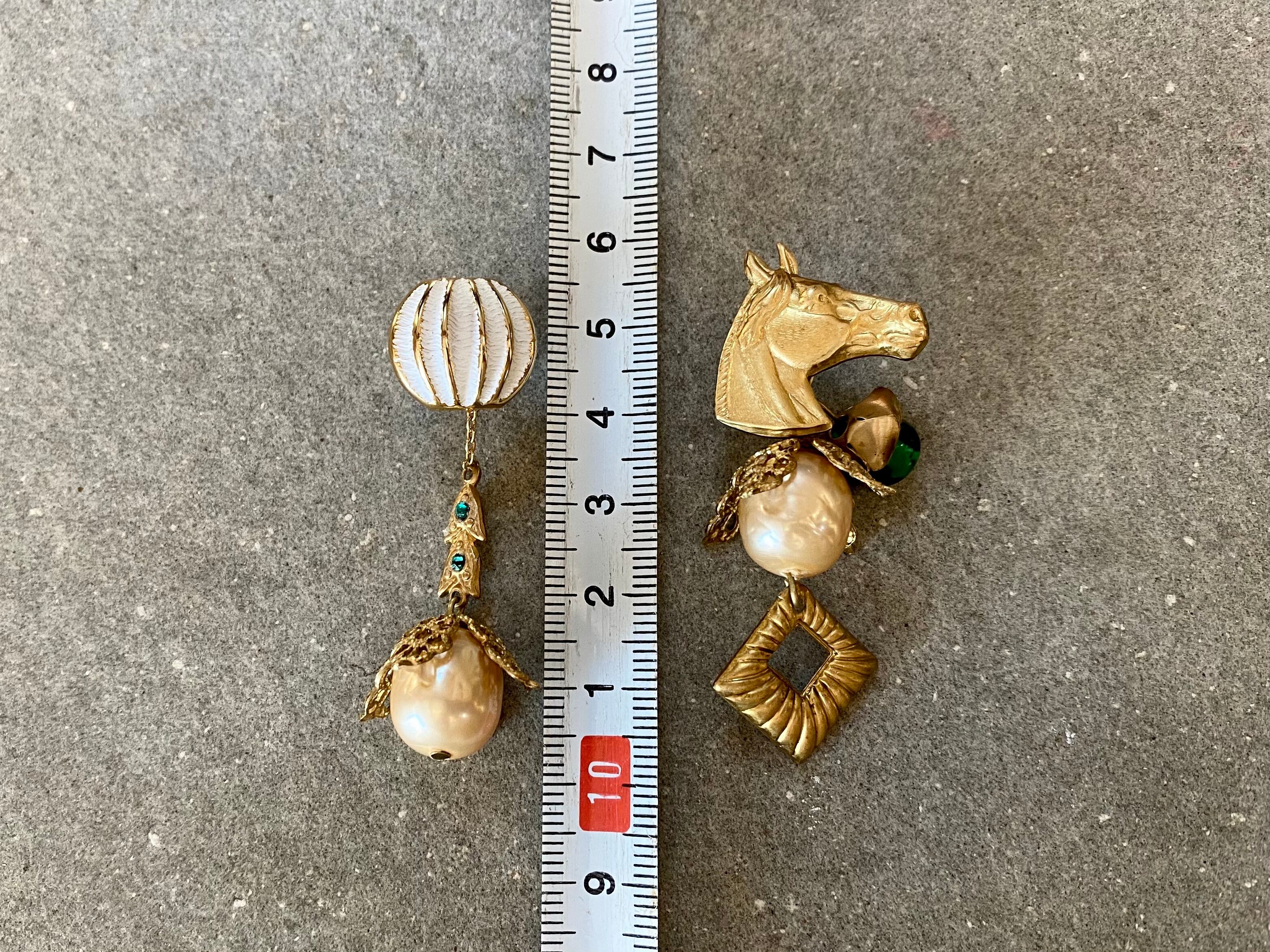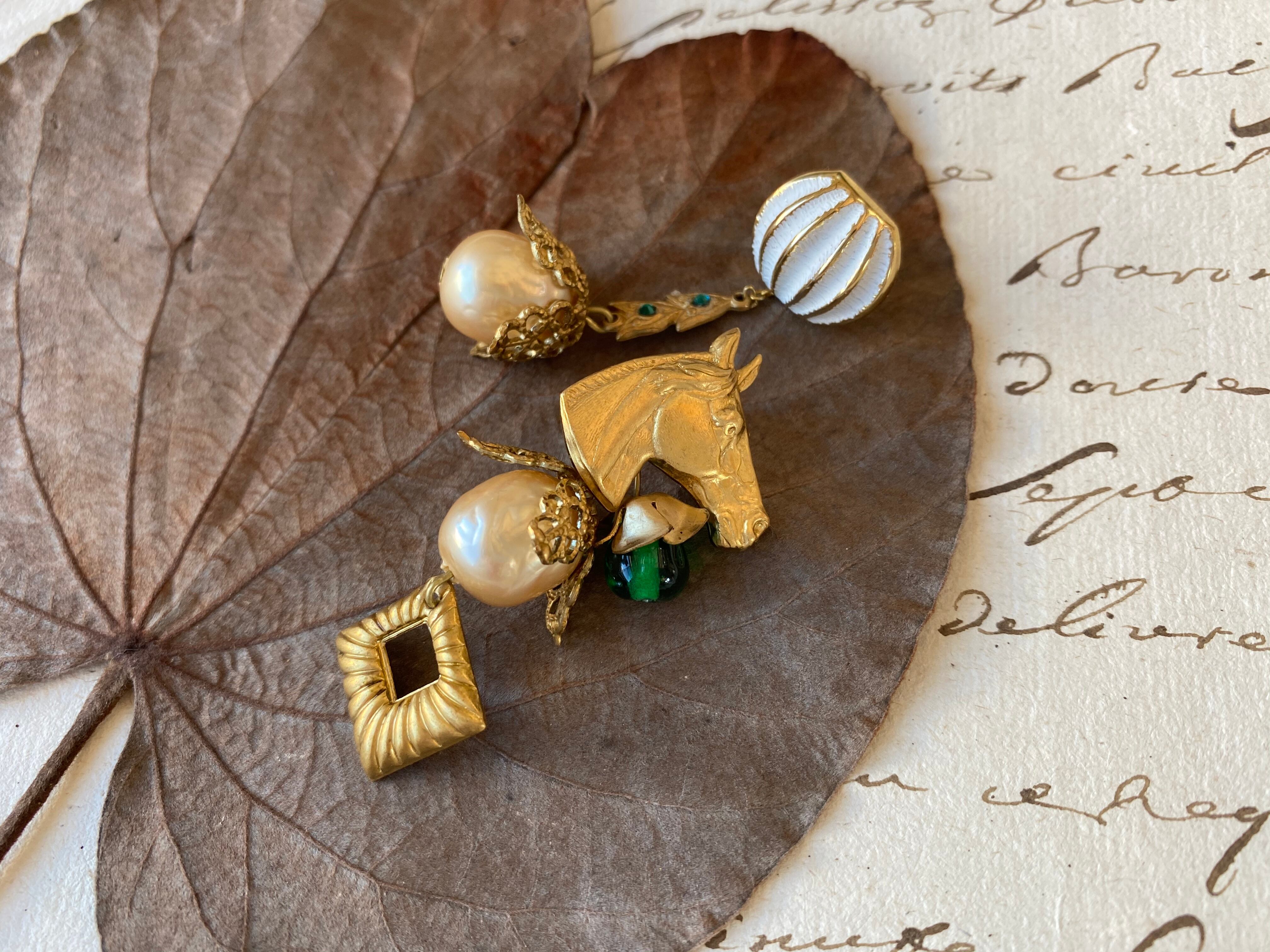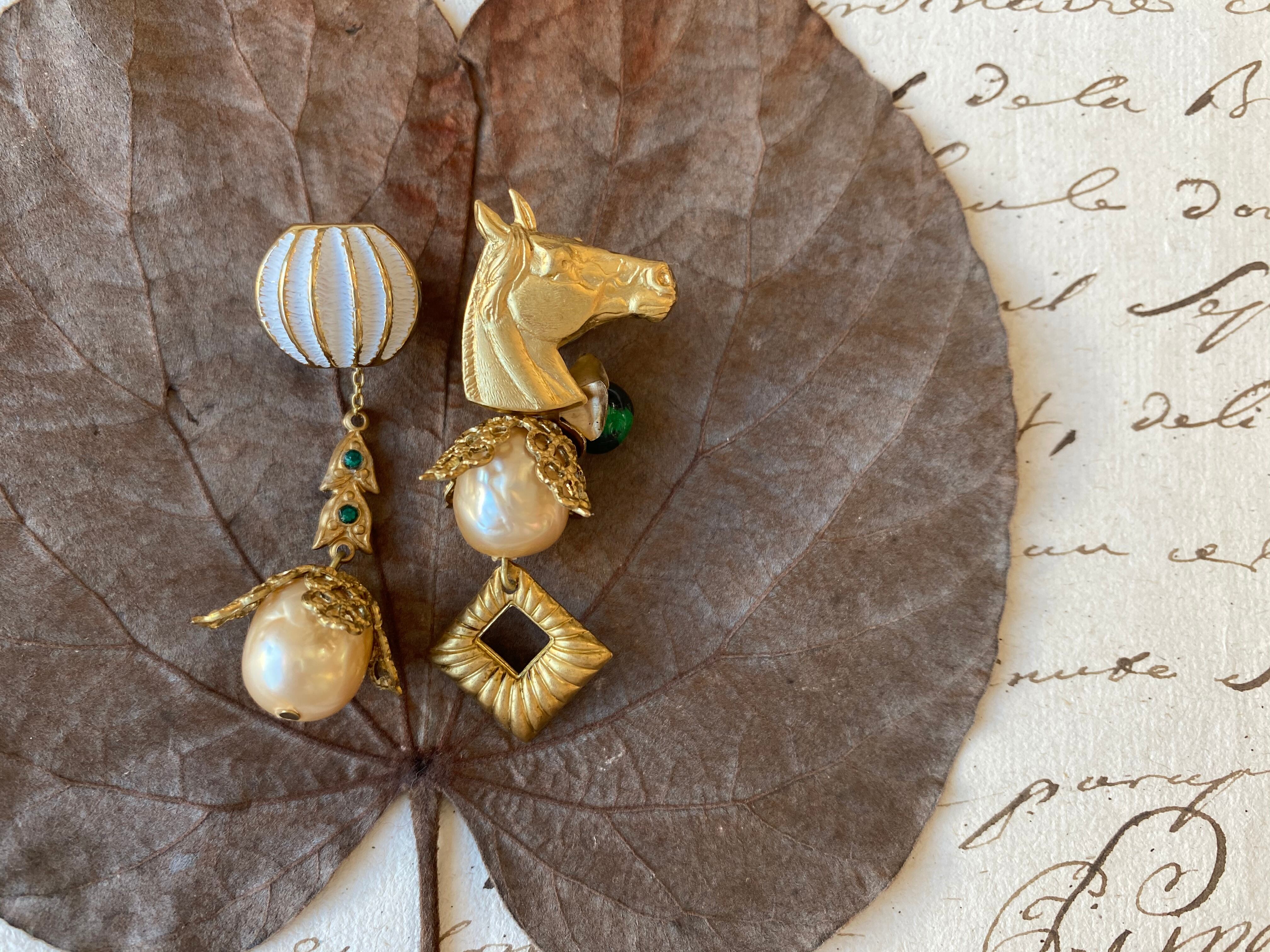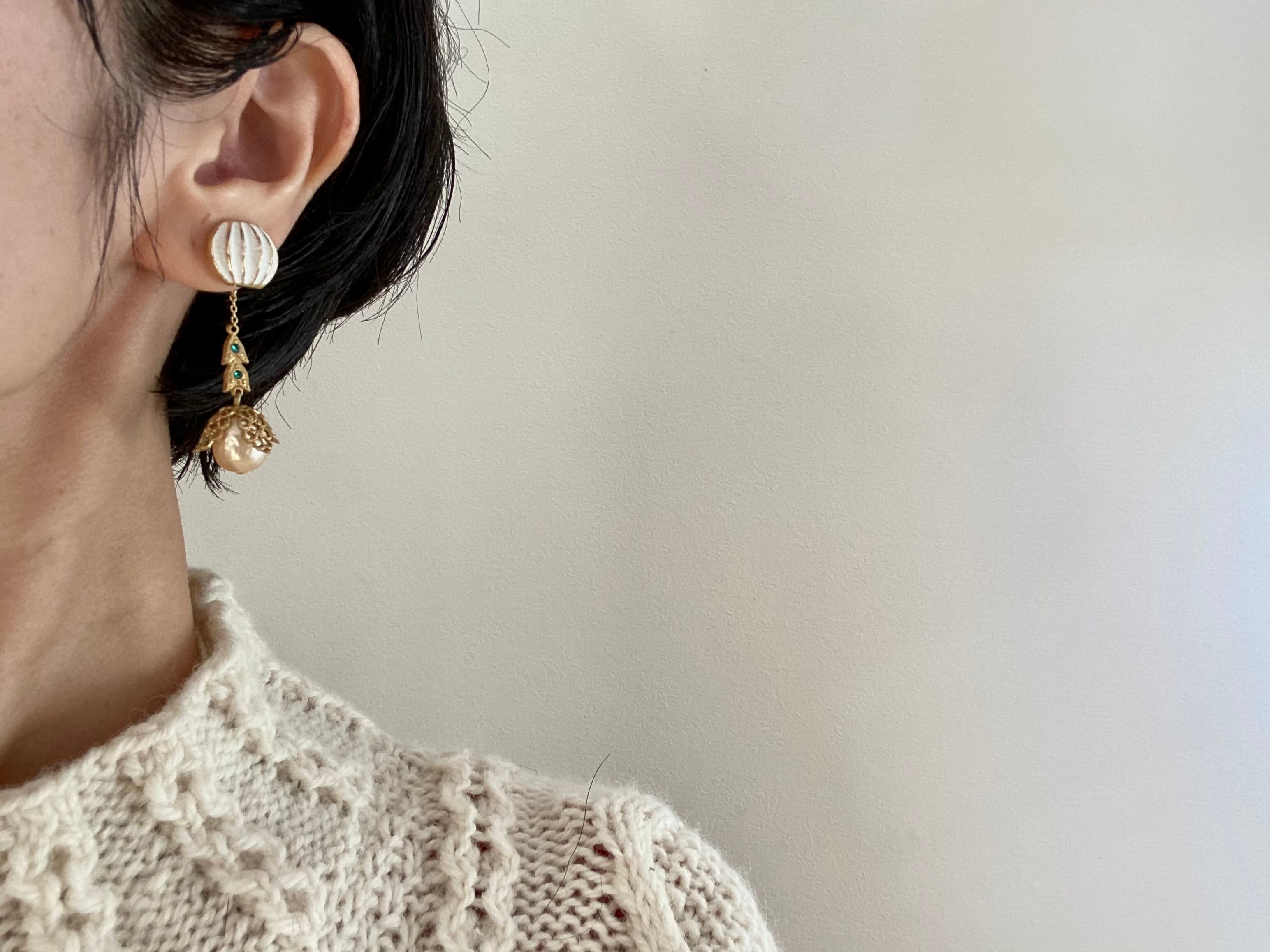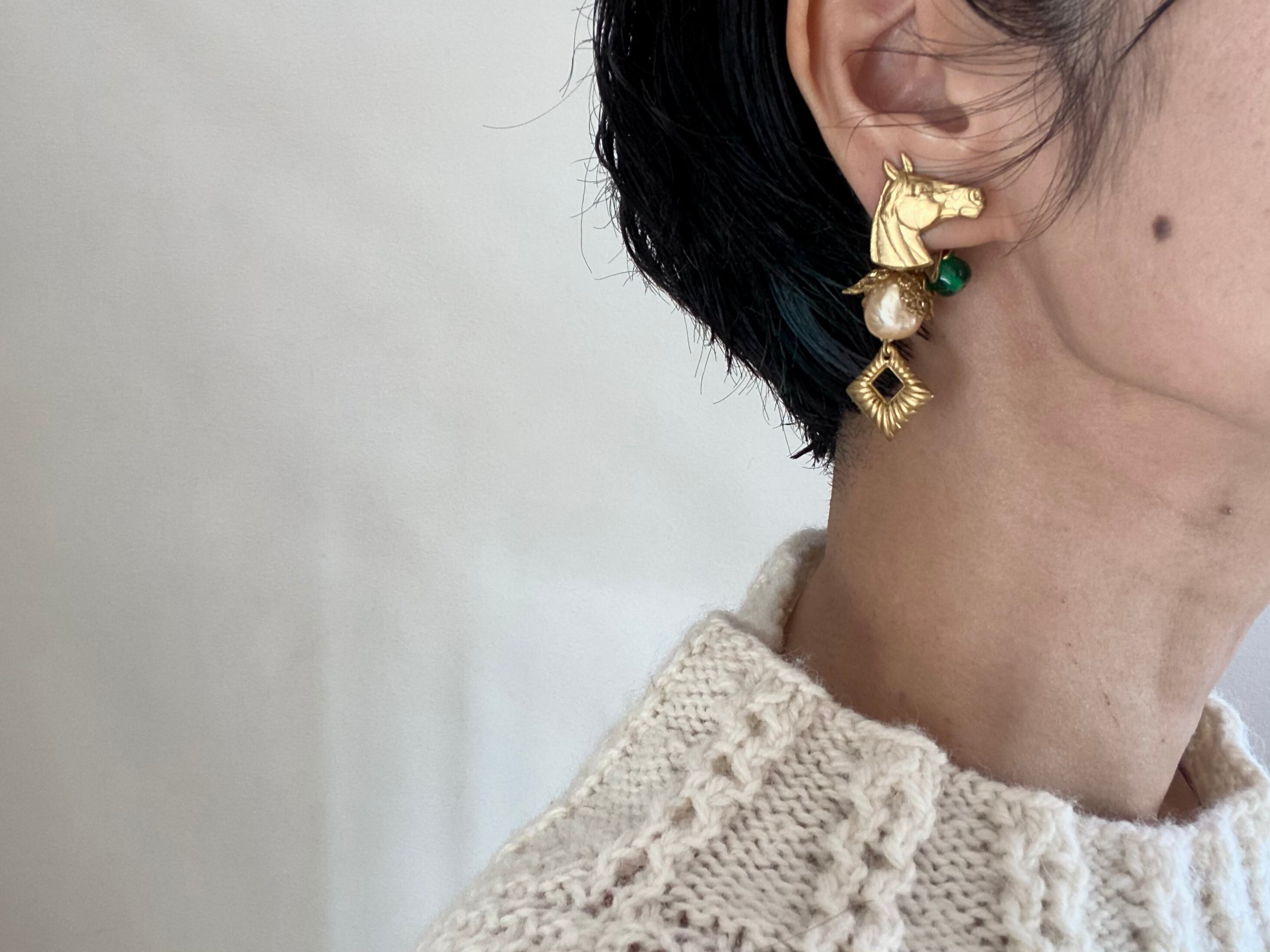 ヴィンテージパーツを組み合わせてアシンメトリーなピアスを作りました。