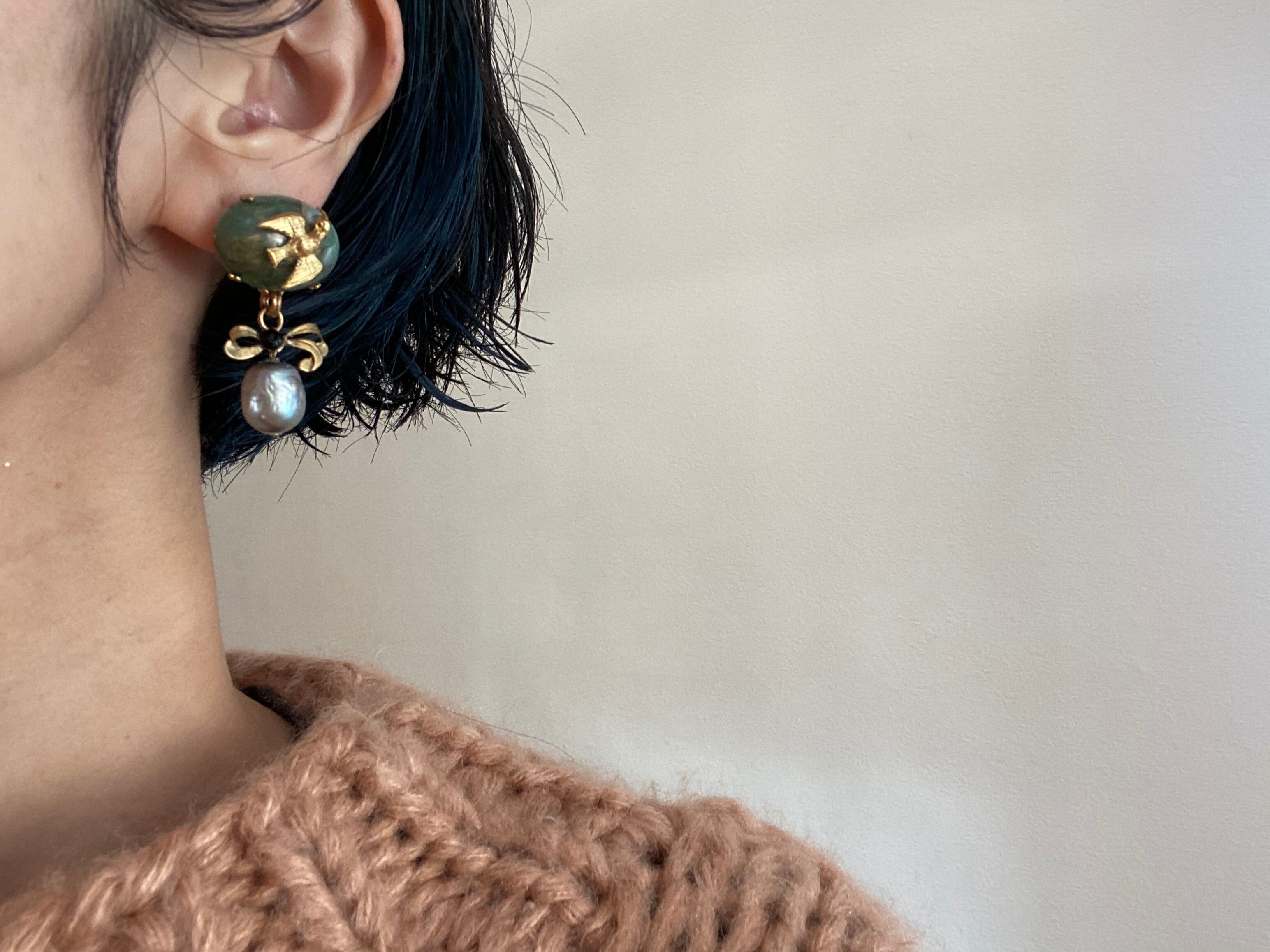 ヴィンテージパーツを組み合わせて、ピアスを作りました。