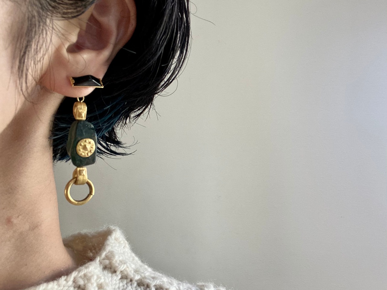 ビリジアングリーンのフランスのヴィンテージパーツにドイツのヴィンテージパーツを合わせ、シックで大人っぽい雰囲気です。