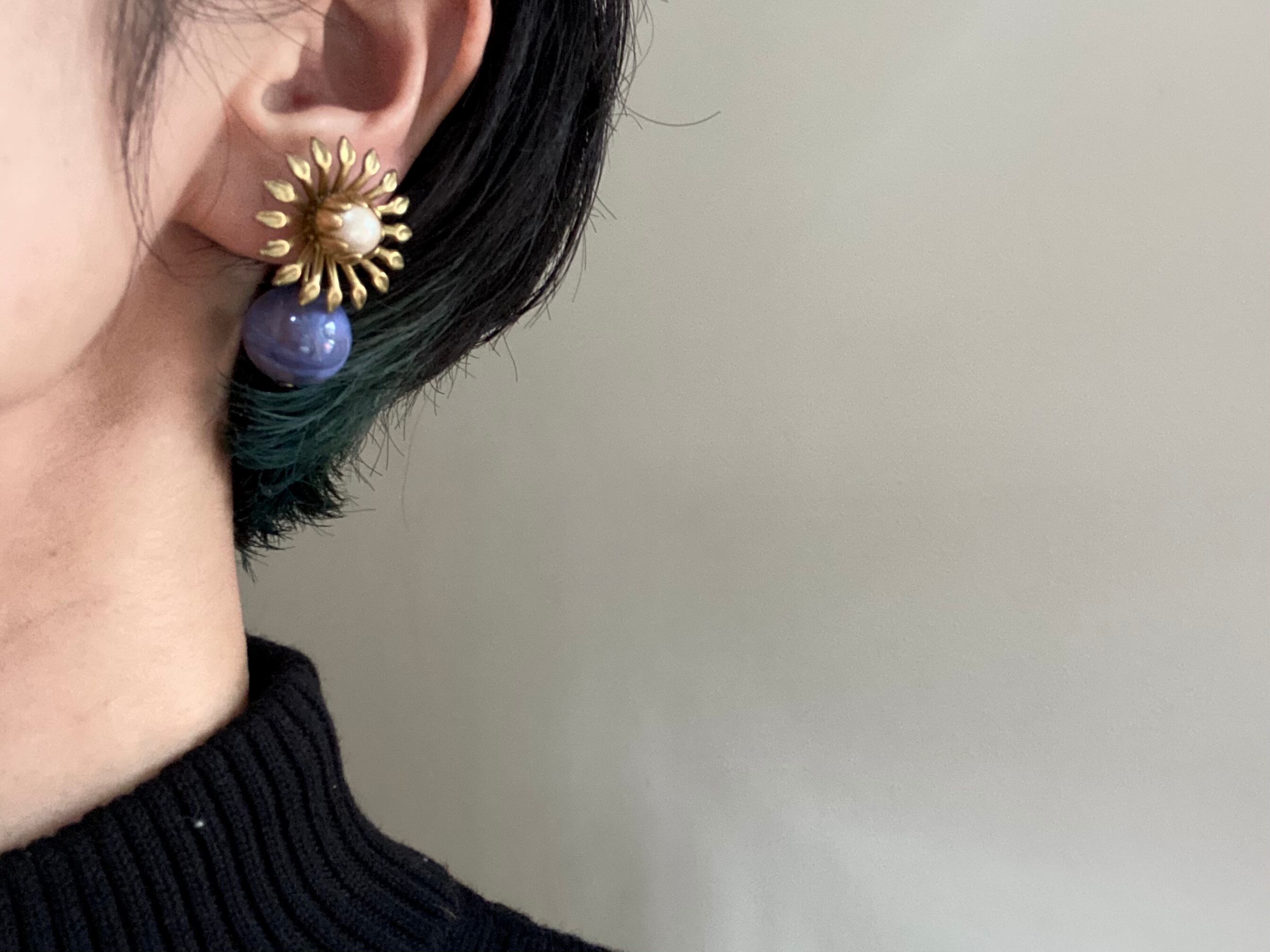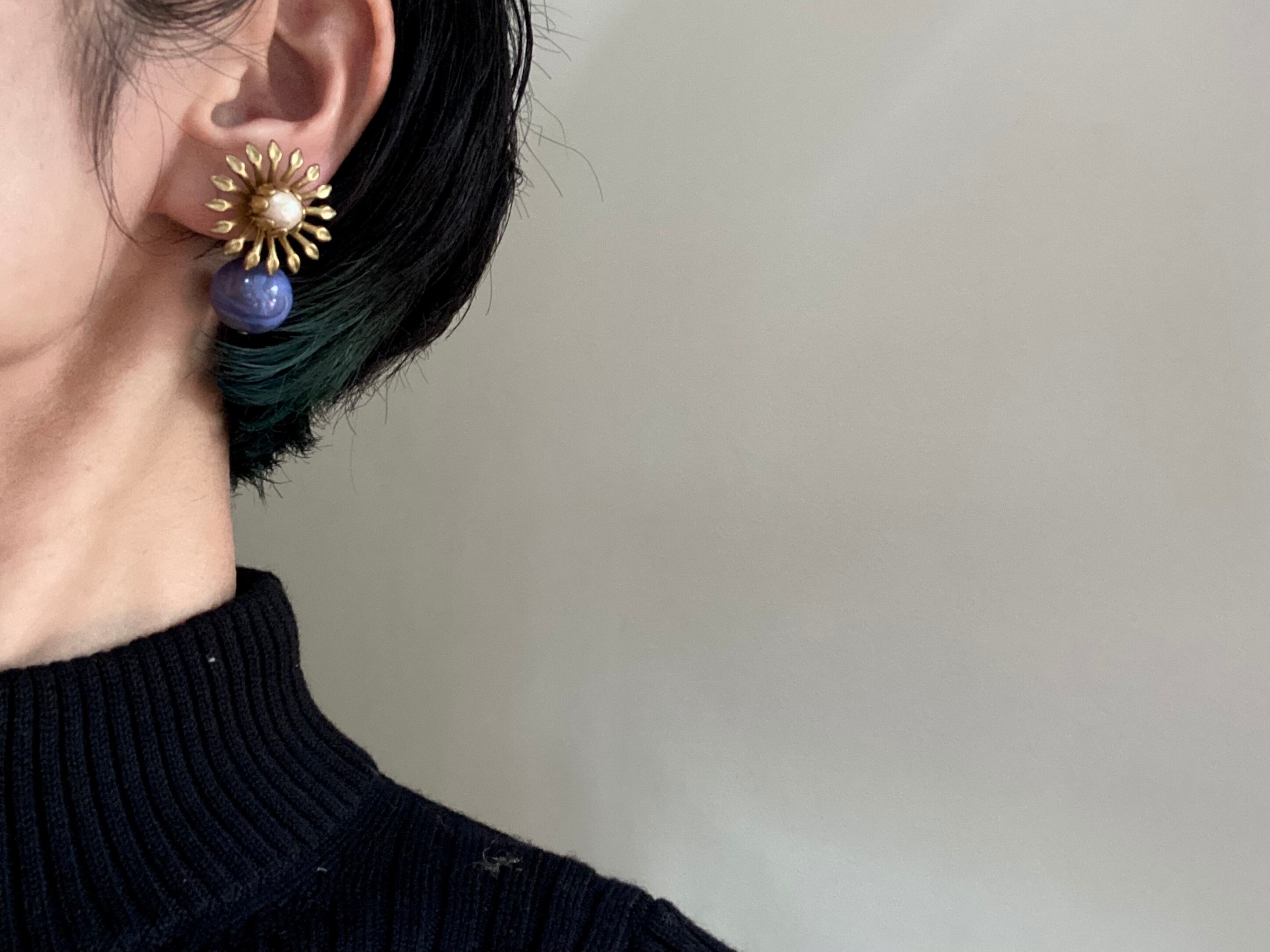 ヴィンテージパーツを組み合わせてピアスを作りました。