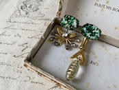 ヴィンテージパーツを組み合わせてアシンメトリーなピアスを作りました。