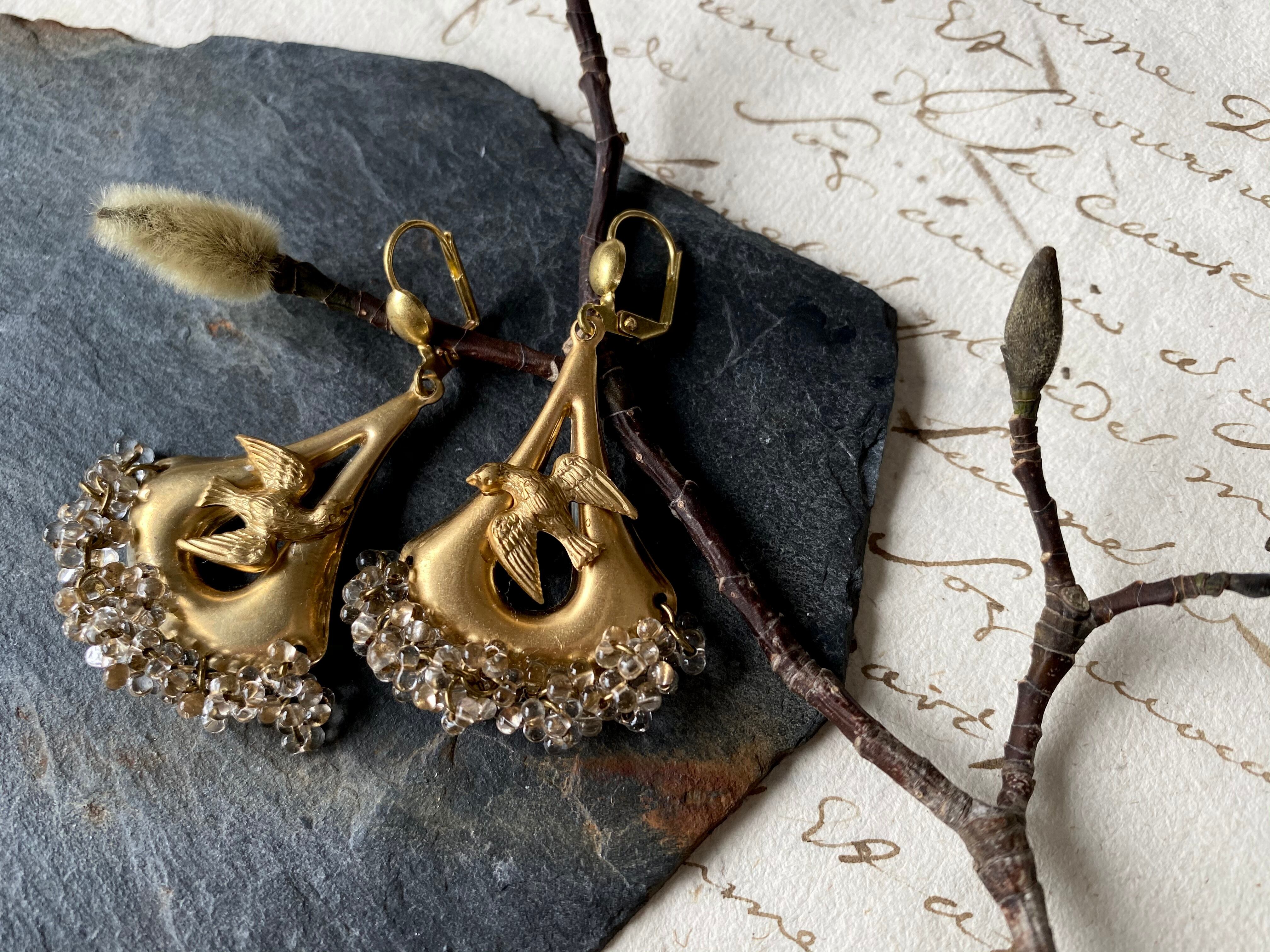 ヴィンテージパーツを組み合わせてピアスを作りました。