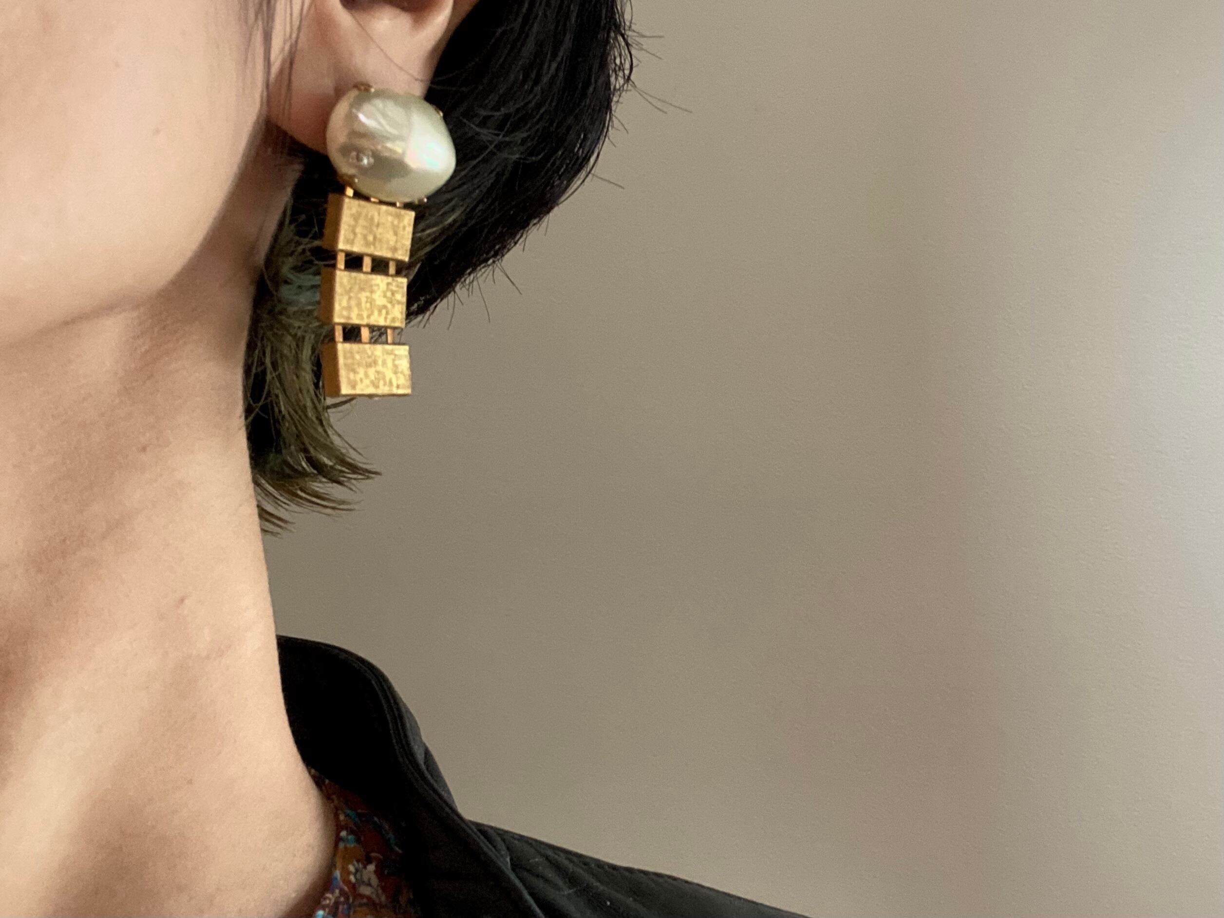 ヴィンテージパーツを組み合わせてピアスを作りました。