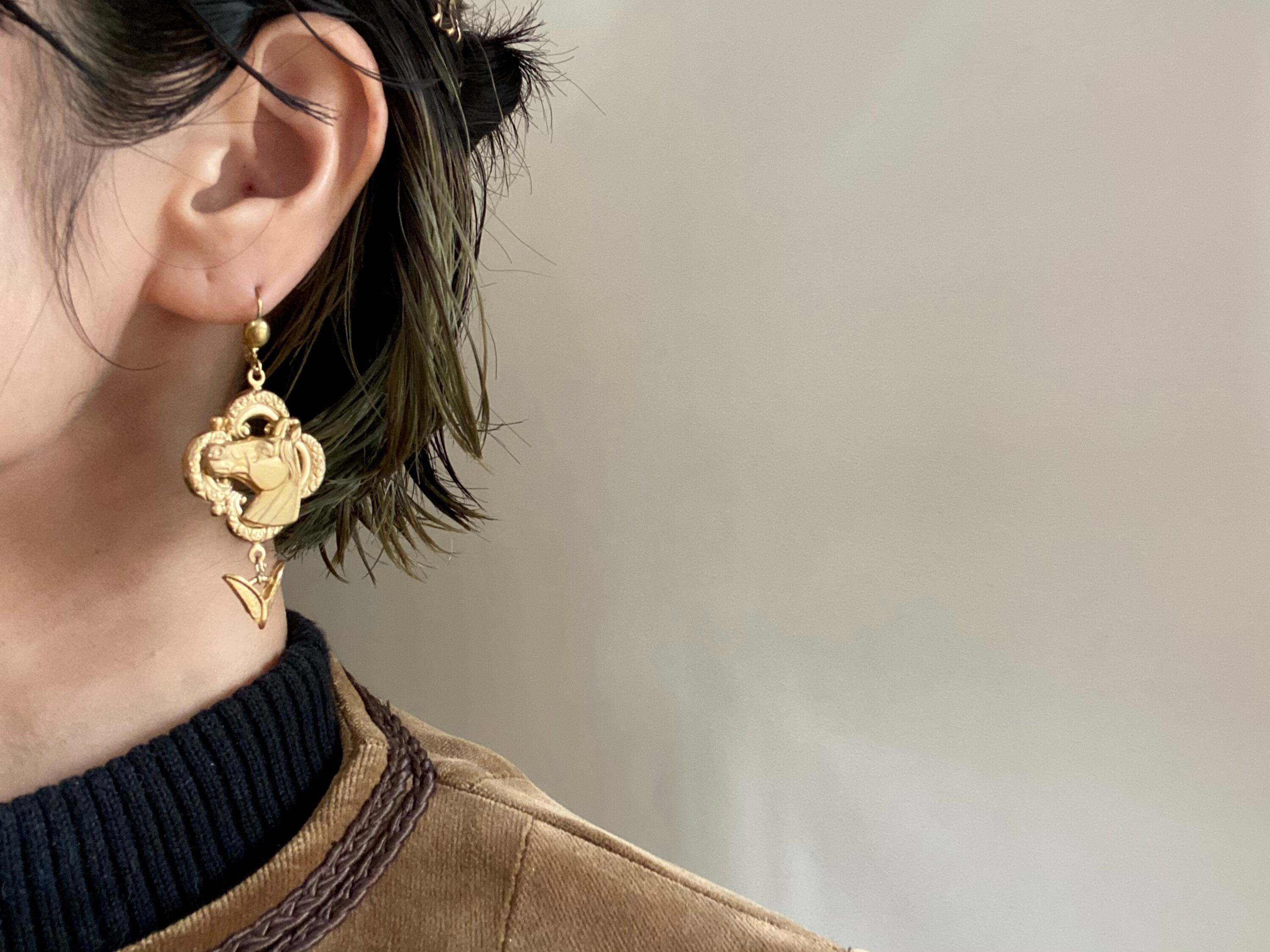 ヴィンテージパーツを組み合わせてピアスを作りました。