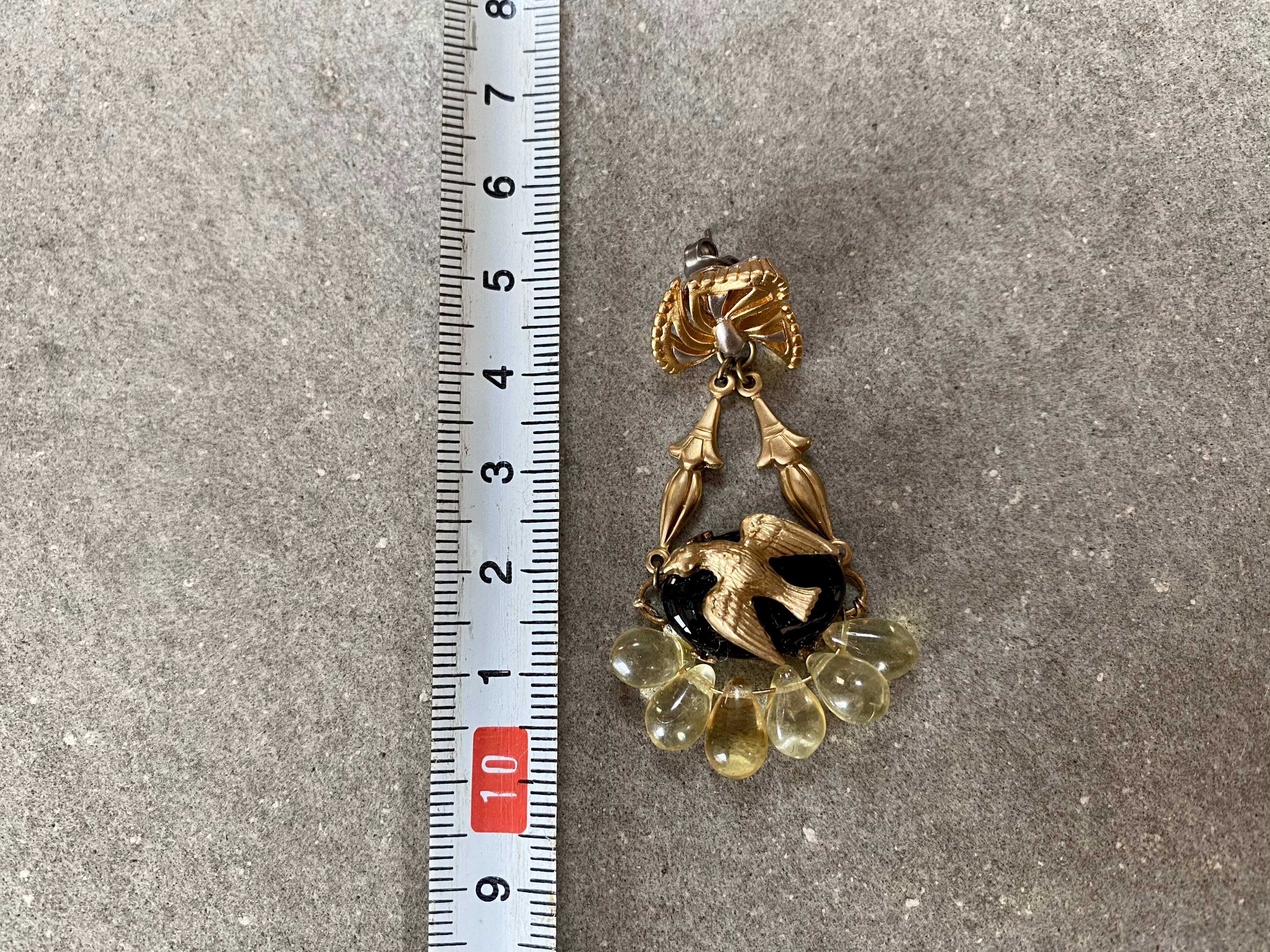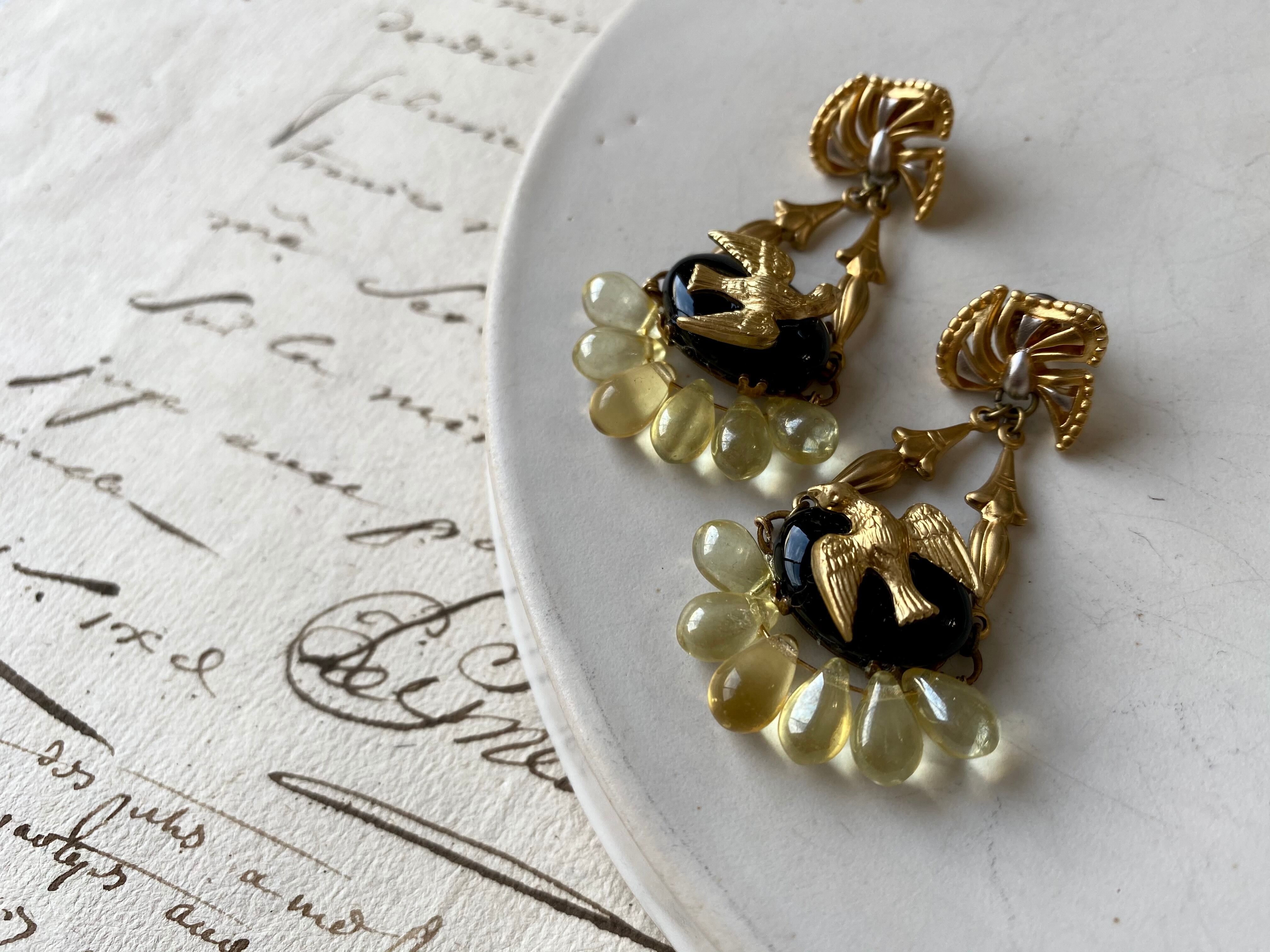 ミリアムハスケルのドーブや、優美なラインのヴィンテージパーツを、オニキスのブラックがキュッと引き締めています。