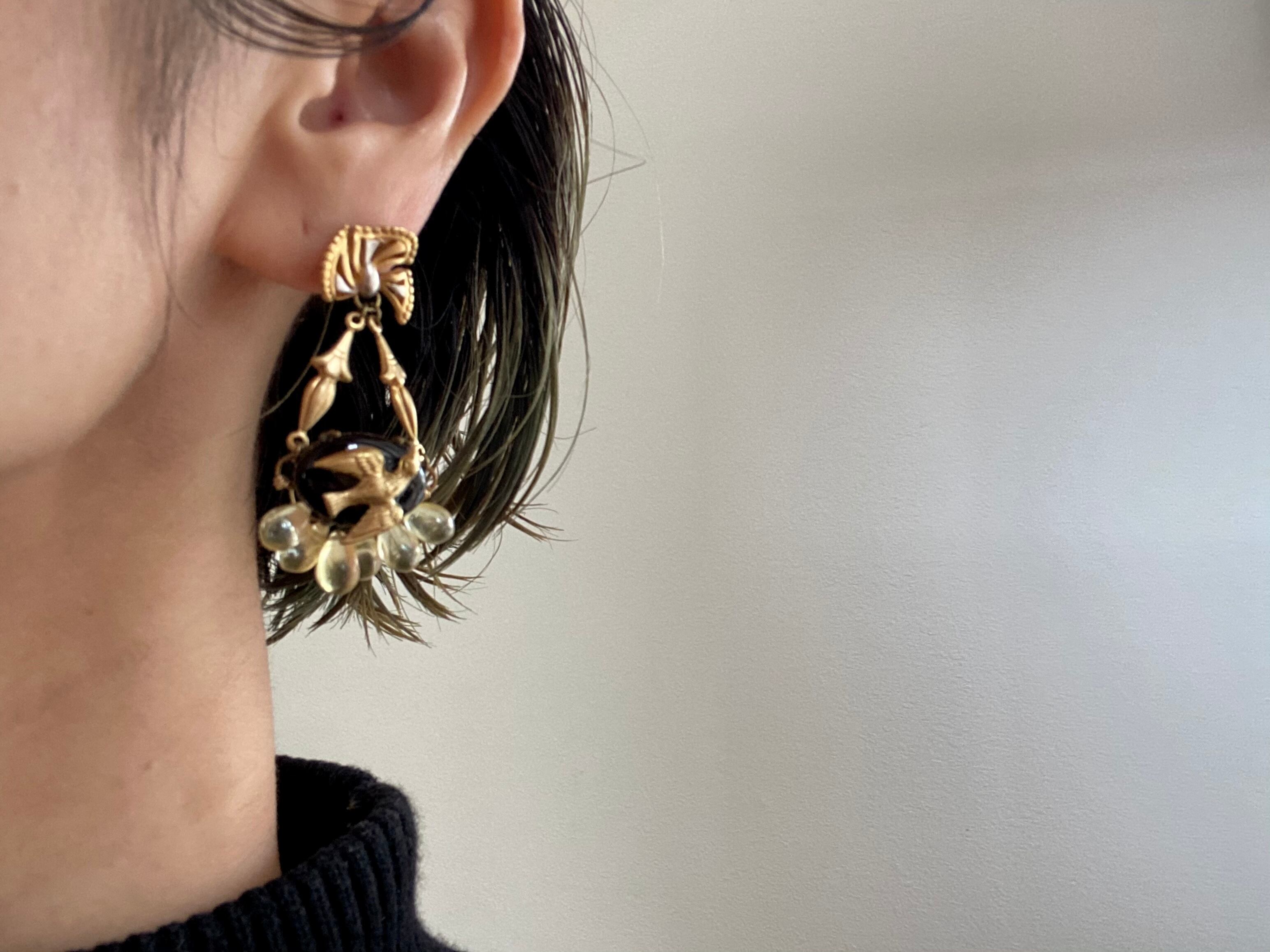 ヴィンテージパーツを組み合わせて、ピアスを作りました。