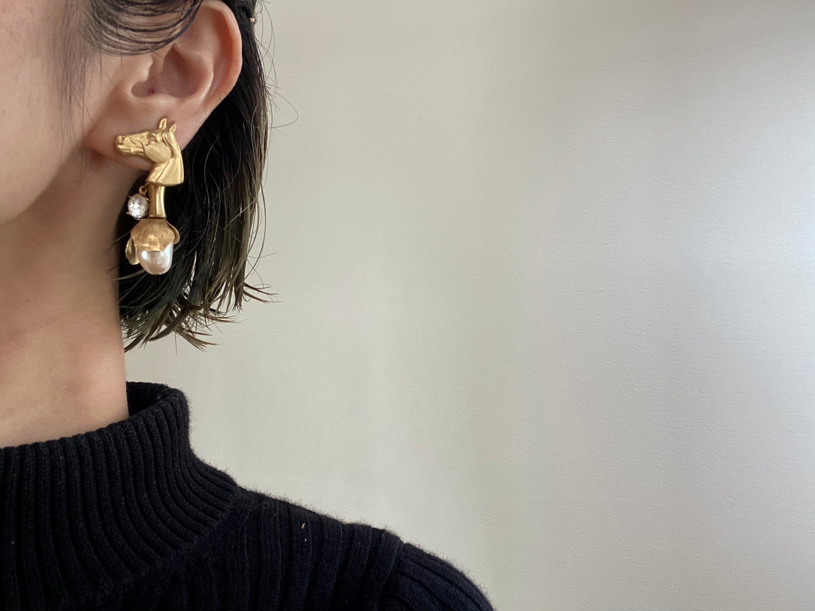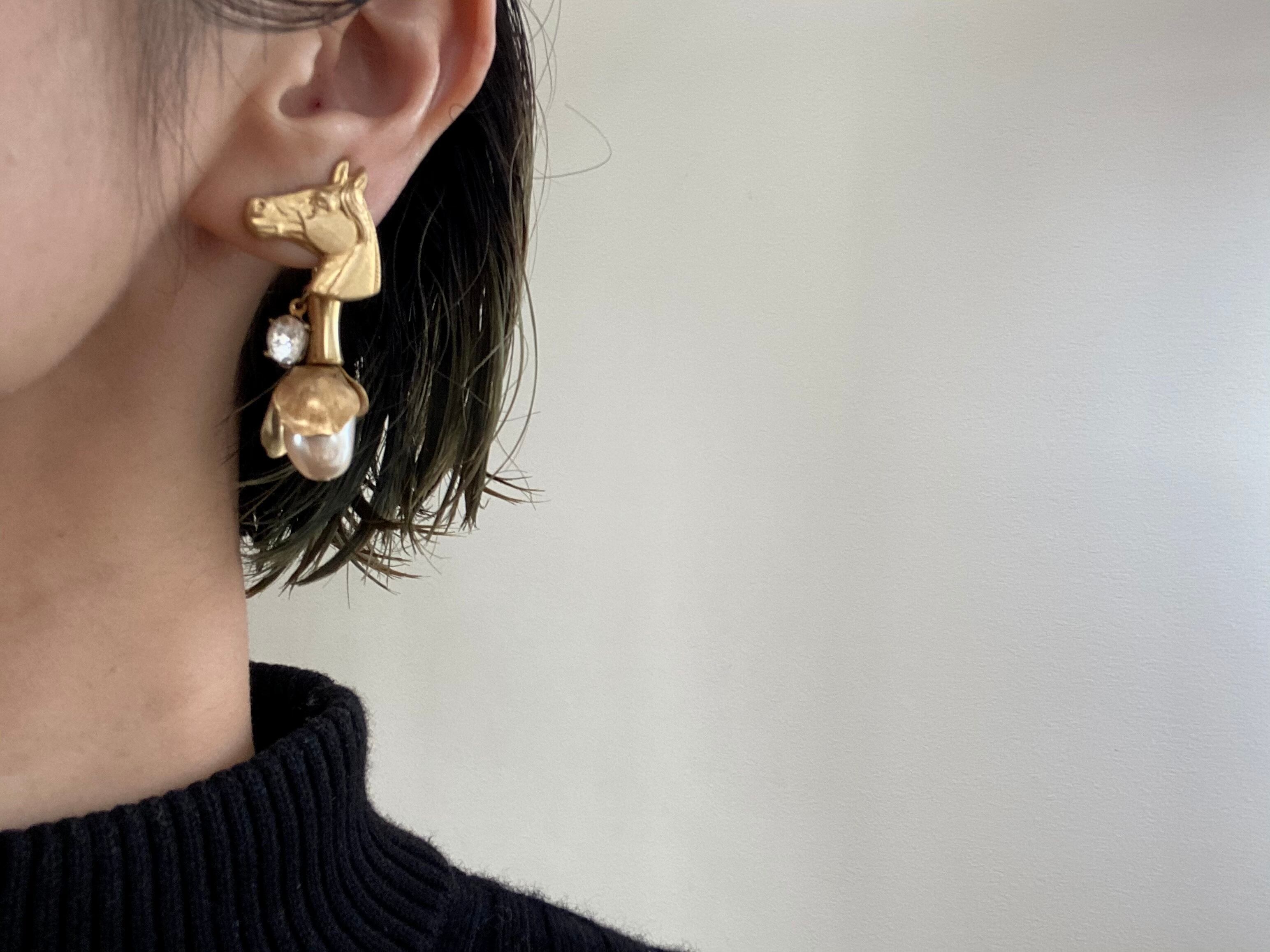 様々なロマンチックな雰囲気を持つヴィンテージパーツを、馬の個性が加わる事で、甘いだけじゃないユーモアを感じさせます。