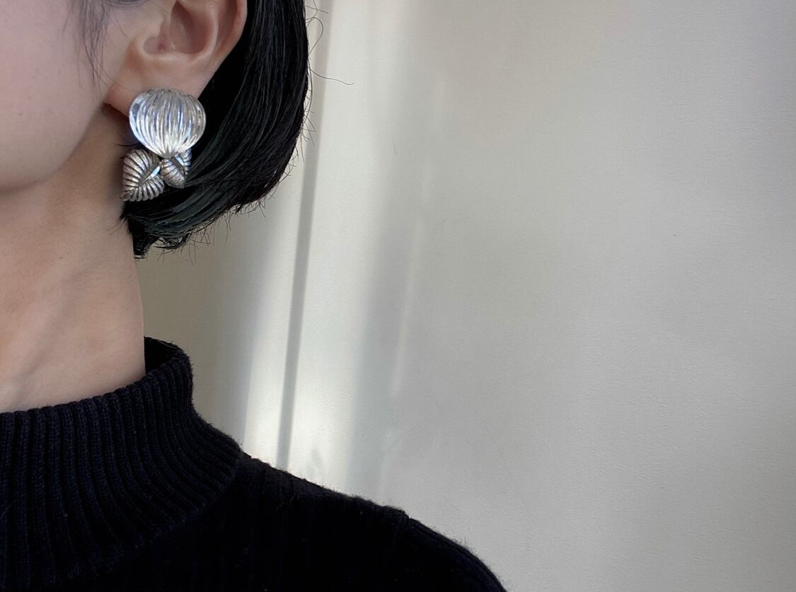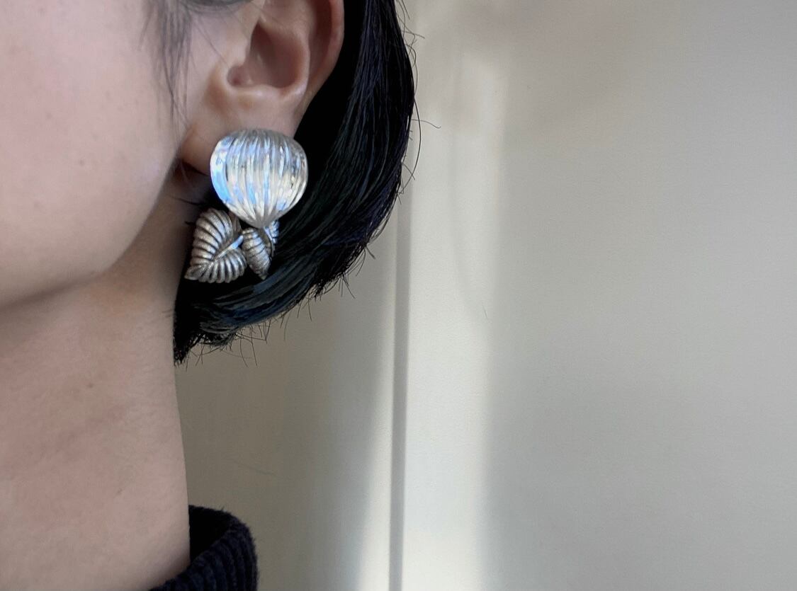 透明感溢れるガラスカボションが、耳元でキラキラと輝いて、シンプルながら存在感たっぷりの一品です。